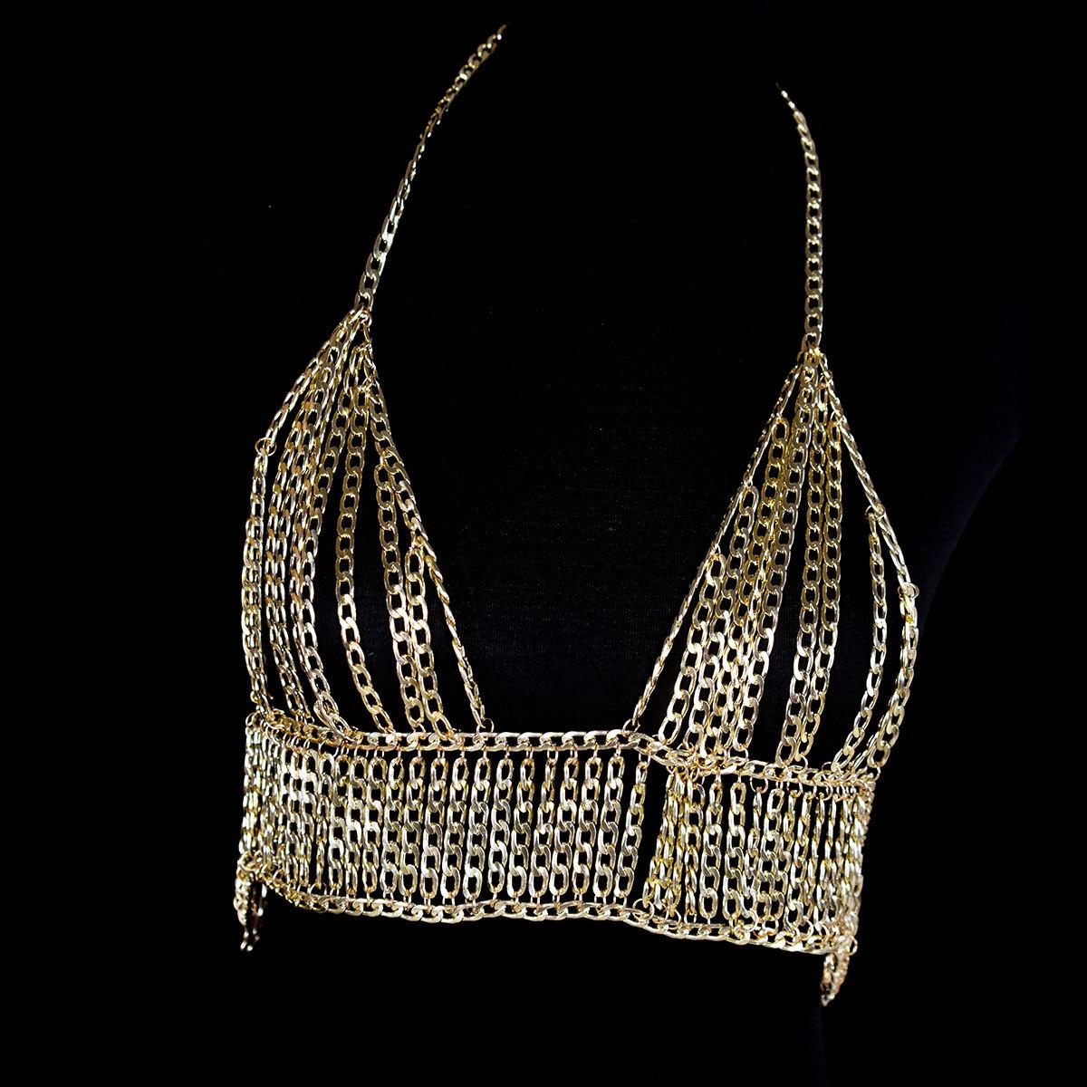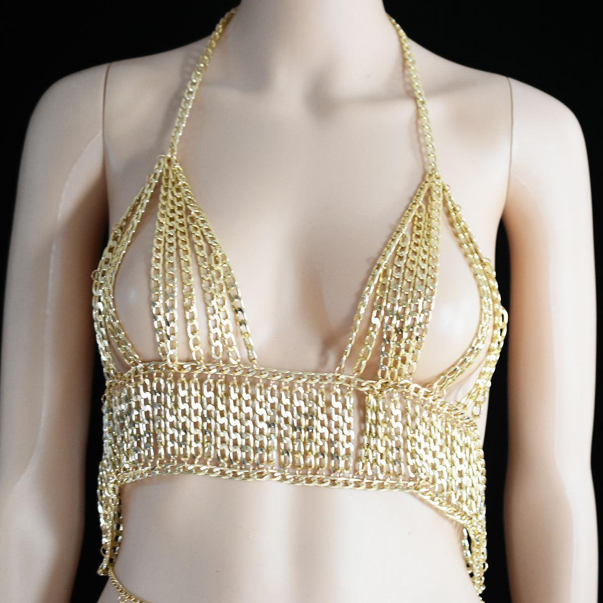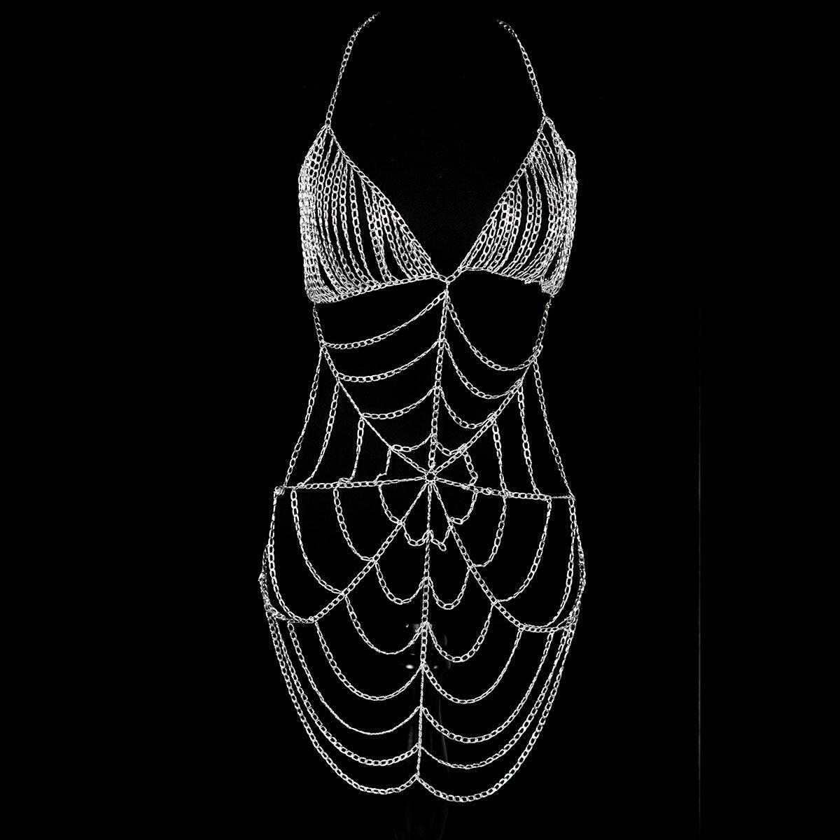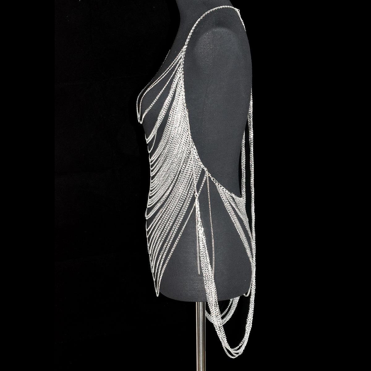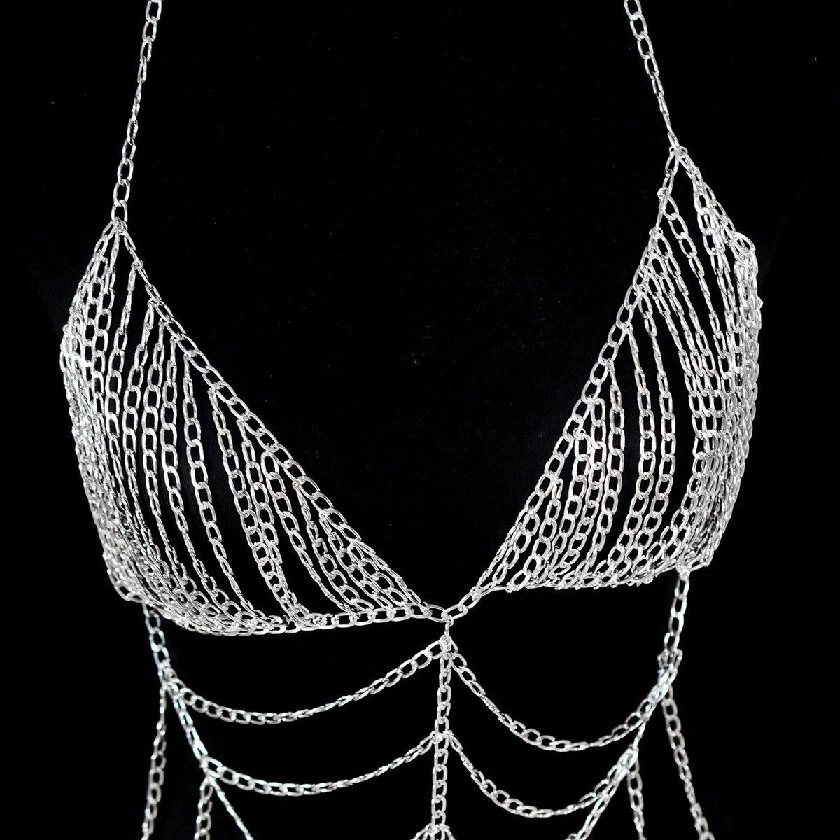 Una variedad de sexy vestido de cadena de metal multicapa con personalidad, cadena corporal, ropa interior, accesorios para danza del vientre, cadena corporal