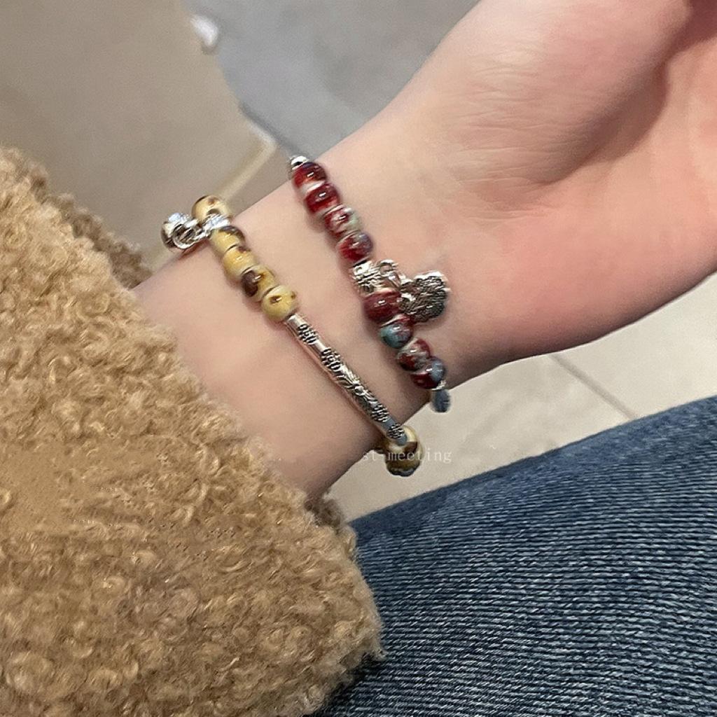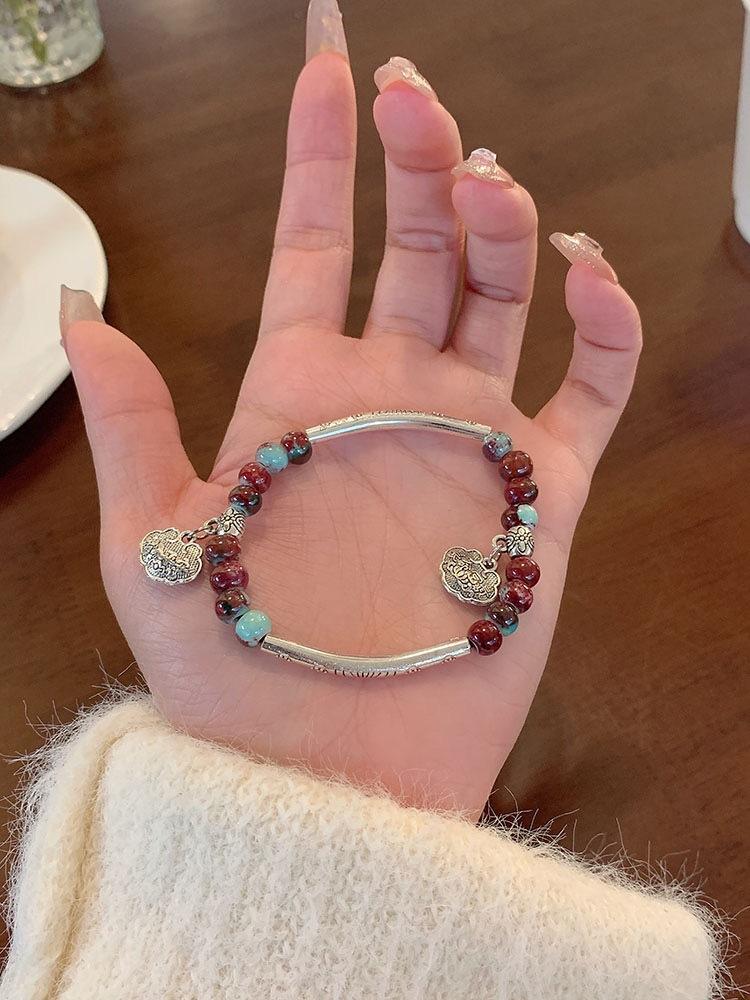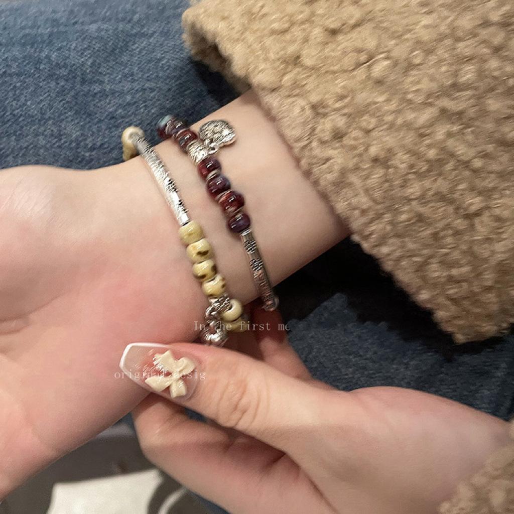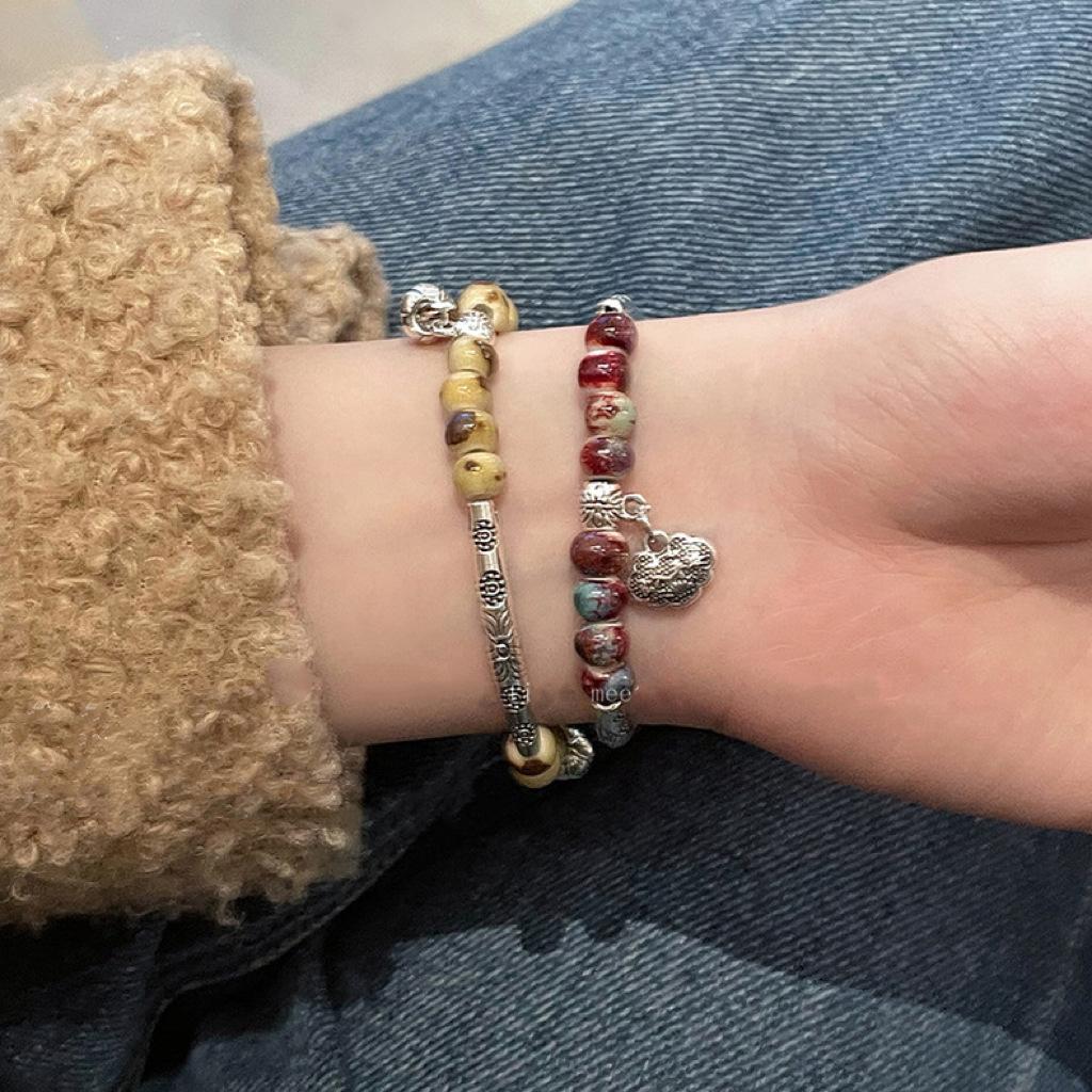Nueva pulsera de estilo chino con candado de paz y piedra ámbar para mujer, diseño de nicho, pulsera retro, joyería de mano para novias de celebridades de Internet.