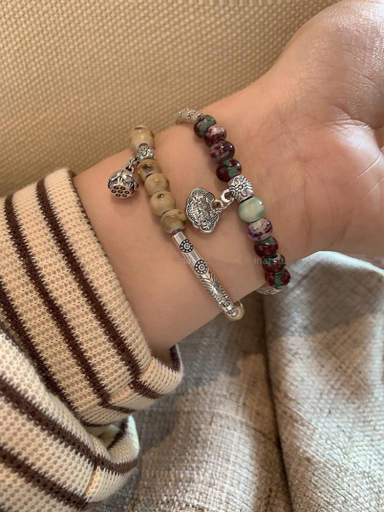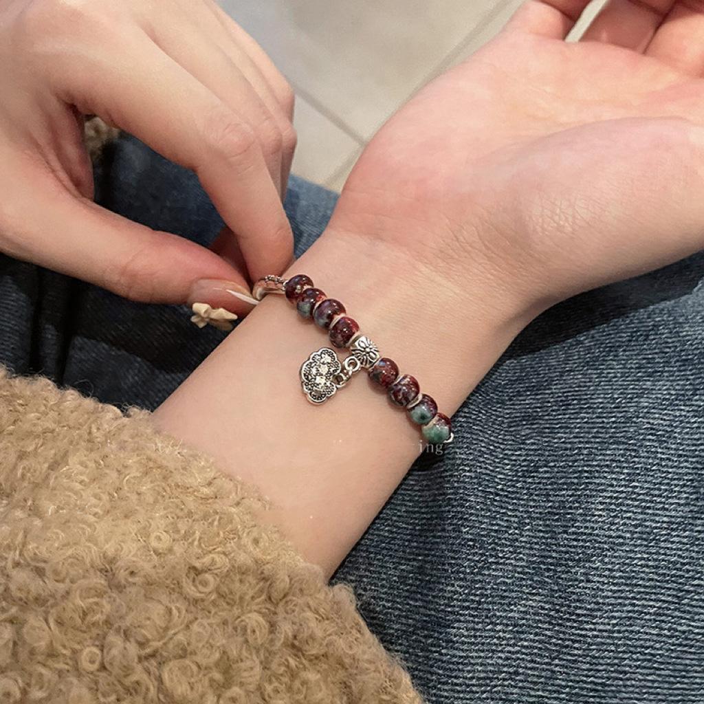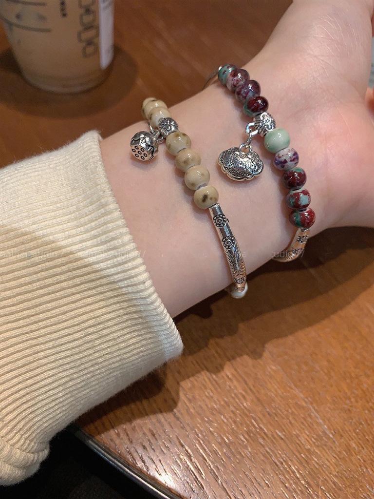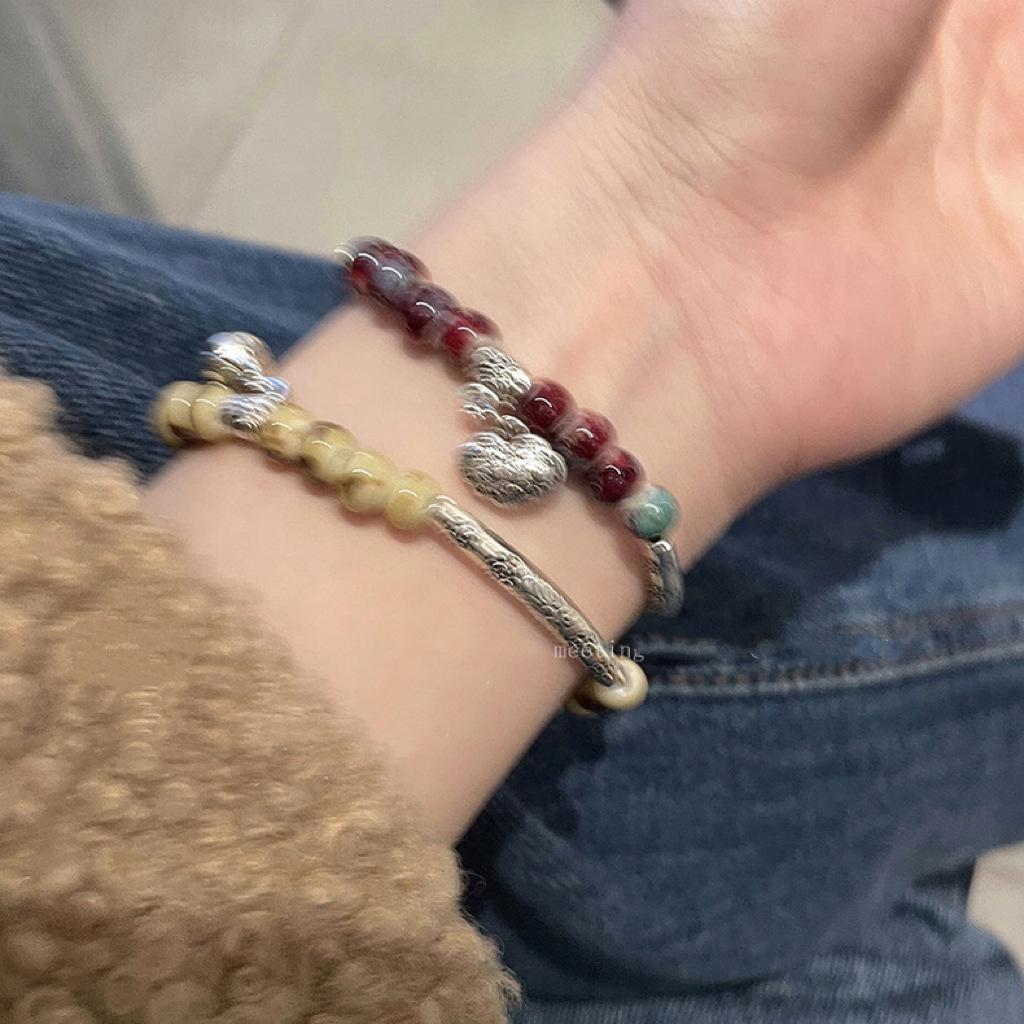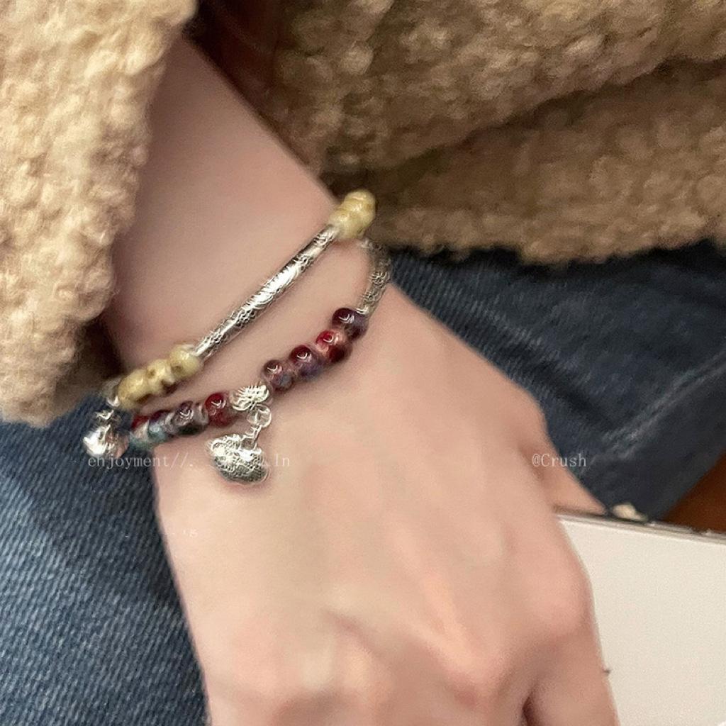 Nueva pulsera de estilo chino con candado de paz y piedra ámbar para mujer, diseño de nicho, pulsera retro, joyería de mano para novias de celebridades de Internet.