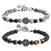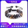 Pulsera de cuentas de 8 mm de piedra ojo de tigre para hombre europea y americana transfronteriza, joyería de obsidiana de piedra negra, pulsera de pino blanco al por mayor