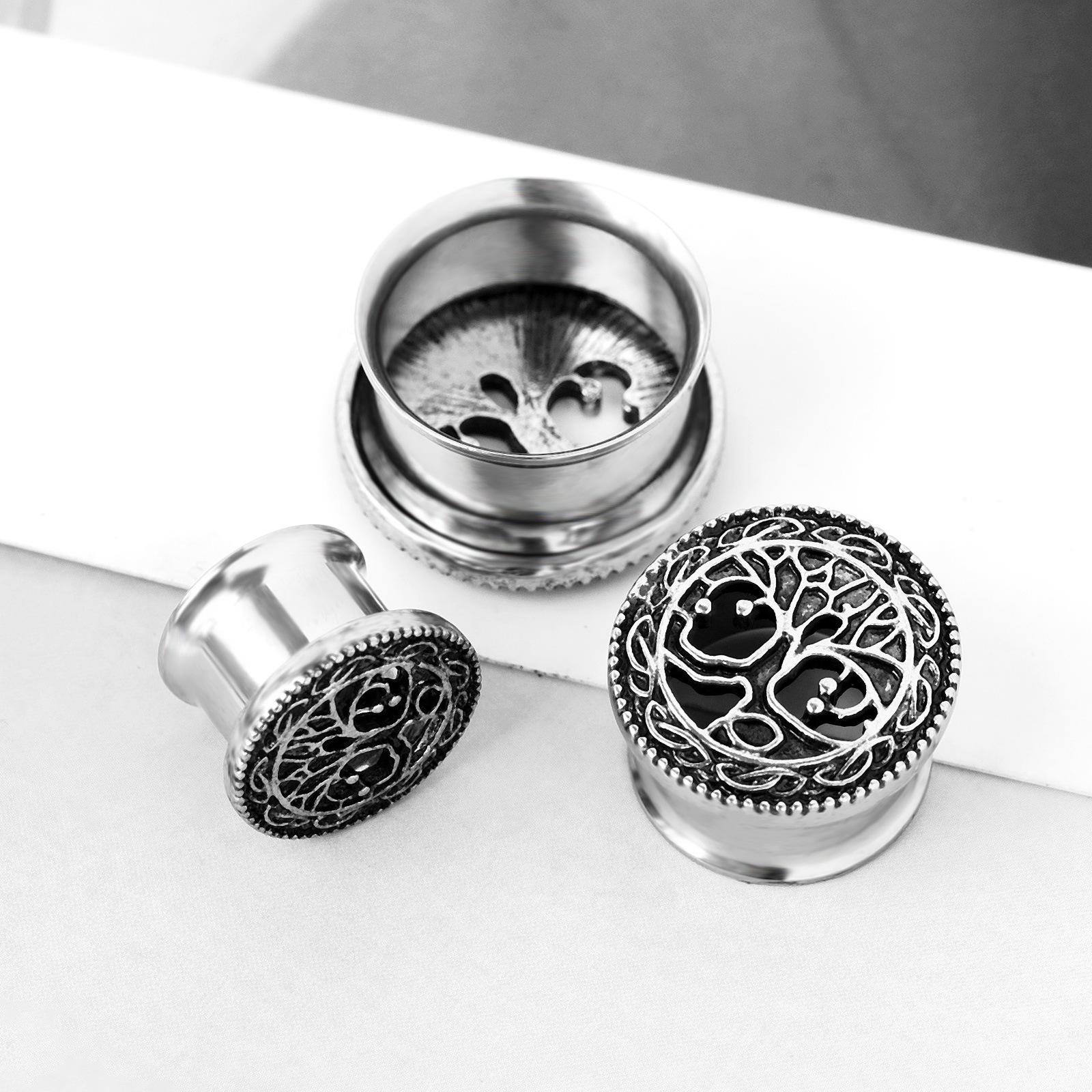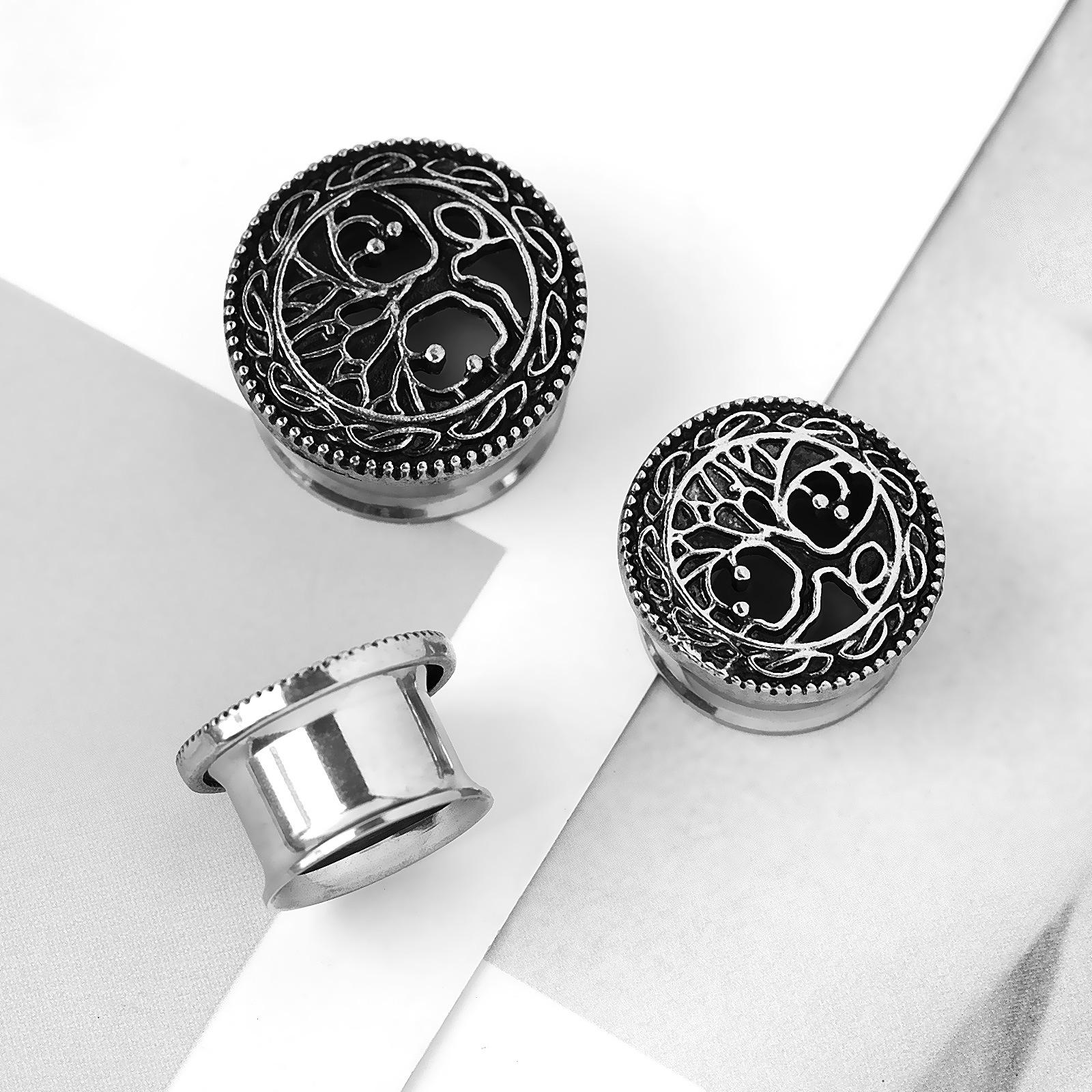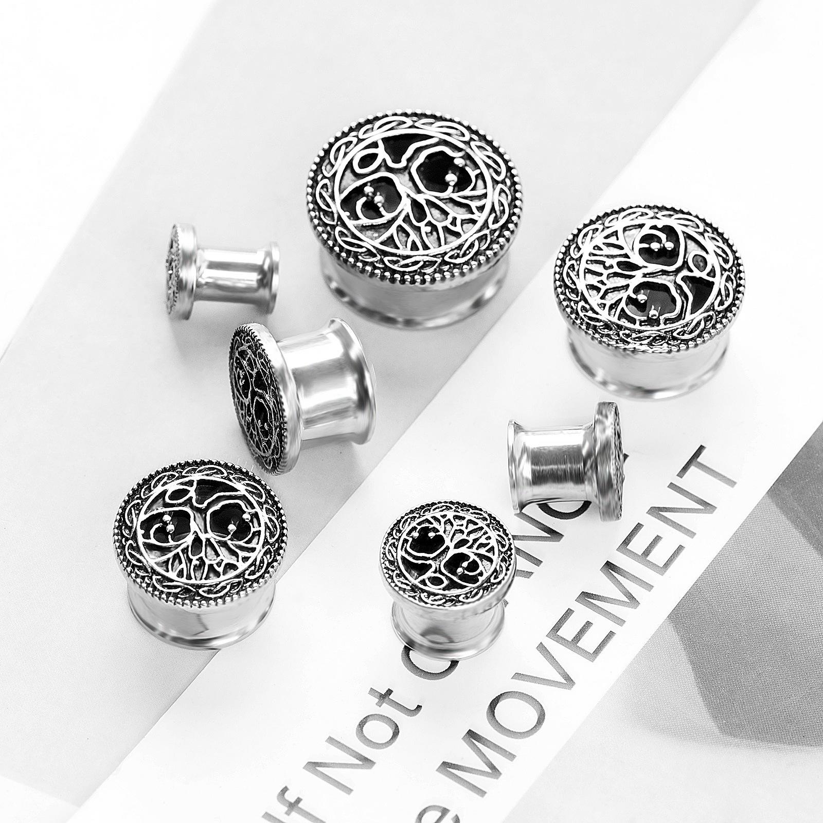Moda europea y americana Nuevo expansor de oreja hueco Amazon acero inoxidable patrón retro joyería de perforación aurícula
