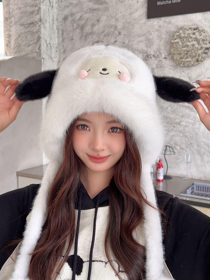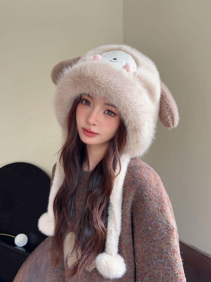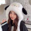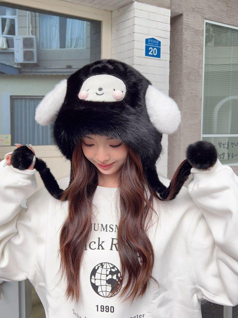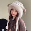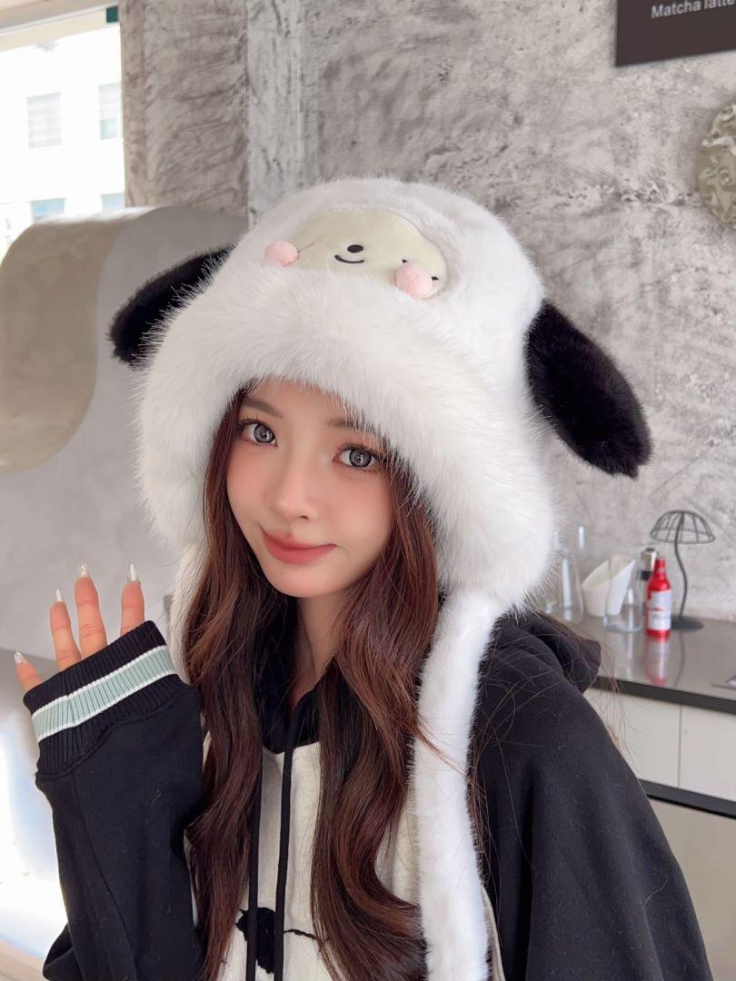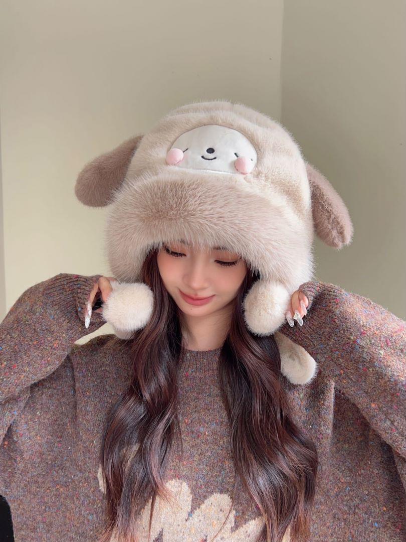 Gorro de peluche de cachorro lindo y versátil de estilo coreano para mujer, gorro Lei Feng grueso y cálido de otoño e invierno, gorro con protección para las orejas pequeñas y con aspecto de cara