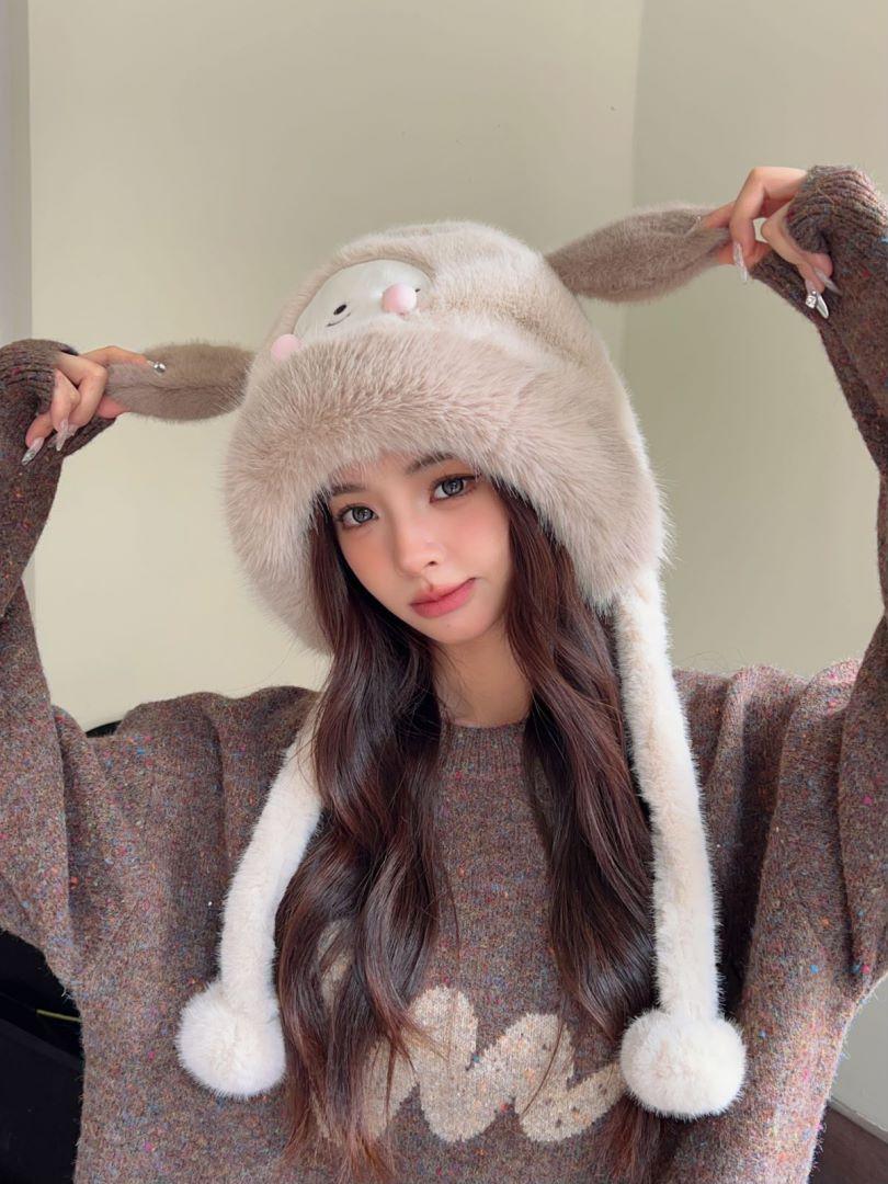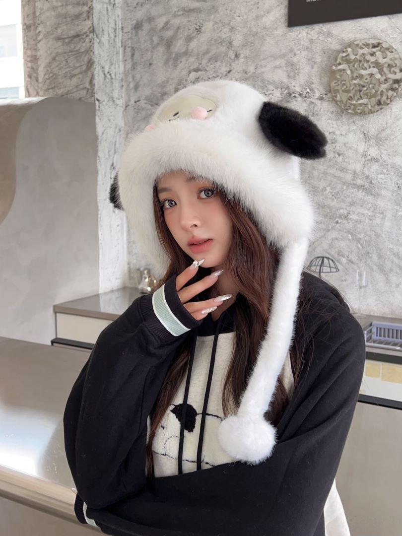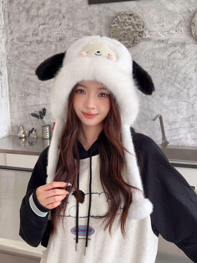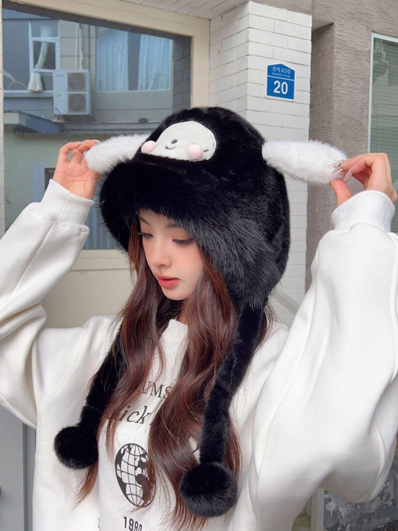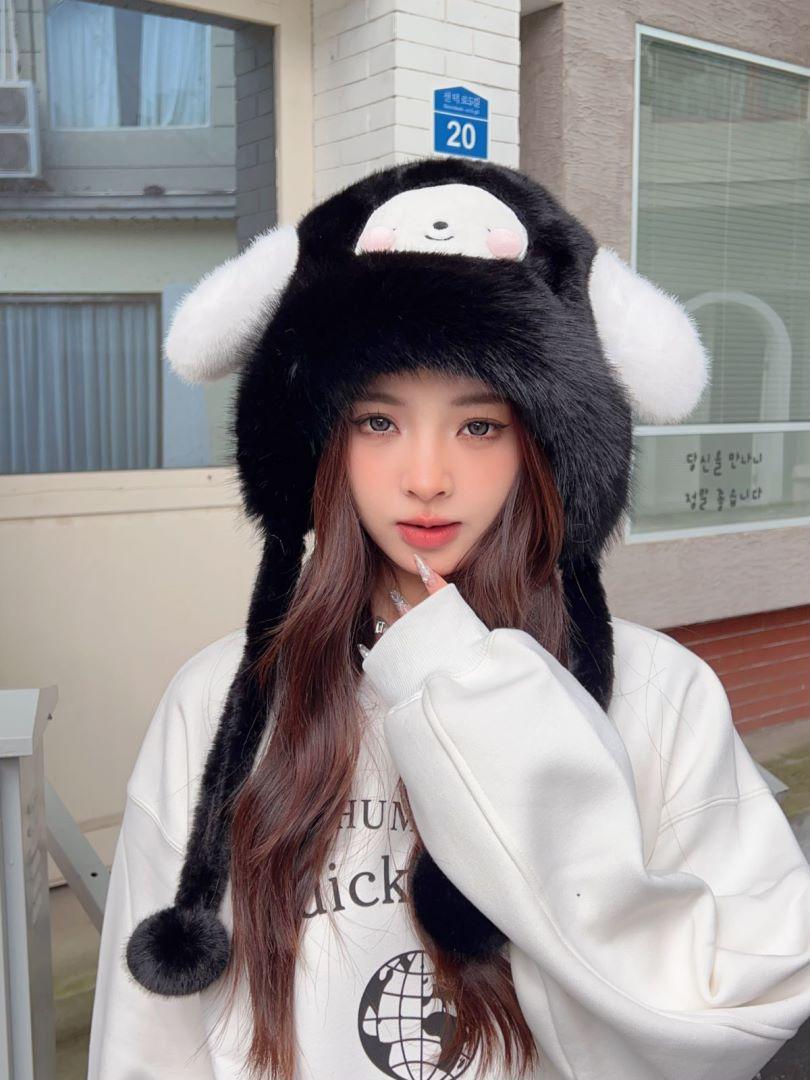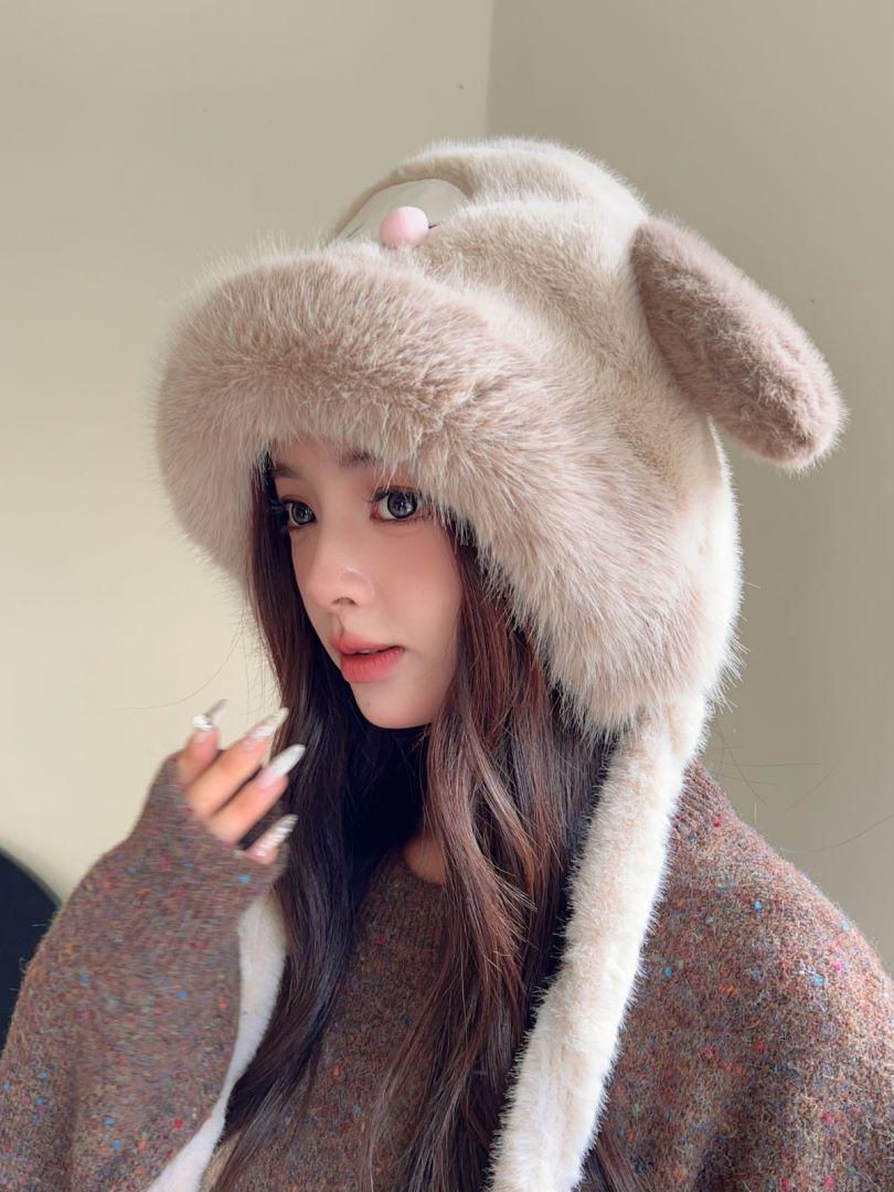 Gorro de peluche de cachorro lindo y versátil de estilo coreano para mujer, gorro Lei Feng grueso y cálido de otoño e invierno, gorro con protección para las orejas pequeñas y con aspecto de cara