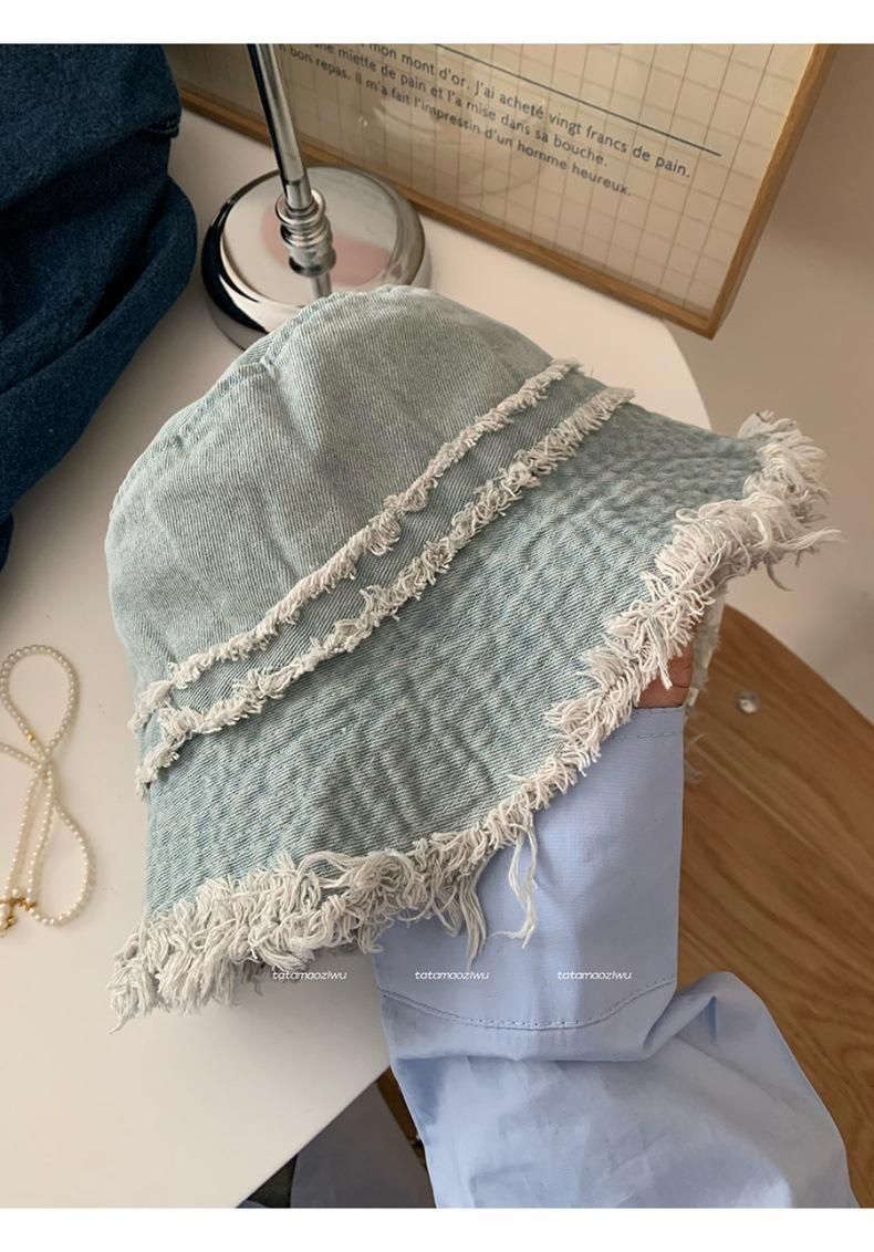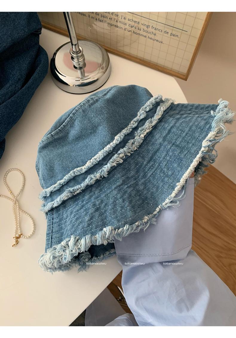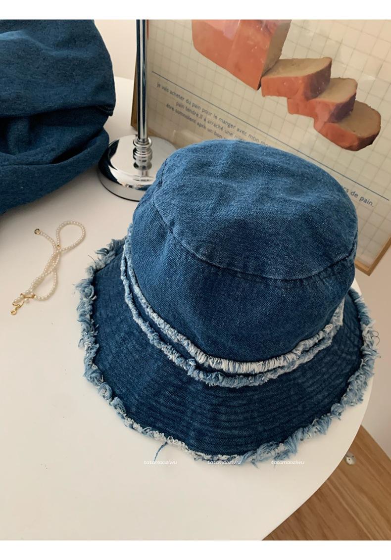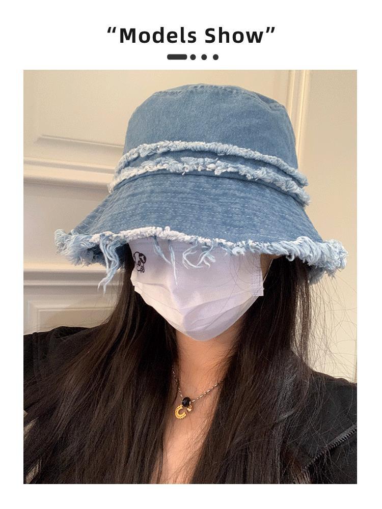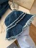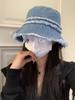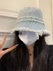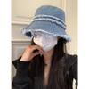 Sombrero de pescador peludo de mezclilla para mujer Primavera y Verano 2024 Nuevo estilo japonés color sólido combinable cubrecara sombrero de cubo a prueba de sol