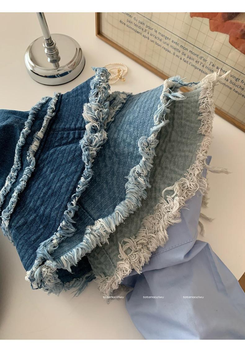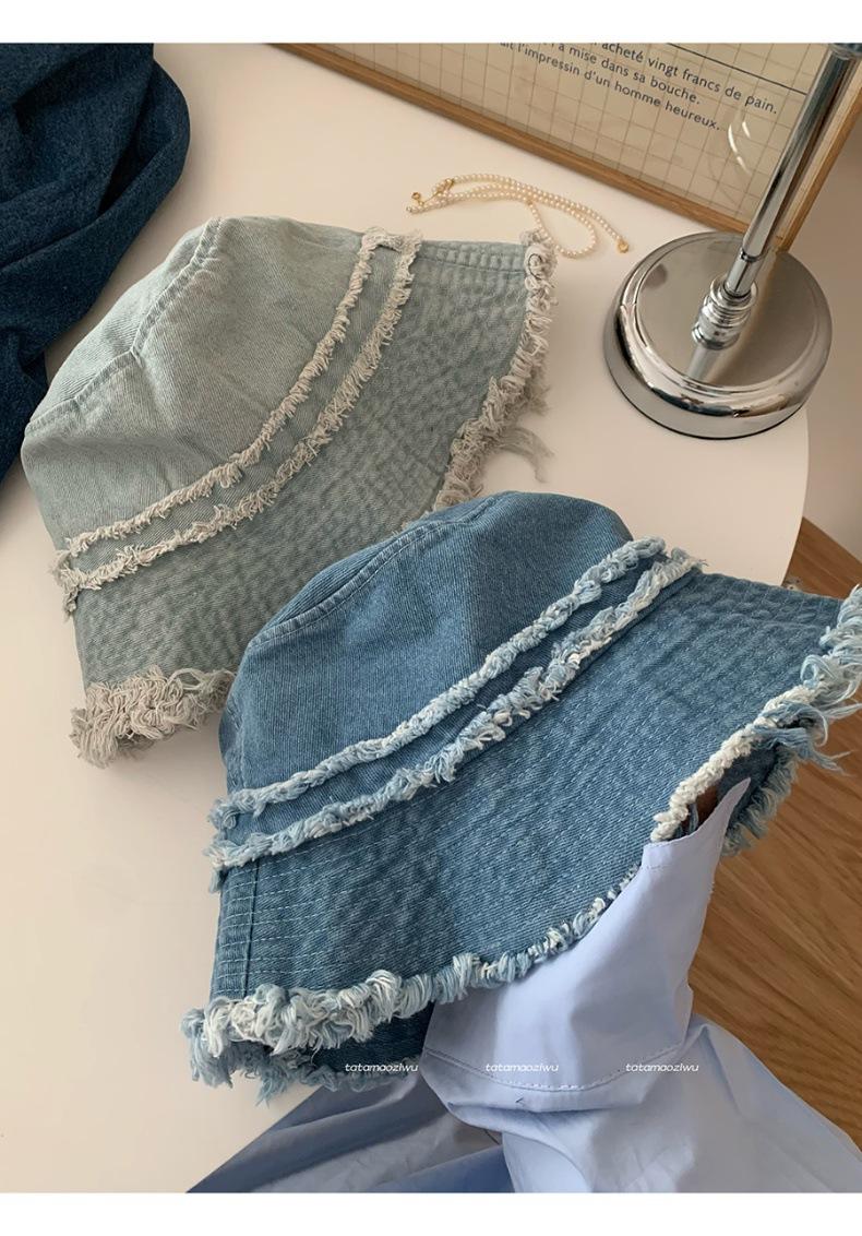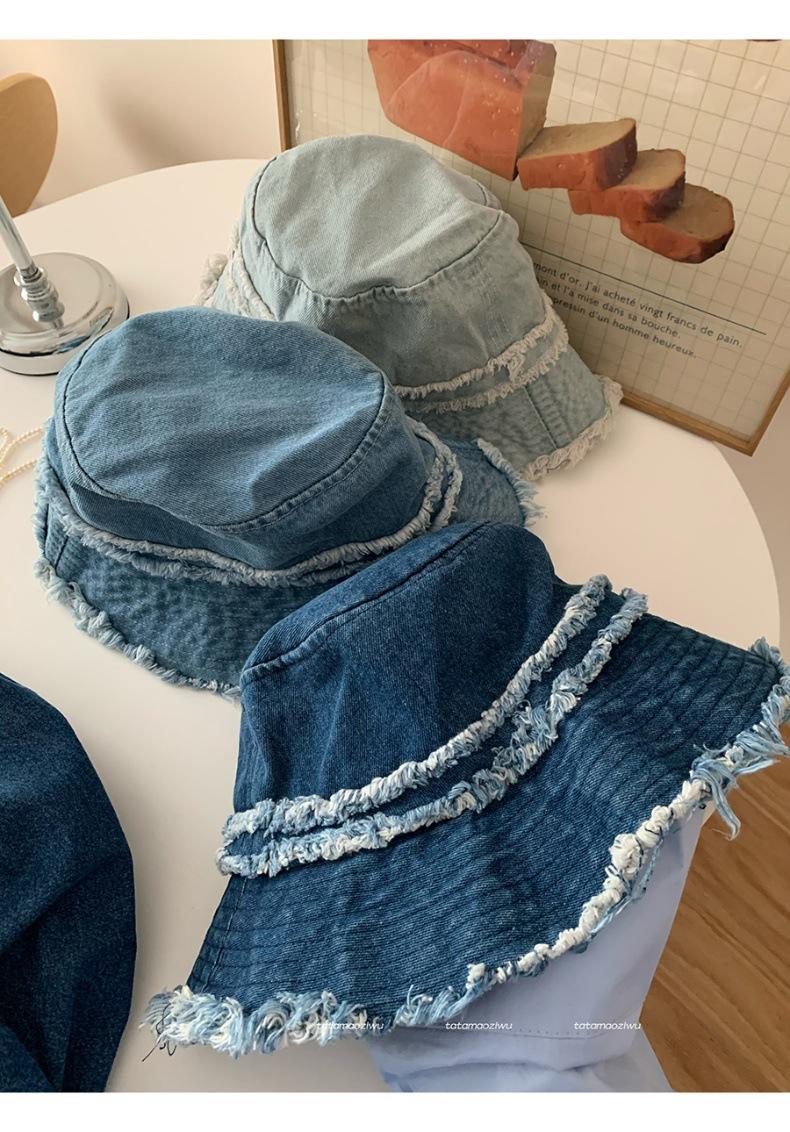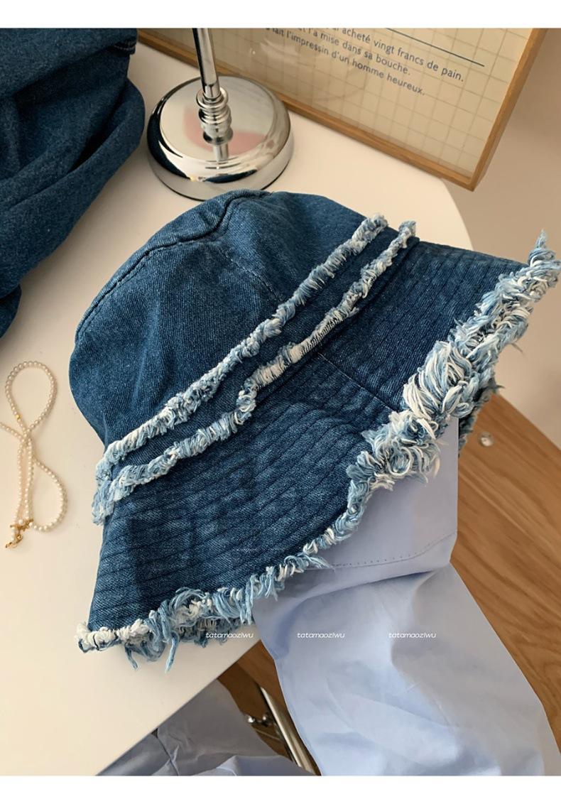 Sombrero de pescador peludo de mezclilla para mujer Primavera y Verano 2024 Nuevo estilo japonés color sólido combinable cubrecara sombrero de cubo a prueba de sol