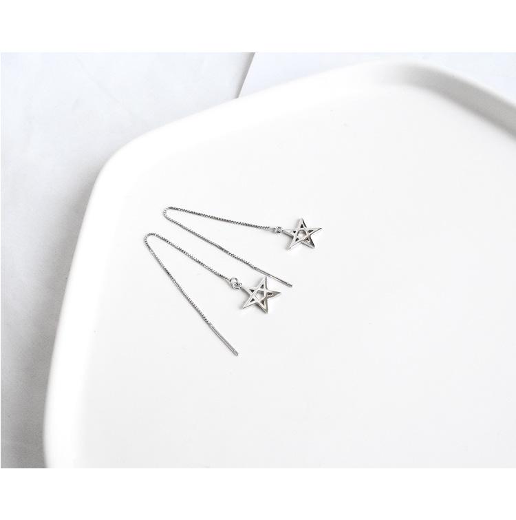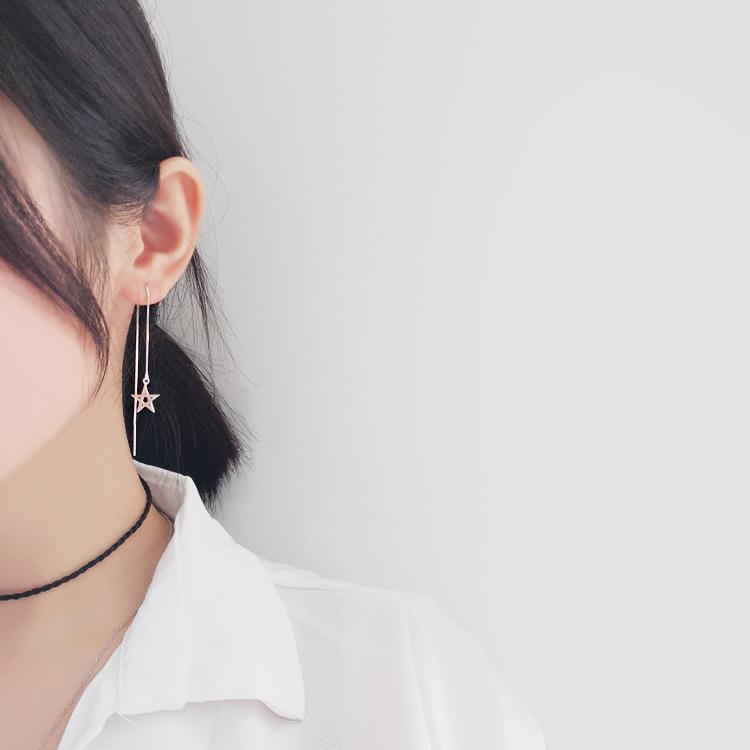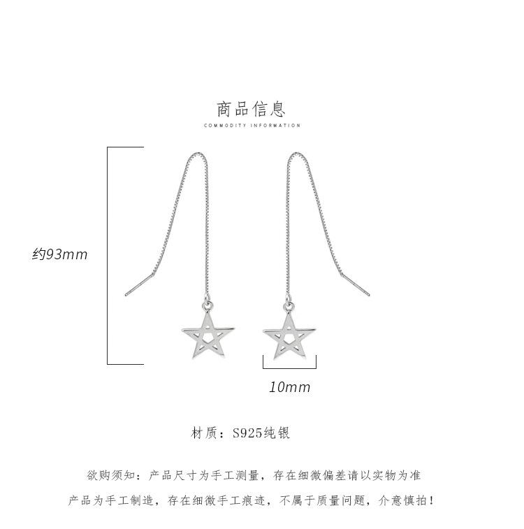 Aretes de Estrella de Plata Esterlina S925 Estilo Coreano Joyería Elegante Borla de Estrella de Cinco Puntas Aretes Largos Versátiles Accesorios de Aretes para Mujer