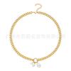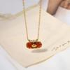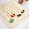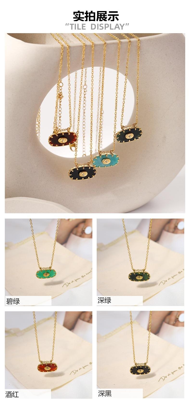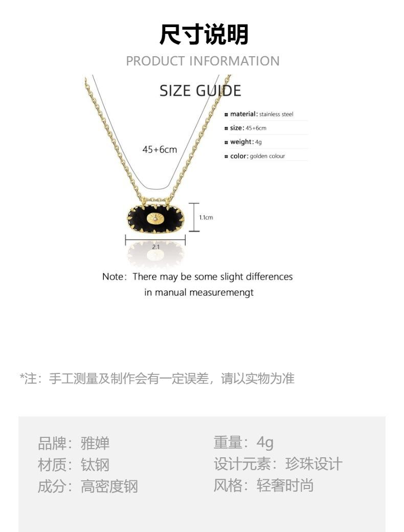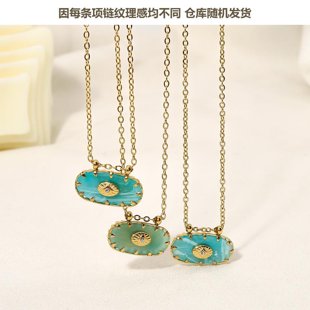 Collar de acero de titanio con colgante ovalado retro estilo INS de comercio exterior europeo y americano, cadena de clavícula con placa incrustada de acero inoxidable chapada en oro de 18 quilates