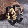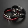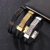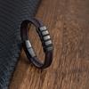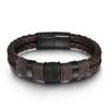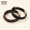 Pulsera de cuero para hombre europea y americana al por mayor simple cuero vacuno tejido pulsera de cuerda de cuero acero titanio superficie esmerilada pulsera con hebilla magnética