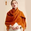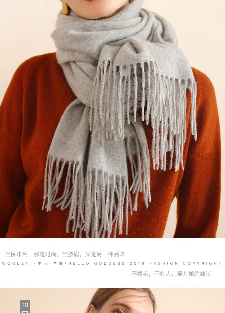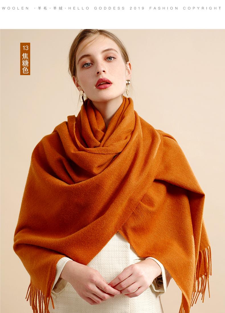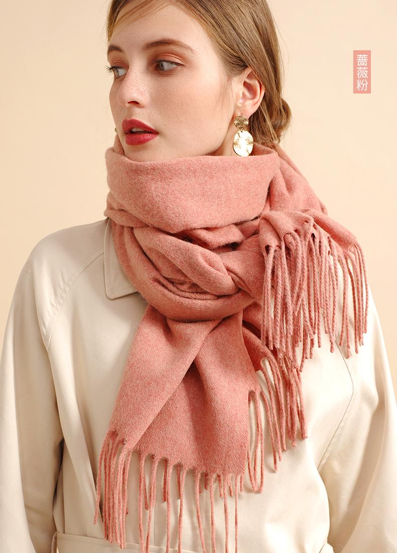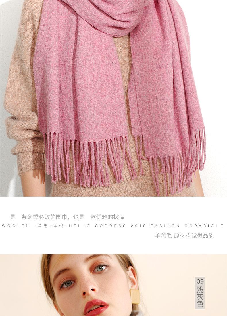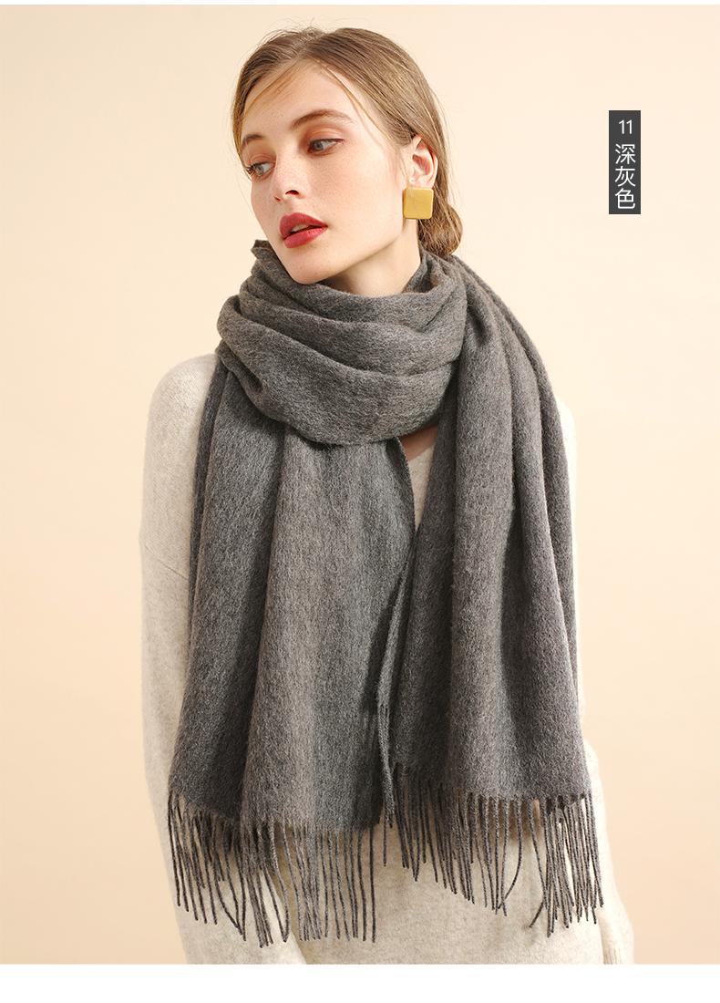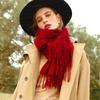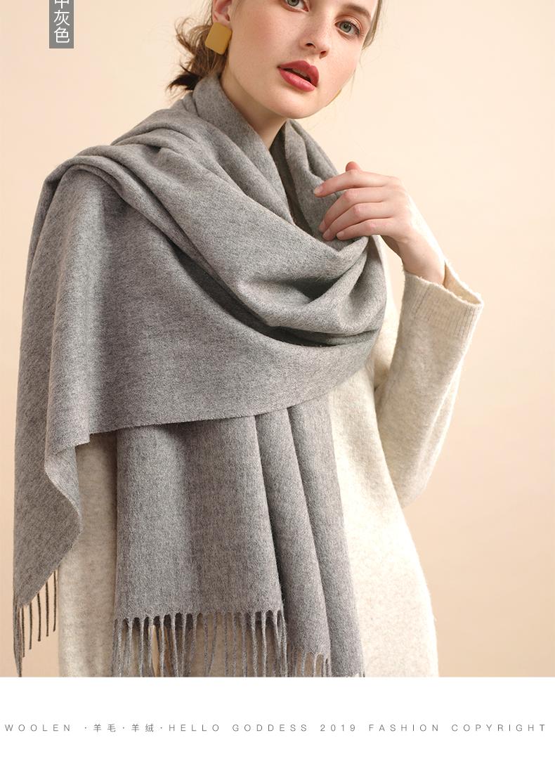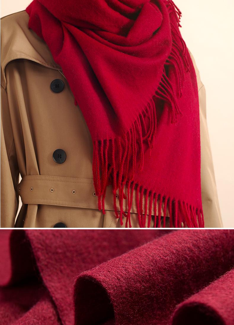 Bufanda Gruesa de Lana Pura para Mujer, Otoño e Invierno Cálida Color Sólido Gris Larga de Doble Uso Calentador de Cuello Chal Versátil, Rojo a Prueba de Frío