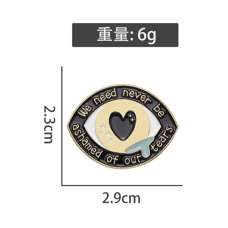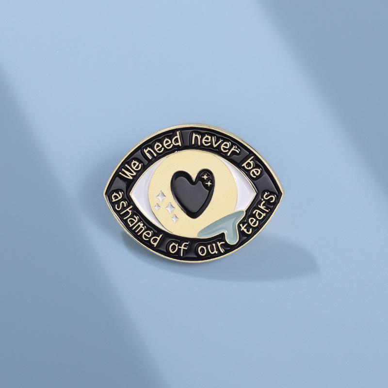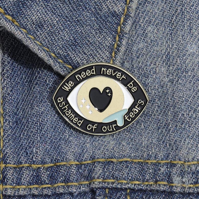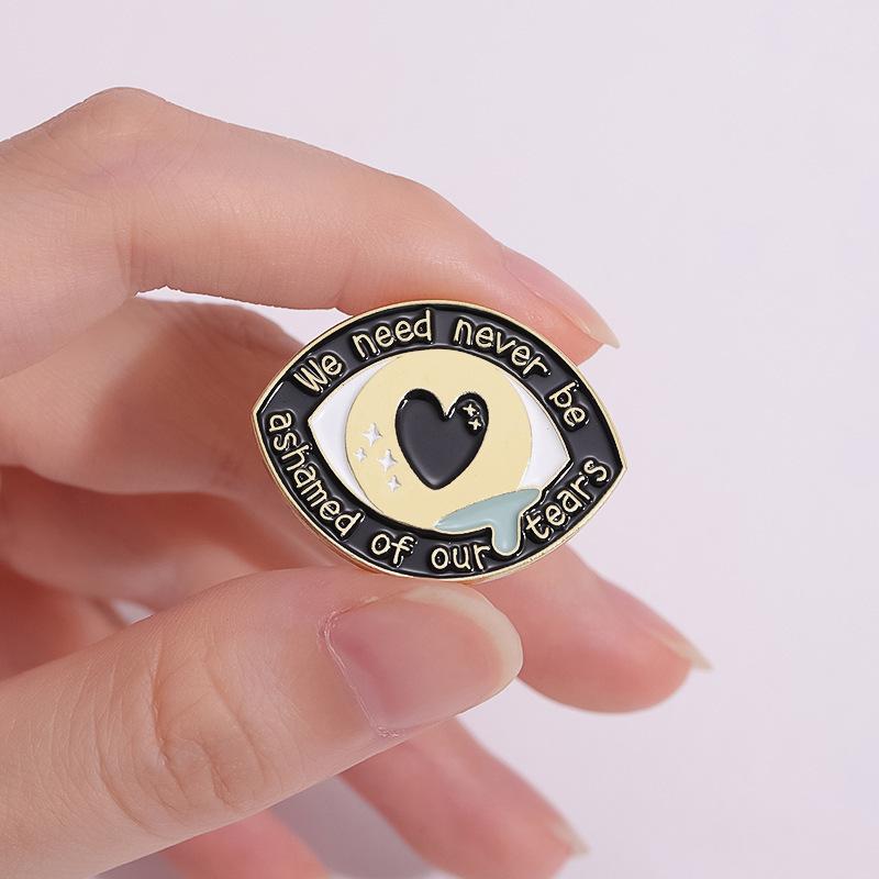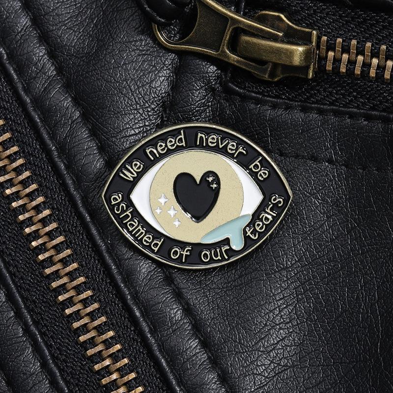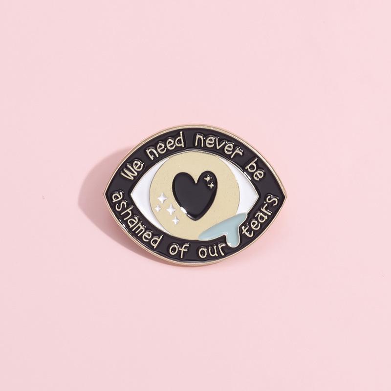 Broche con letras inglesas nuevas europeas y americanas. Nunca debemos avergonzarnos de nuestras lágrimas. Insignia con forma de ojo.