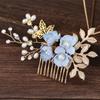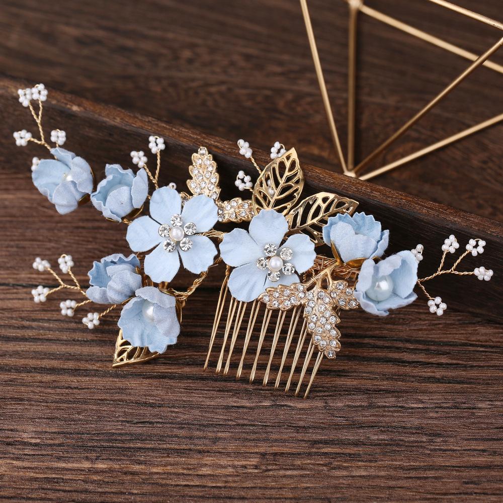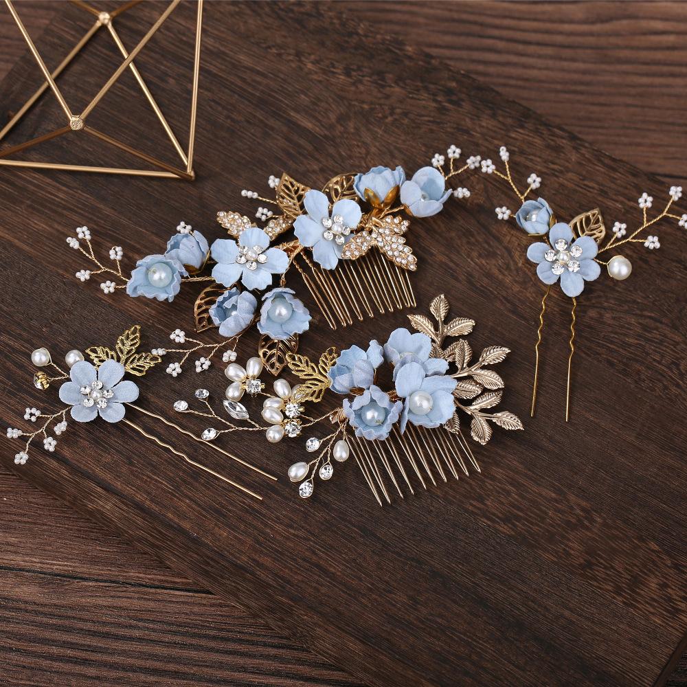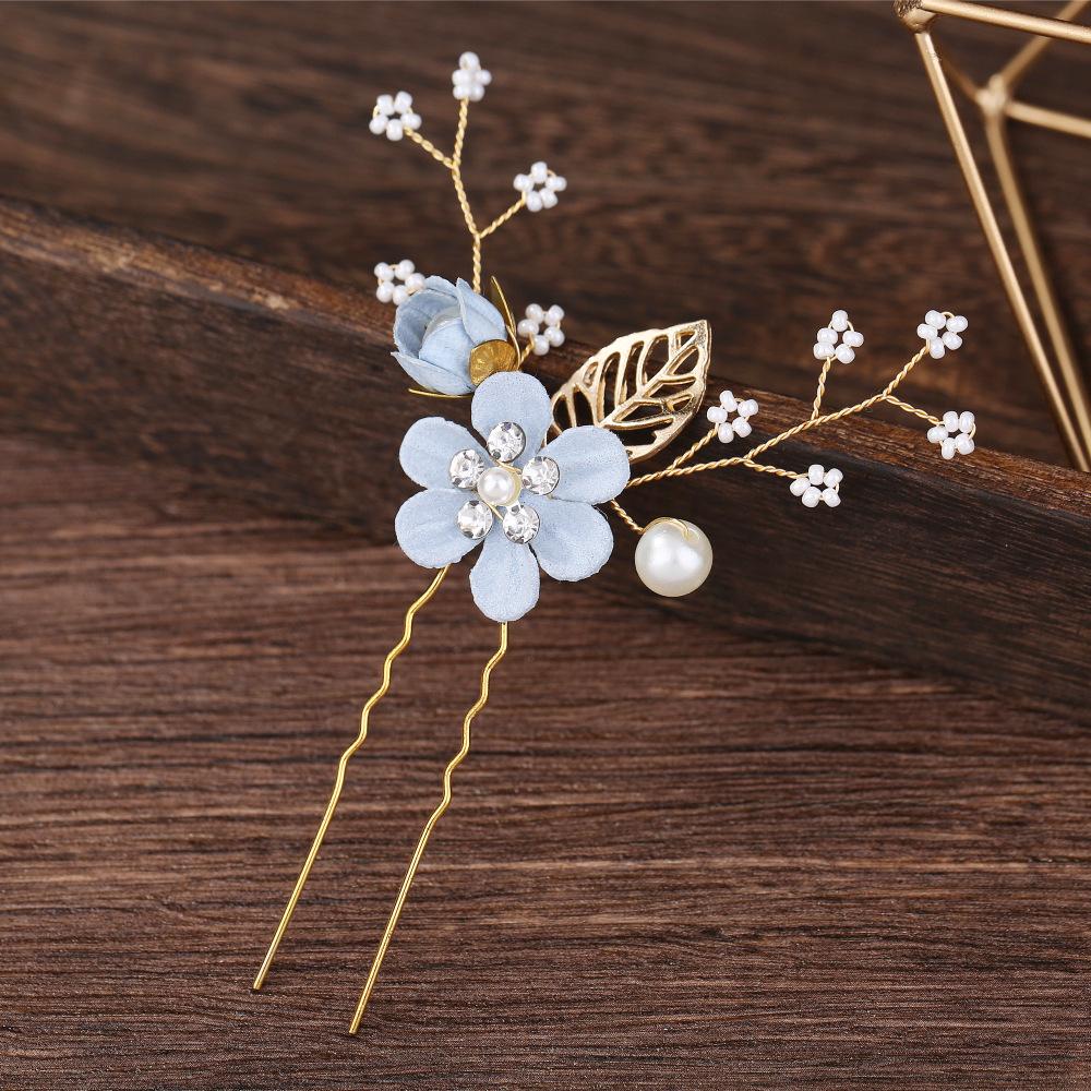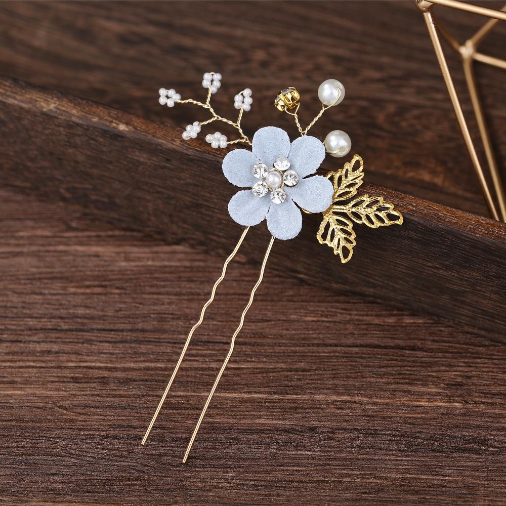 Tocado de Novia Coreano con Diamantes Azul Púrpura Flor Peineta para el Cabello Perla Horquilla para el Cabello en Forma de U Mori Flor para el Cabello Femenino Peineta para Boda