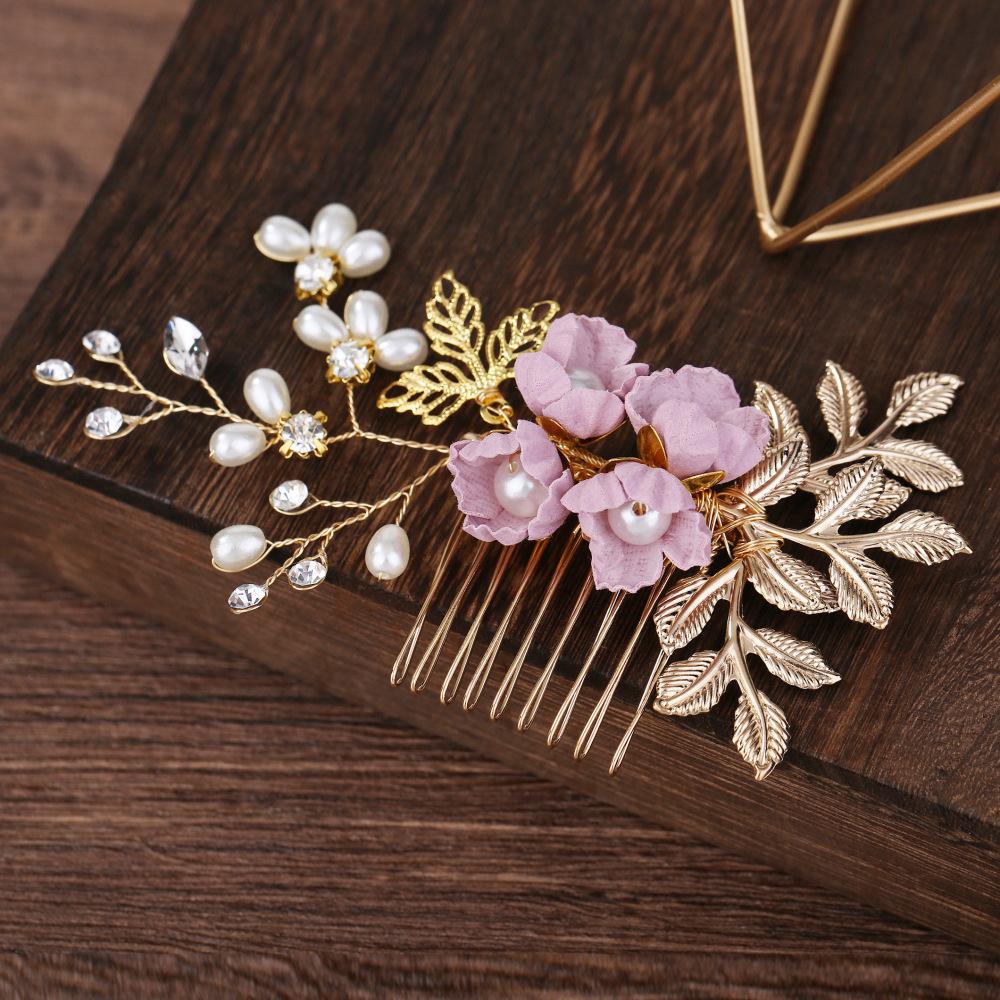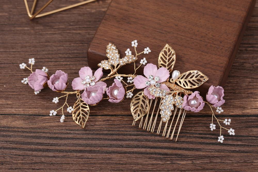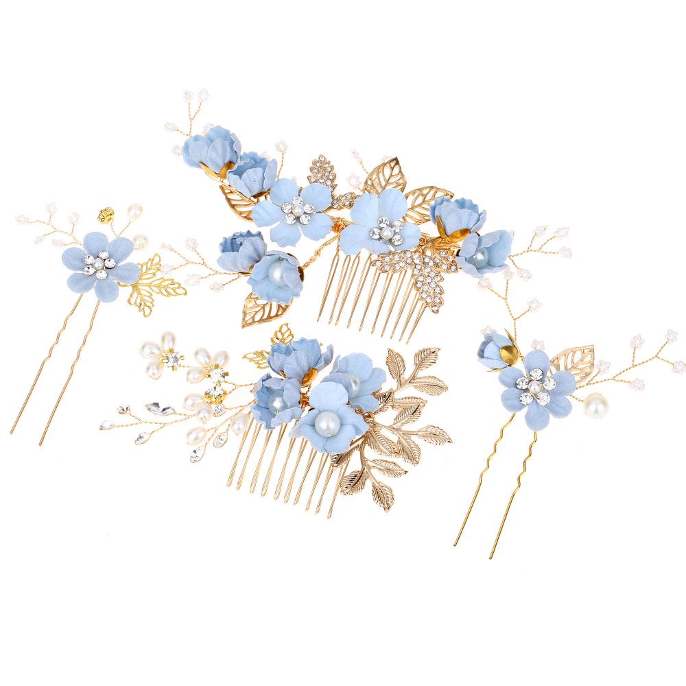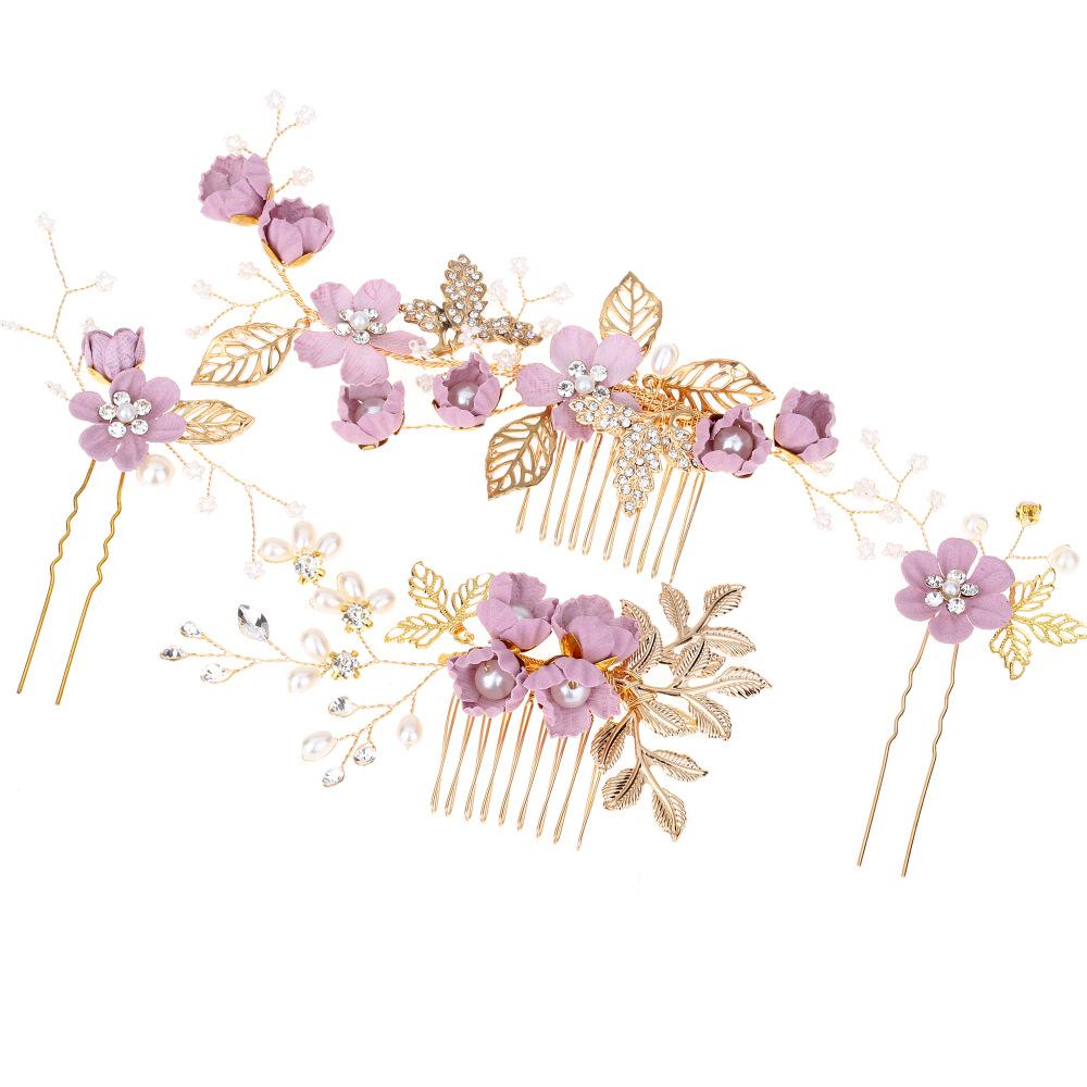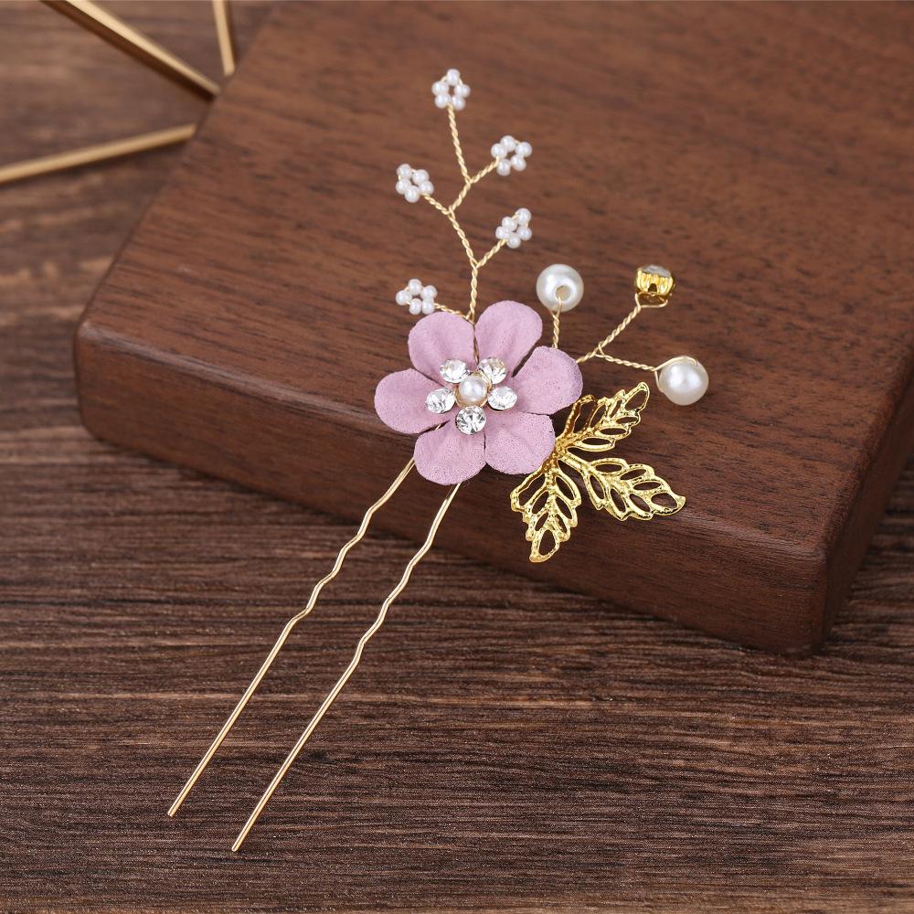 Tocado de Novia Coreano con Diamantes Azul Púrpura Flor Peineta para el Cabello Perla Horquilla para el Cabello en Forma de U Mori Flor para el Cabello Femenino Peineta para Boda
