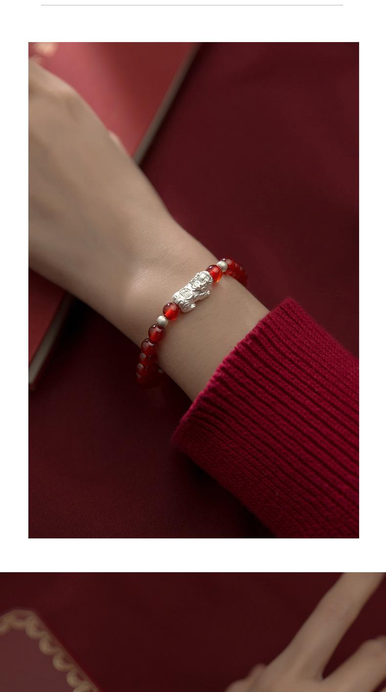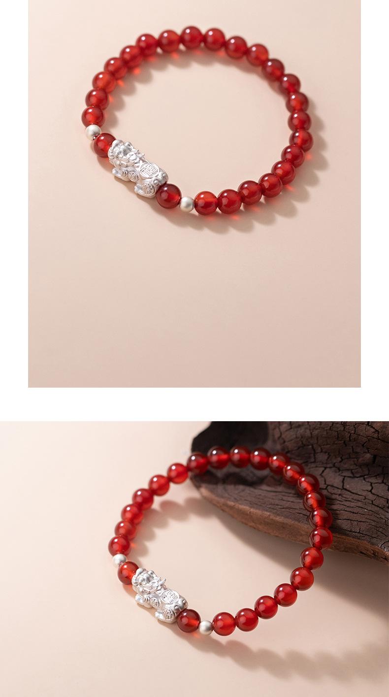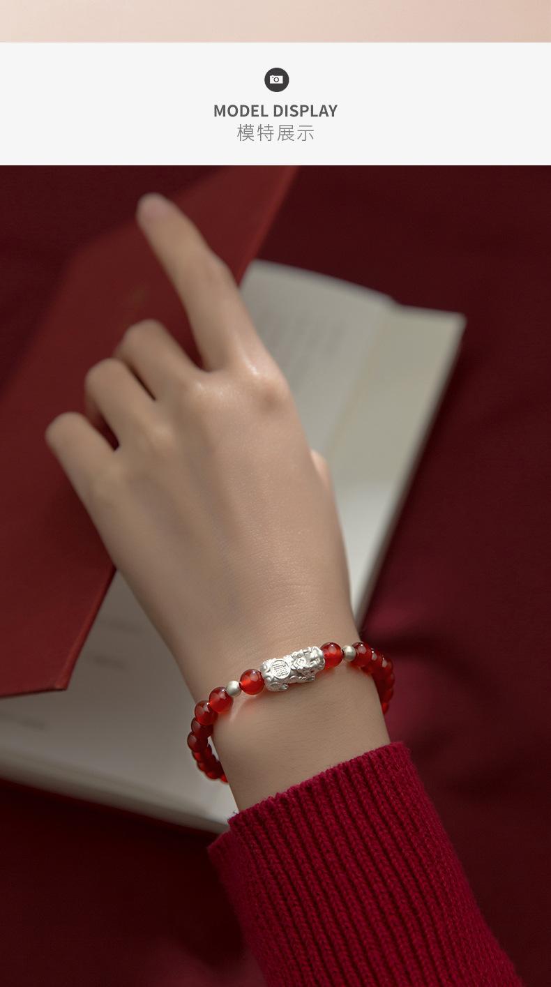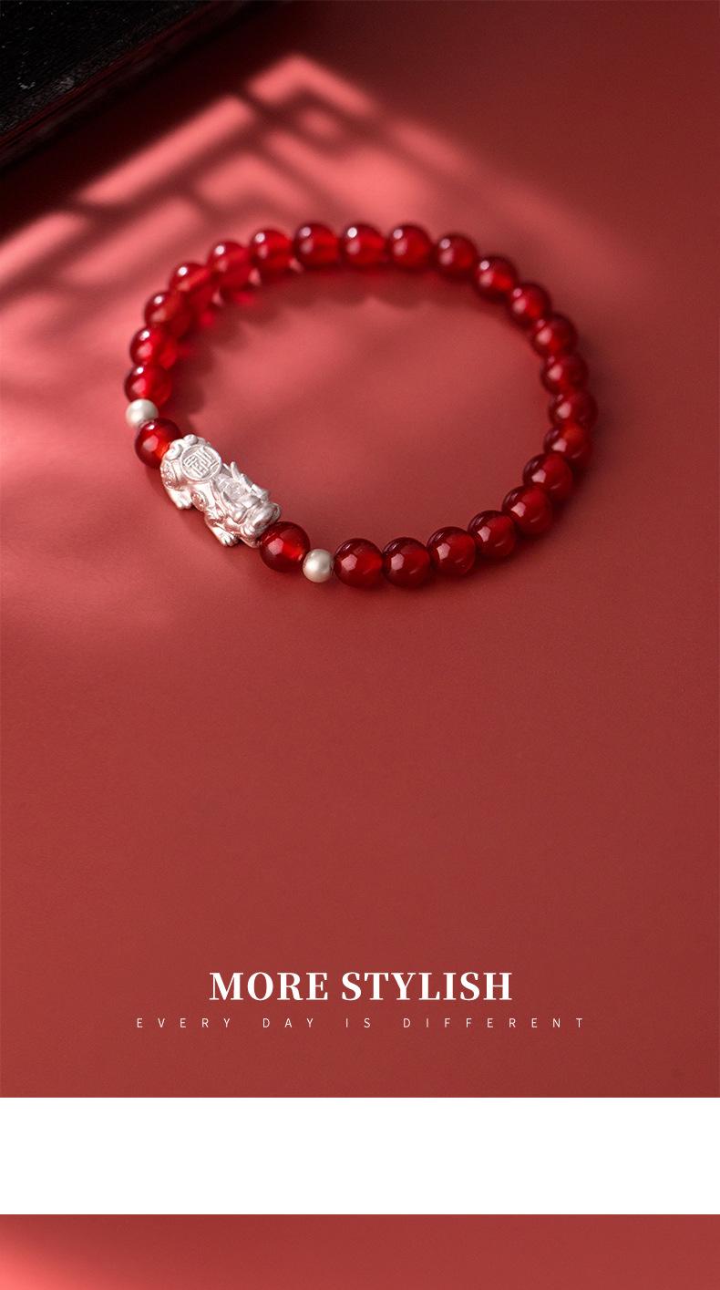 Pie plata 999 ágata roja pulsera valiente temperamento femenino pulsera de cuerda elástica con cuentas pulsera vintage C0392