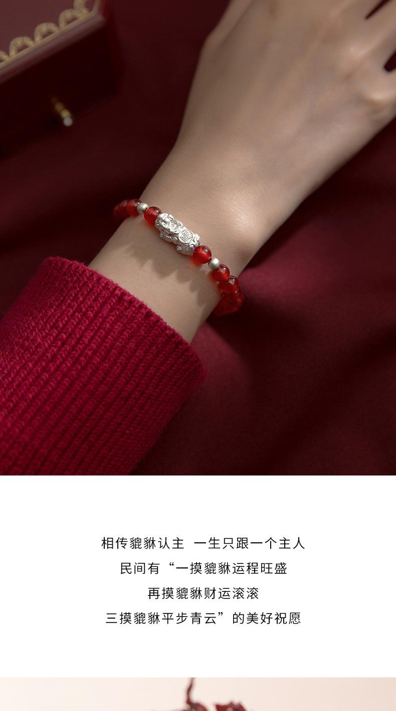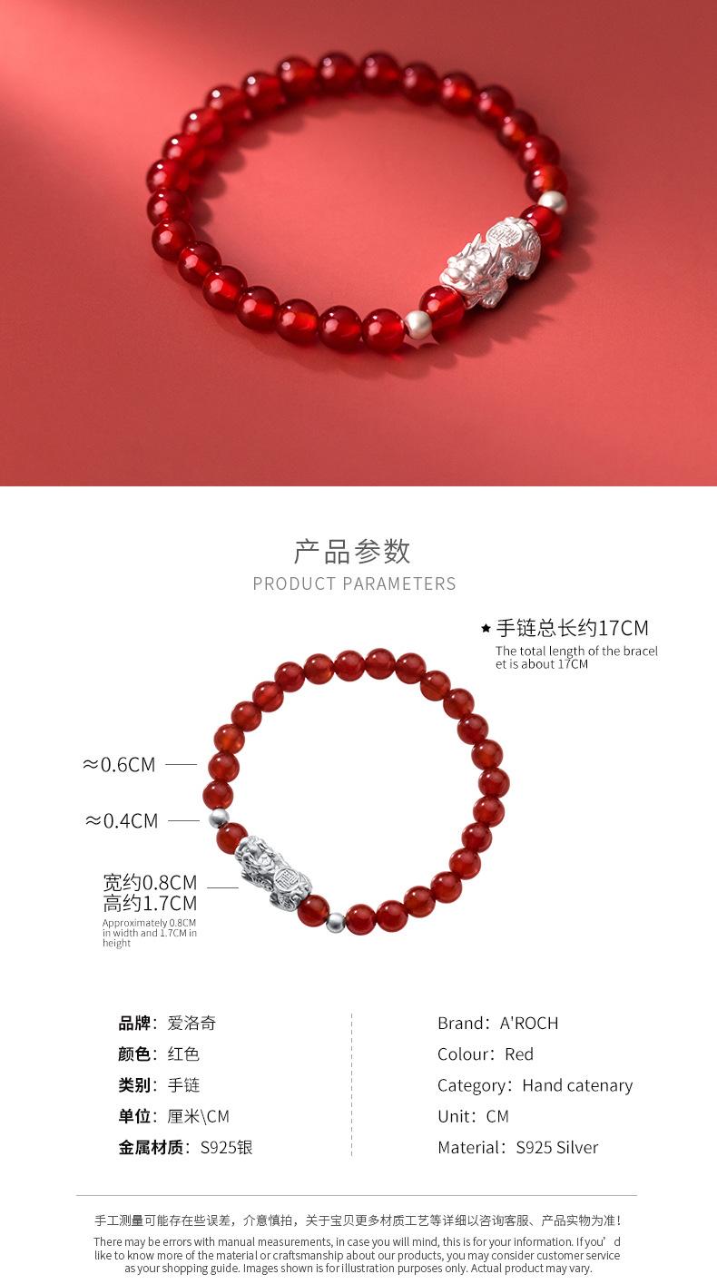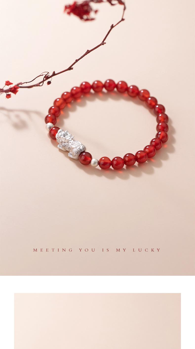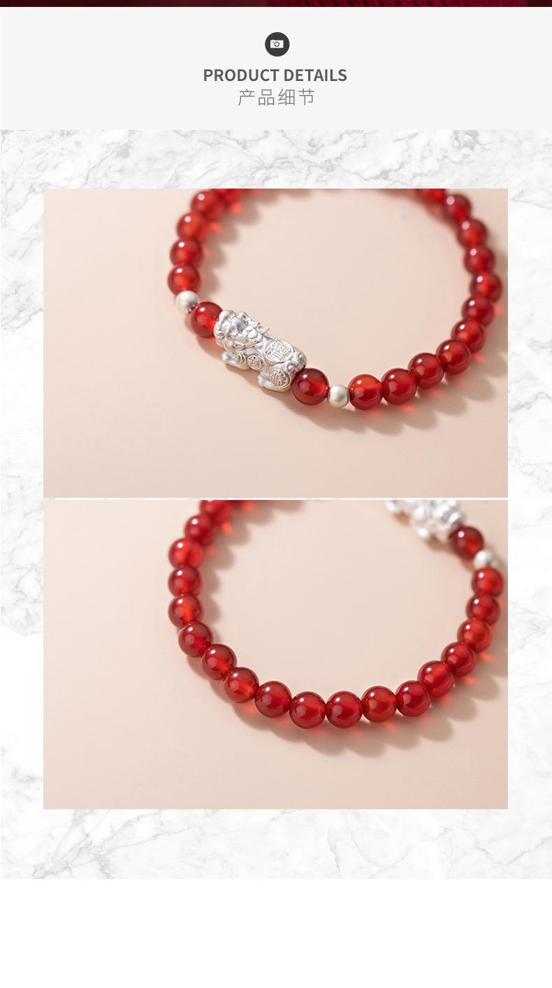 Pie plata 999 ágata roja pulsera valiente temperamento femenino pulsera de cuerda elástica con cuentas pulsera vintage C0392