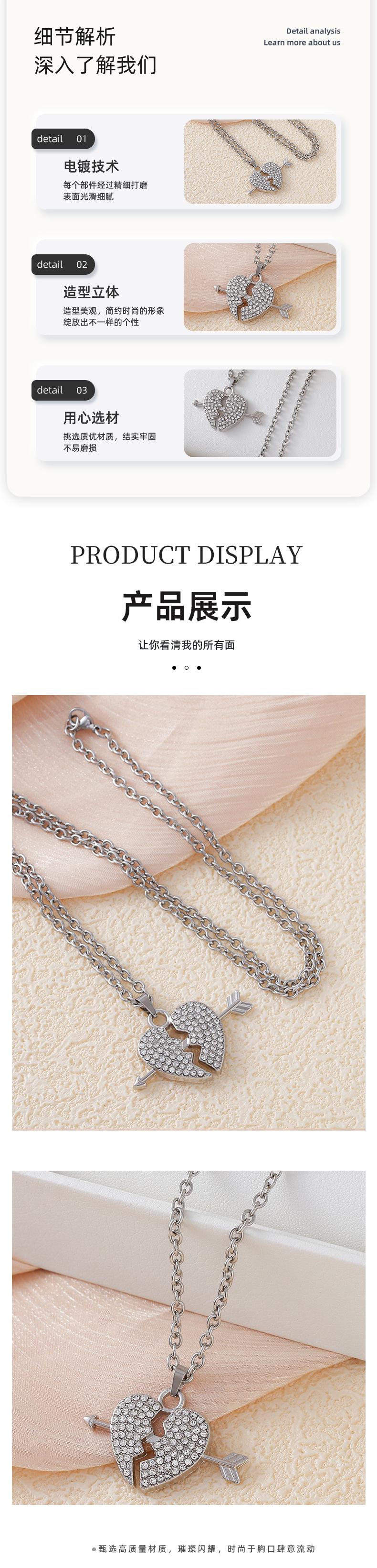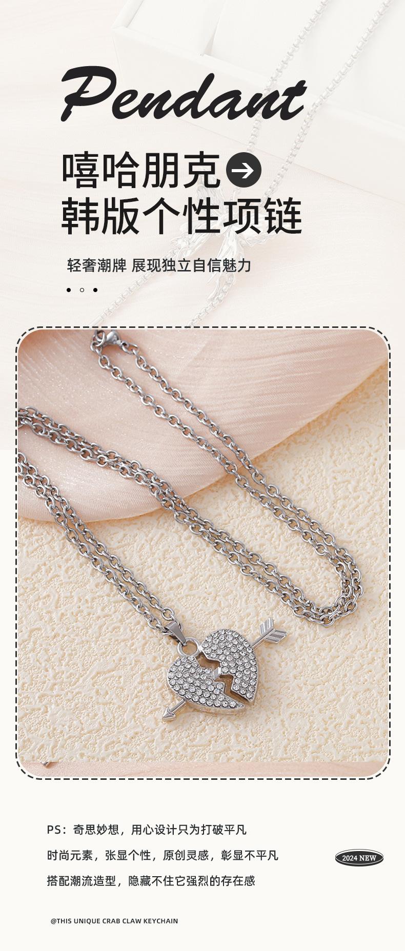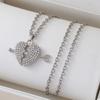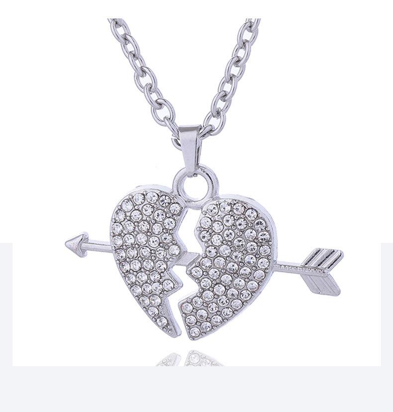 Collar con colgante de amor con una flecha que atraviesa el corazón y un taladro completo de moda de primavera para mujer, cadena de suéter con temperamento, joyería al por mayor