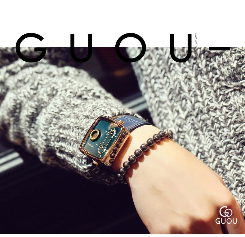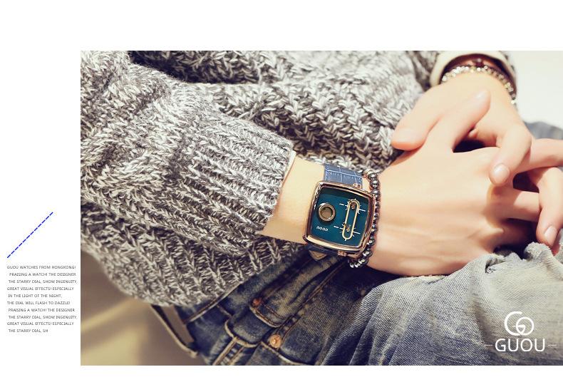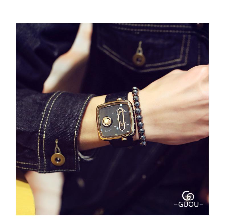 Reloj GUOU GUOU de doble movimiento para hombre, reloj de cuarzo de estilo europeo y americano con correa de piel de vaca.