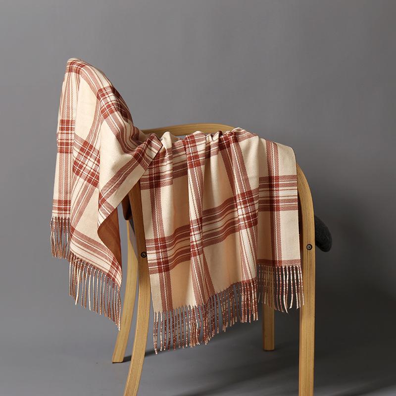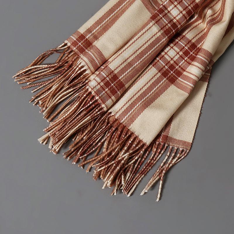 Bufanda de Otoño e Invierno a Cuadros de Faux Cachemira, Chal Grueso y Cálido, Bufanda Larga con Borlas a la Moda para Hombres y Mujeres, Calentador de Cuello