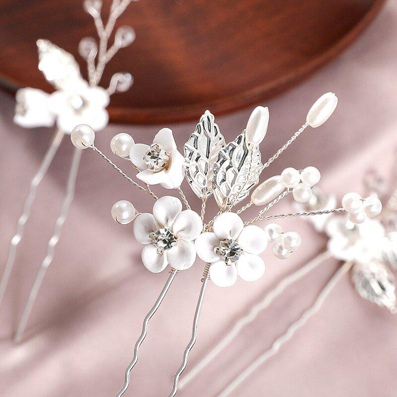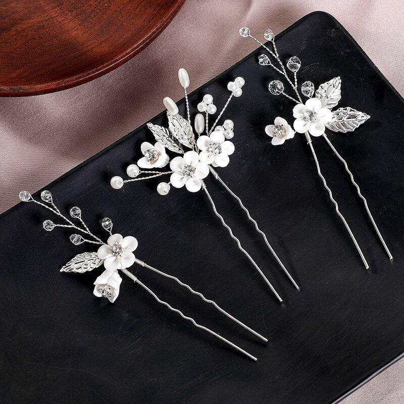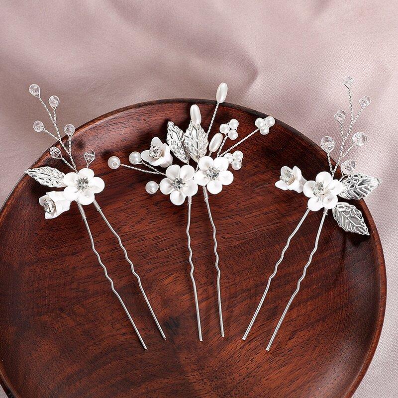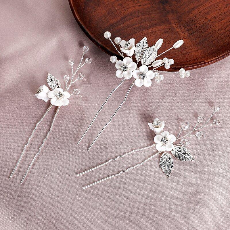 Conjunto de horquillas para novia transfronterizas, decoración para estudio fotográfico, tocado de flores con hojas y perlas de cerámica suave, tocado de novia para boda