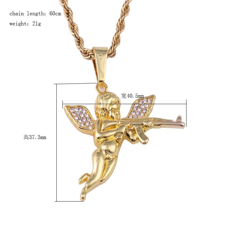 Collar con colgante de ángel de la venganza, ametralladora de aleación europea y americana, venta transfronteriza, joyería de hip-hop para hombres y mujeres.