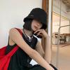 Sombrero de pescador con letras negras para primavera y verano, estilo japonés, para mujer, con cabeza grande, estilo coreano, con cara visible, pequeño, liso, para calle.