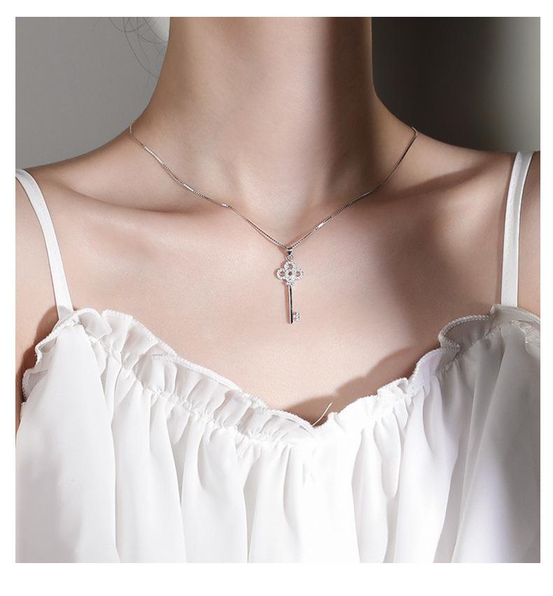 Collar de llave de plata de ley 925 para mujer, colgante de nicho de verano que combina con todo, cadena de clavícula simple, nuevo collar de tendencia 2022