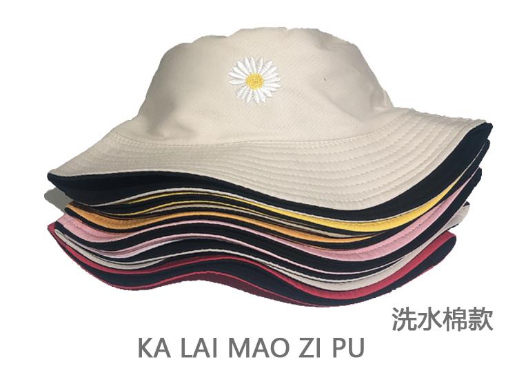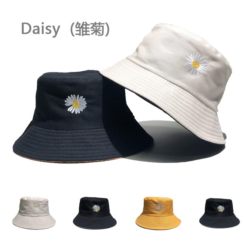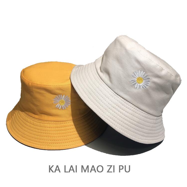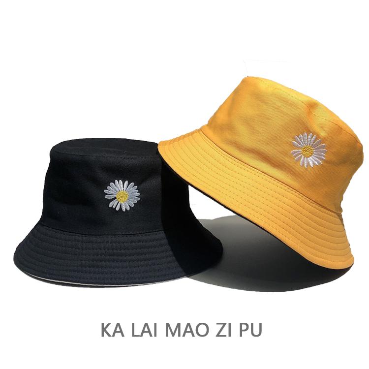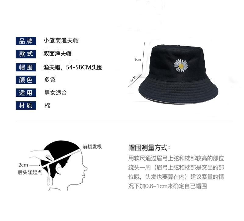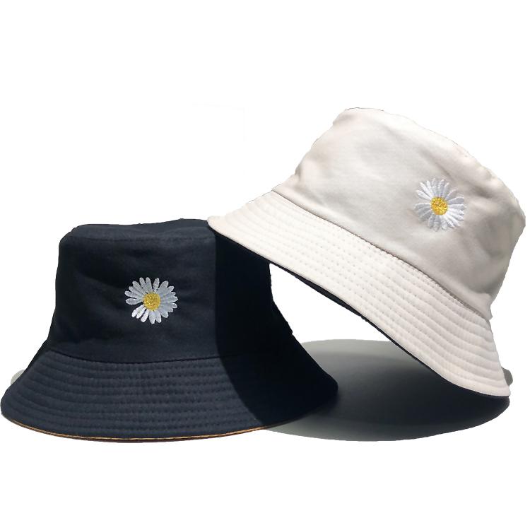 Sombrero de pescador de dos caras con bordado de margaritas pequeñas, sombrero de pescador de doble cara, sombrero de lavabo para hombre, sombrero de moda para mujer