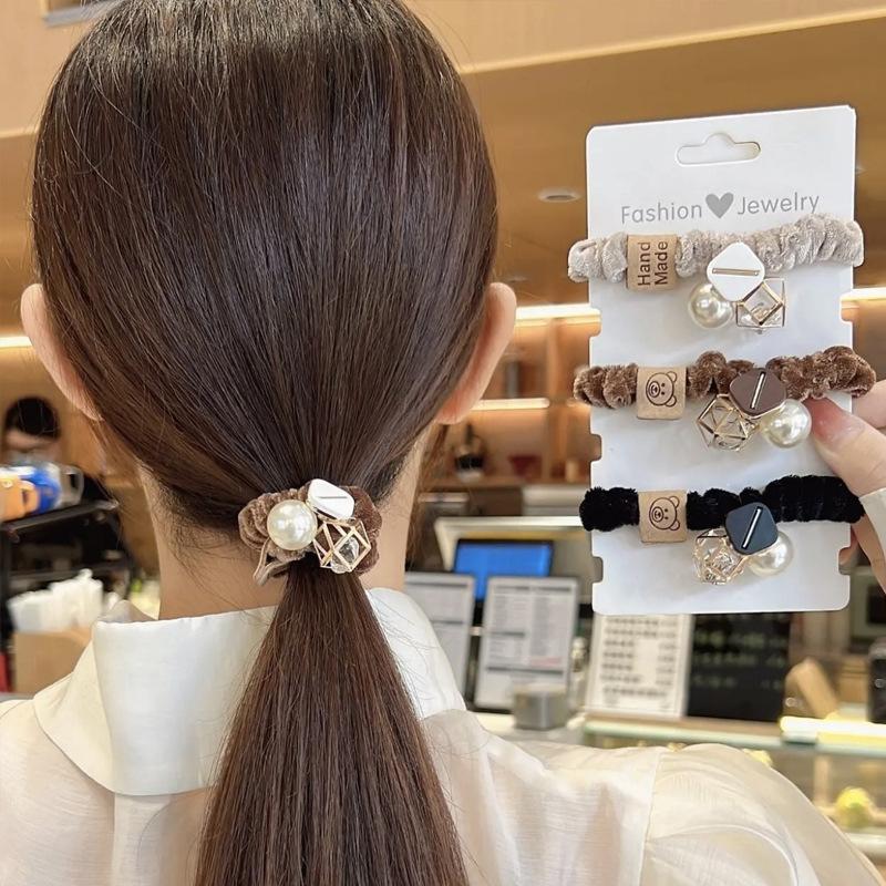 Bear Pearl Curry Hair Ring, Bear Pearl Beige Hair Ring