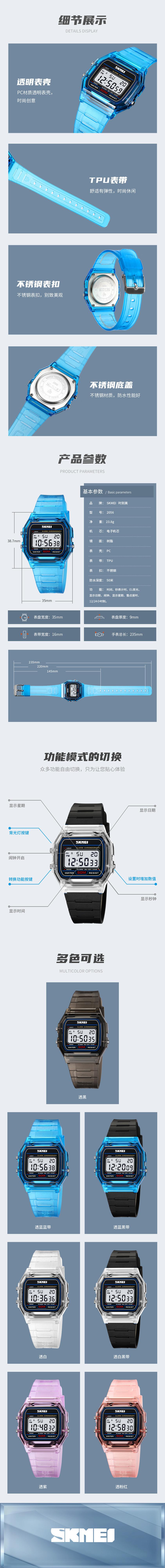 | Material | Caja de plástico, correa de TPU, espejo de resina, cubierta inferior de acero inoxidable, hebilla de acero inoxidable |