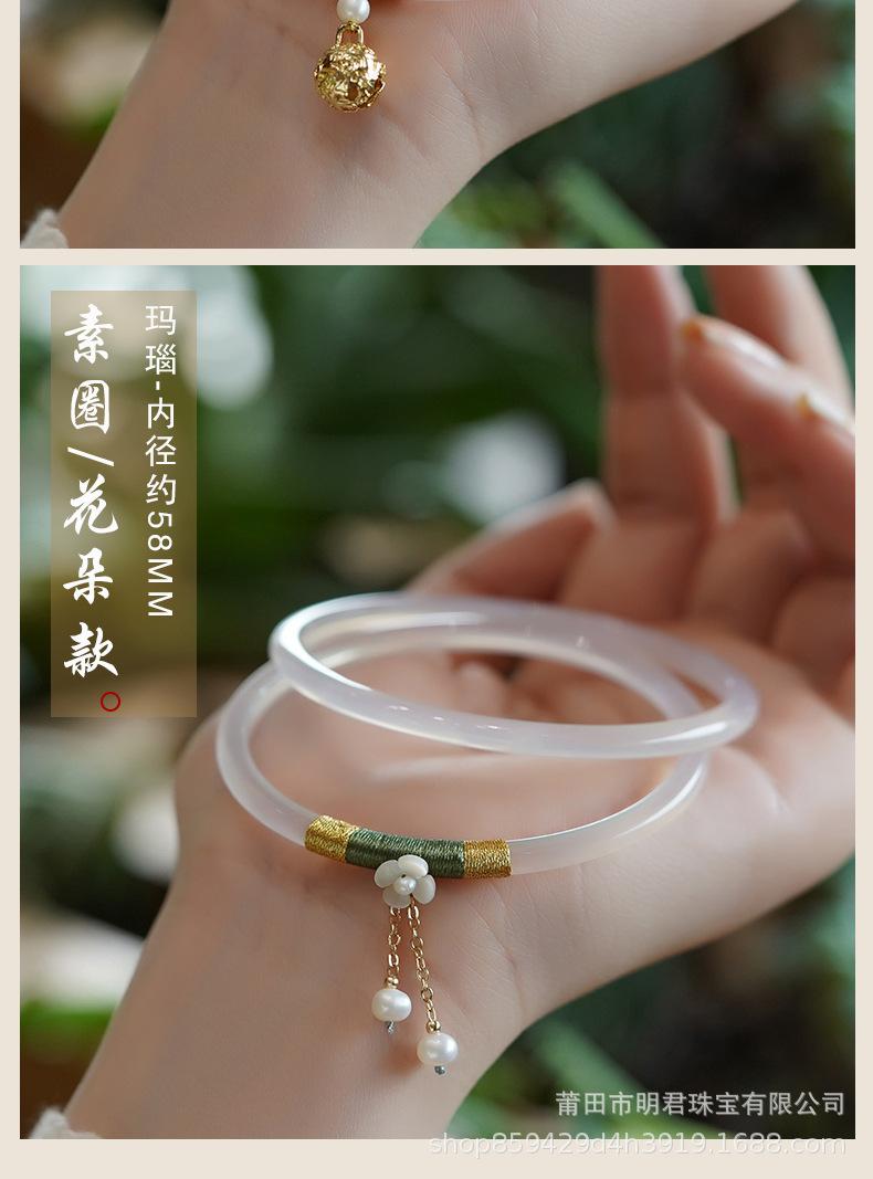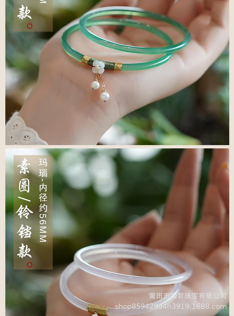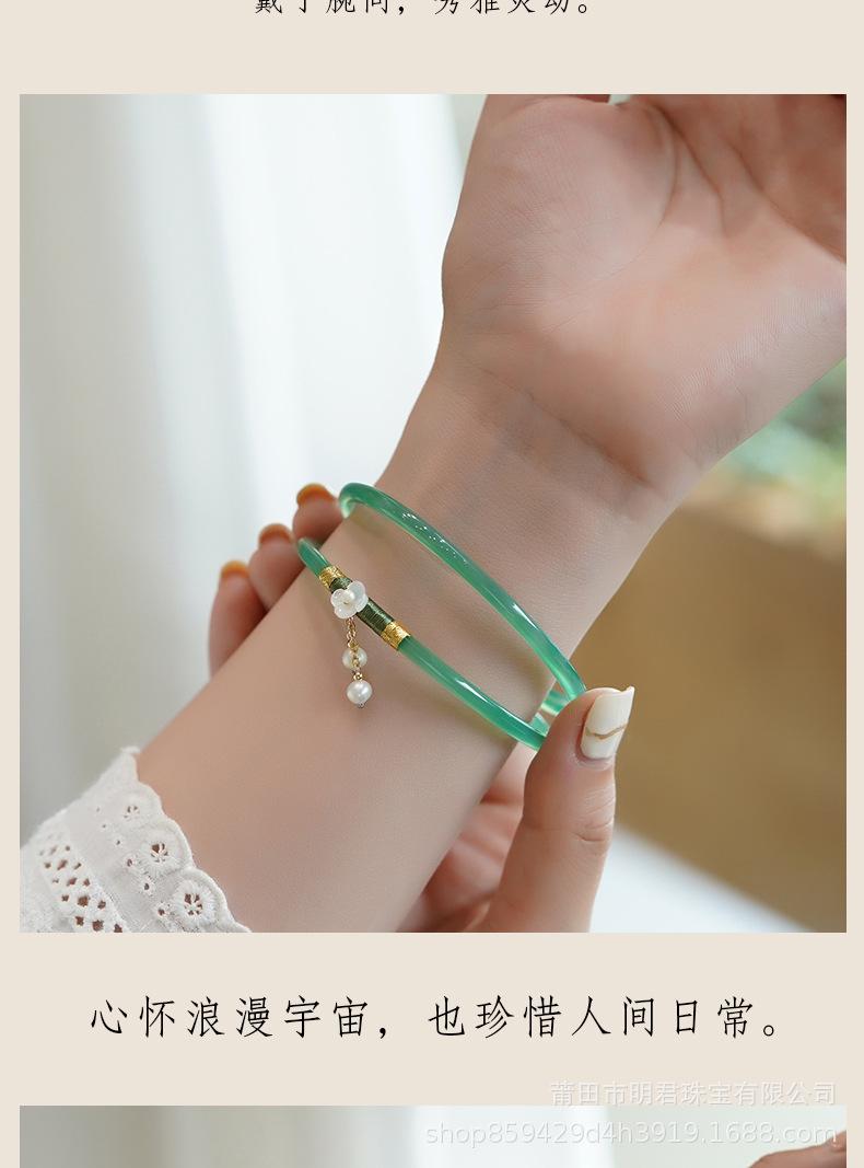 Joyería de Calcedonia Natural Pulsera Jingle Verde Ágata Fina Par de Pulseras Ultrafinas para Mujeres Xia Nianqing Douyin