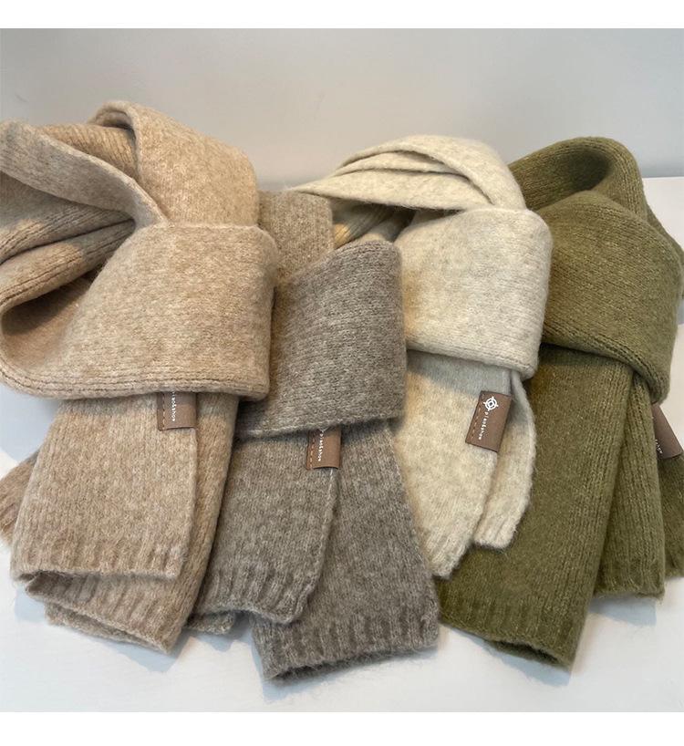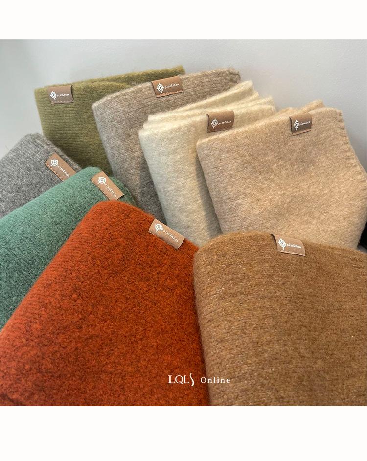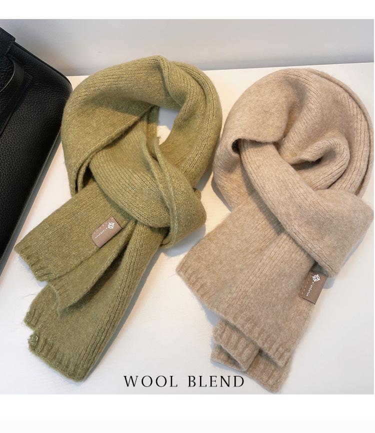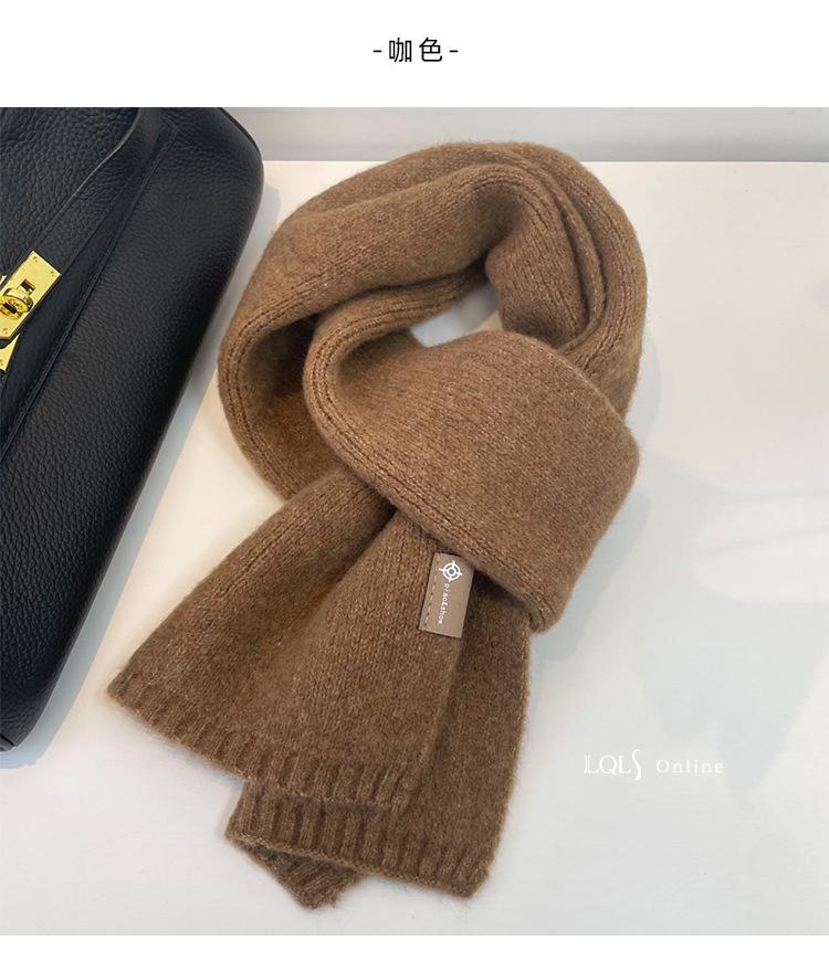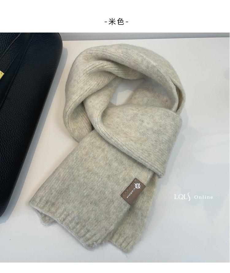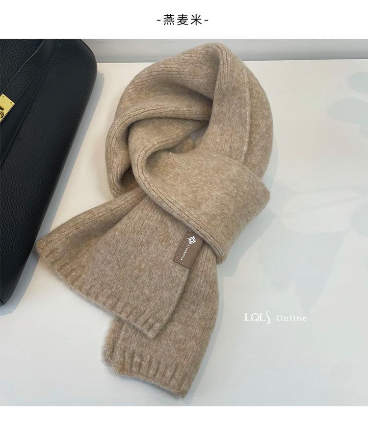 Bufanda pequeña de lana de color leche, tejida en un solo color, estilo coreano, gruesa, cálida y combinable.