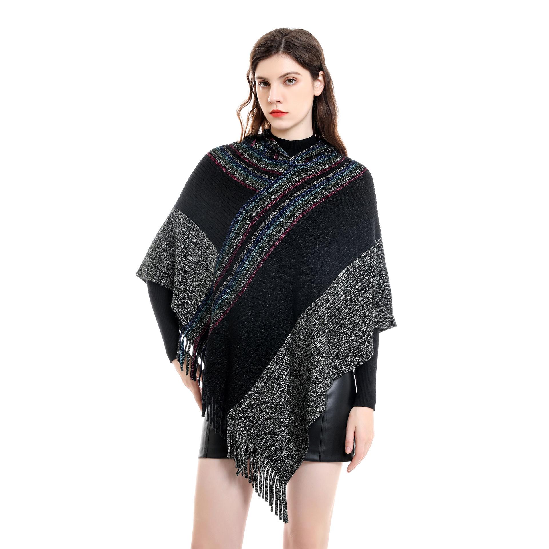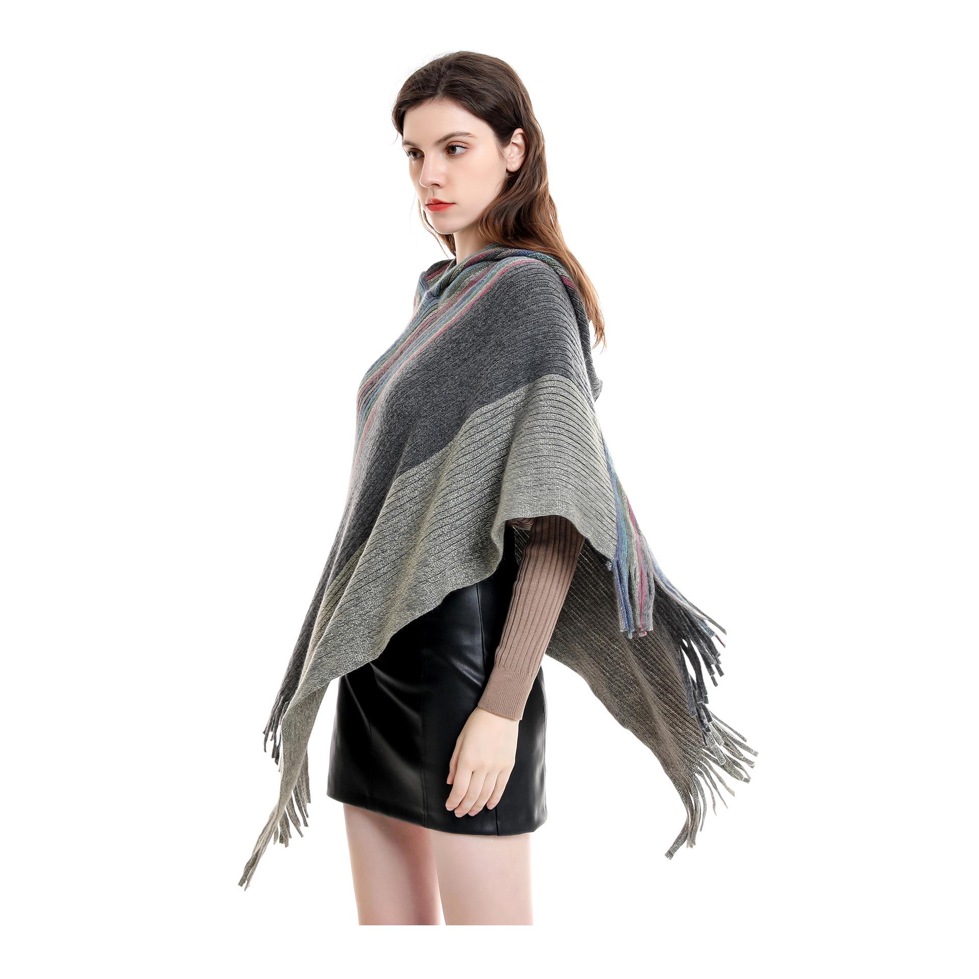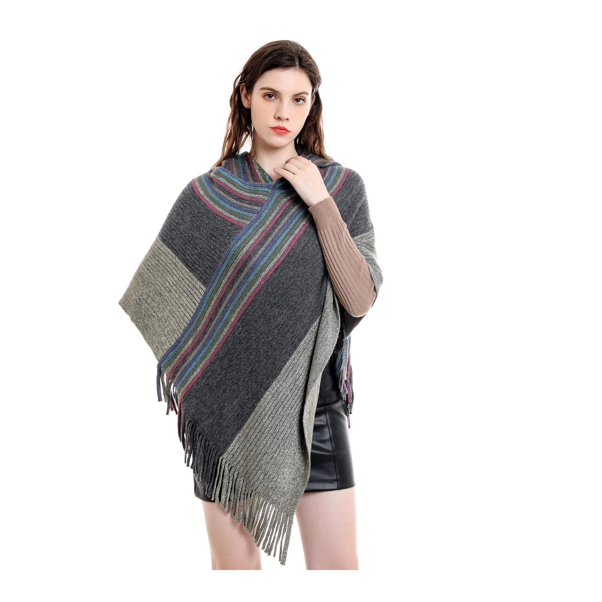 Nuevo estilo, chal de atmósfera sencilla para otoño e invierno, capa europea y americana de comercio exterior para damas, capa con borlas sueltas, informal, combinable con todo.