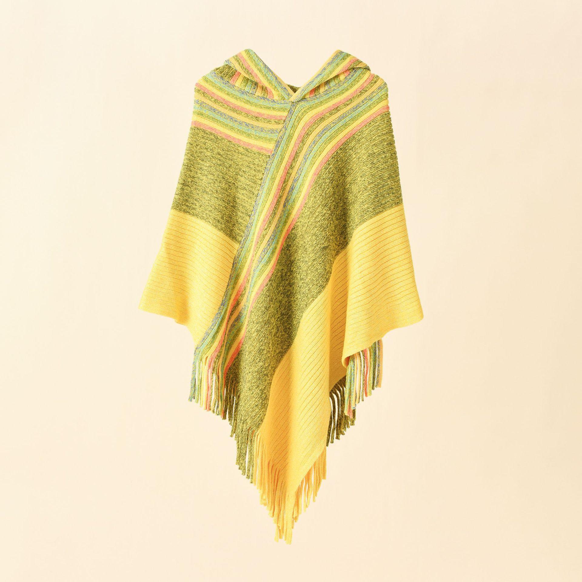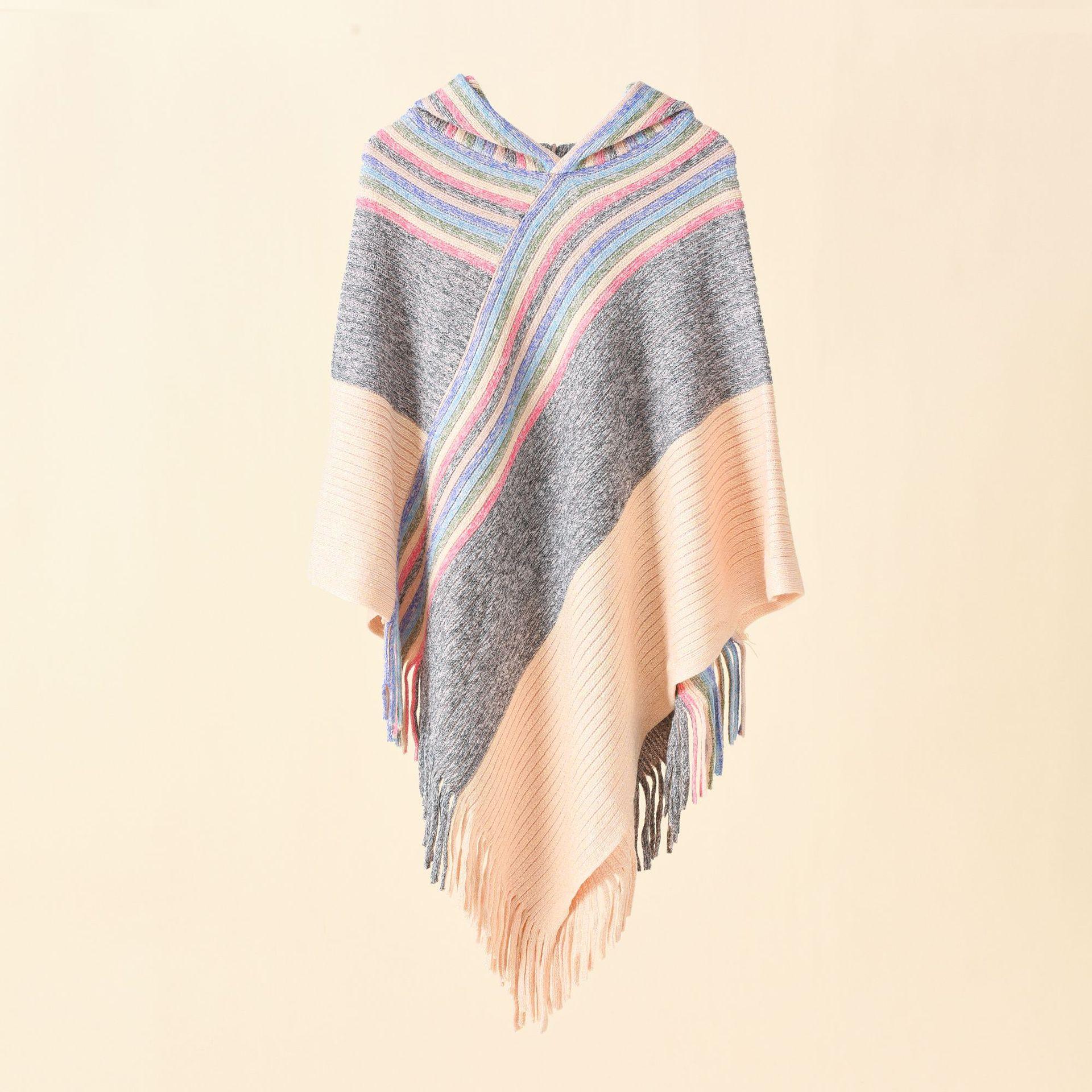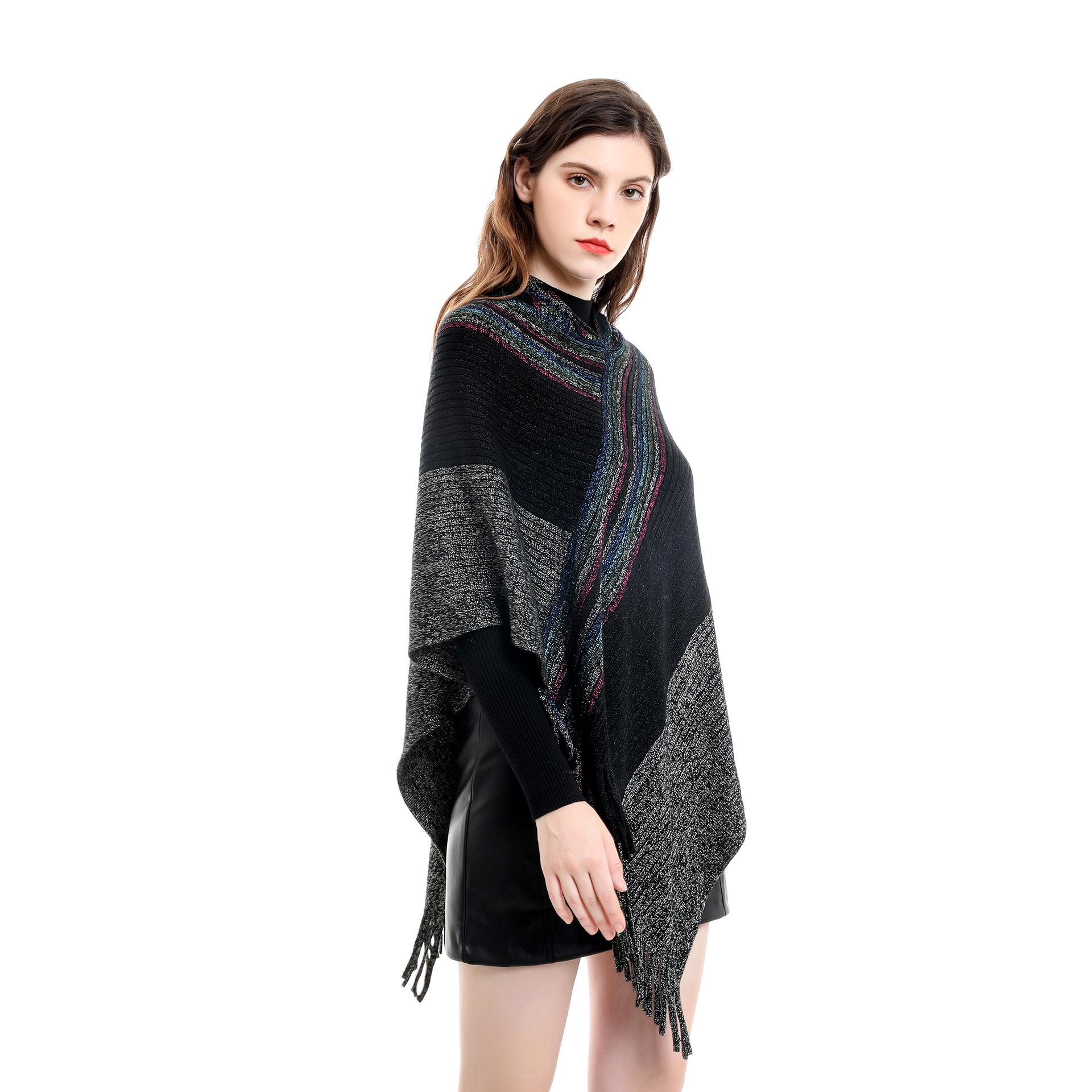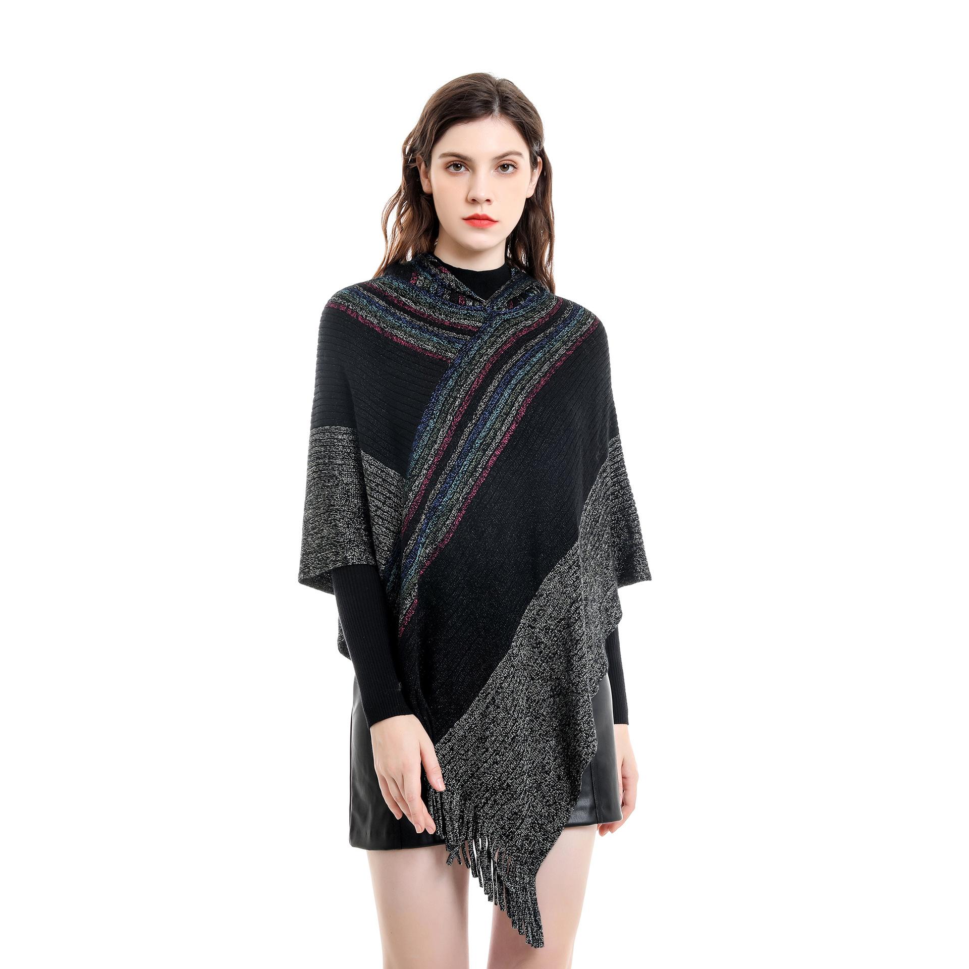 Nuevo estilo, chal de atmósfera sencilla para otoño e invierno, capa europea y americana de comercio exterior para damas, capa con borlas sueltas, informal, combinable con todo.