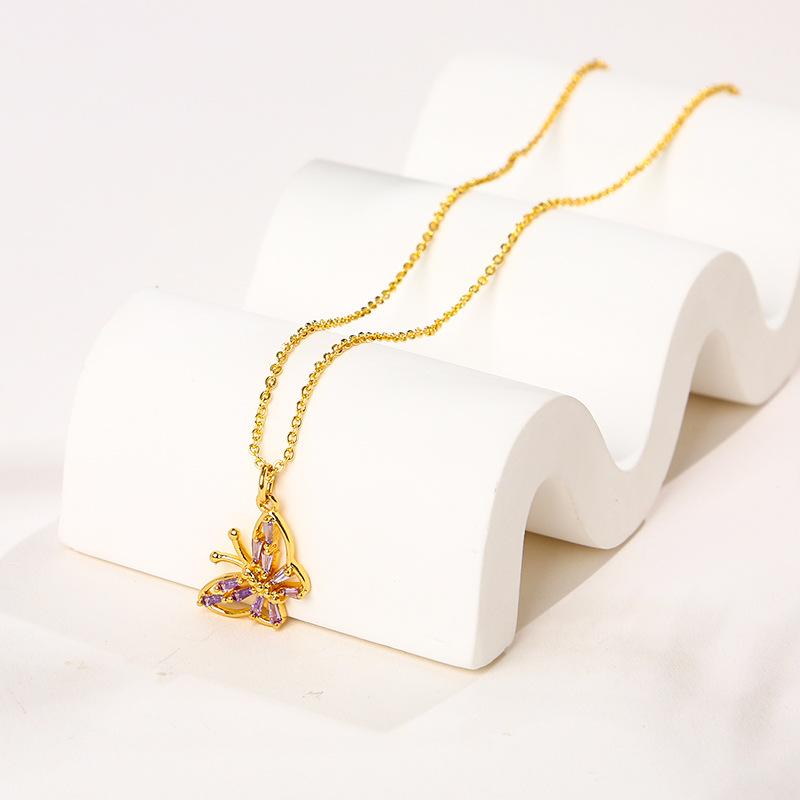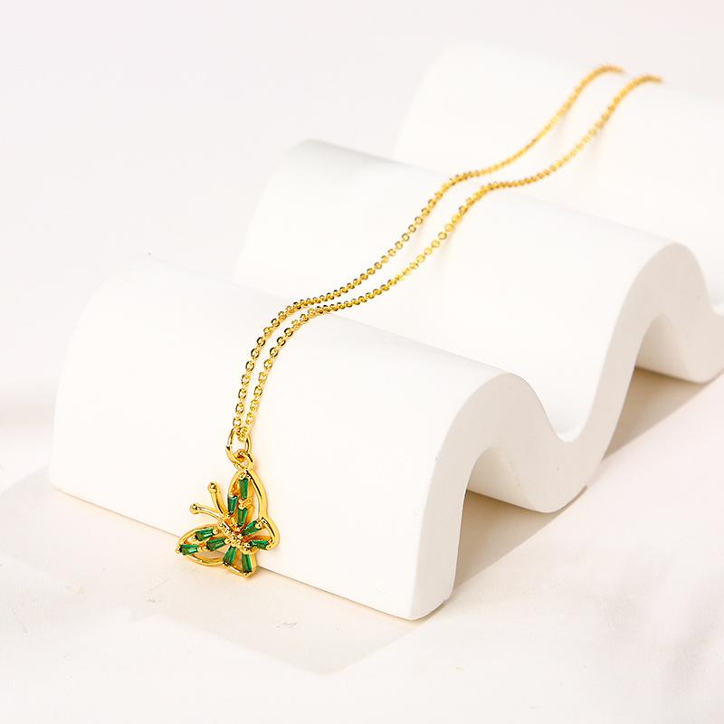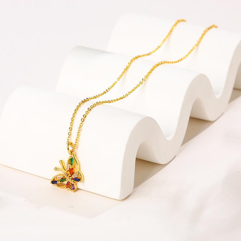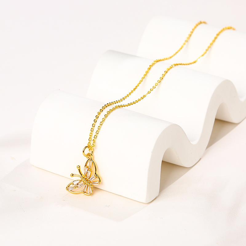 Nuevo colgante de mariposa de circonita hueca simple de comercio exterior, chapado en cobre con oro auténtico, alta conservación del color, estilo INS, elegante y versátil.