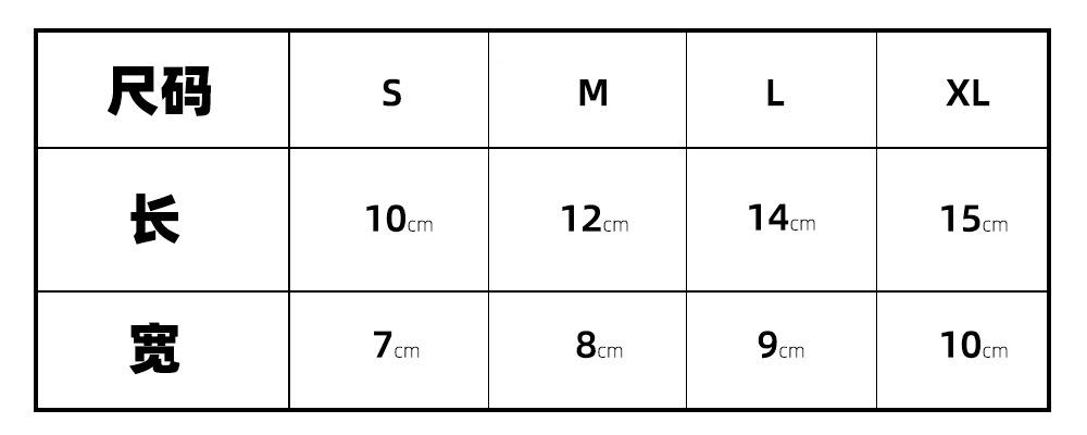 S ancho 7CM largo 10CM, M ancho 8CM largo 12CM, L ancho 9CM largo 14CM, XL ancho 10CM largo 15CM