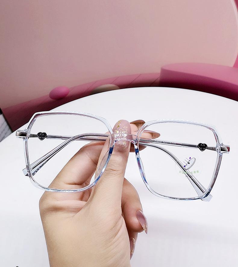 TR90 cara irregular pequeña luz anti-azul espejo plano abanico de arte Foto callejera Gafas decorativas montura puede combinar miopía