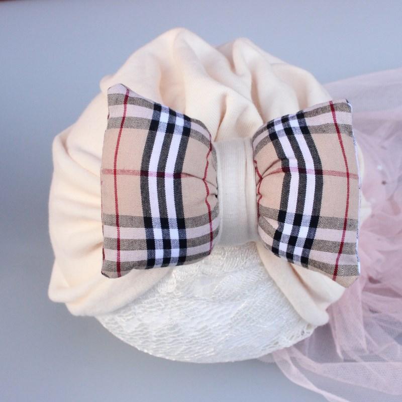 Conjunto de accesorios para el cabello con lazo para niños, diadema con estampado de cuadros y orejas de conejo en forma de bebé
