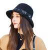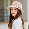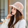 Elegante sombrero de pescador, sombrero de lana de invierno, sombrero de lazo para mujer, sombrero de lavabo de lana de cúpula versátil de otoño e invierno.