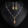 Collar y pendientes con gotas de agua de novia esmeralda, elegante cadena de clavícula, nicho ligero, collar de lujo de alta gama para mujer, venta al por mayor