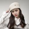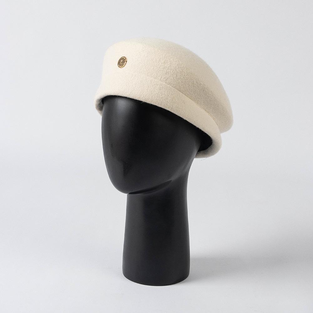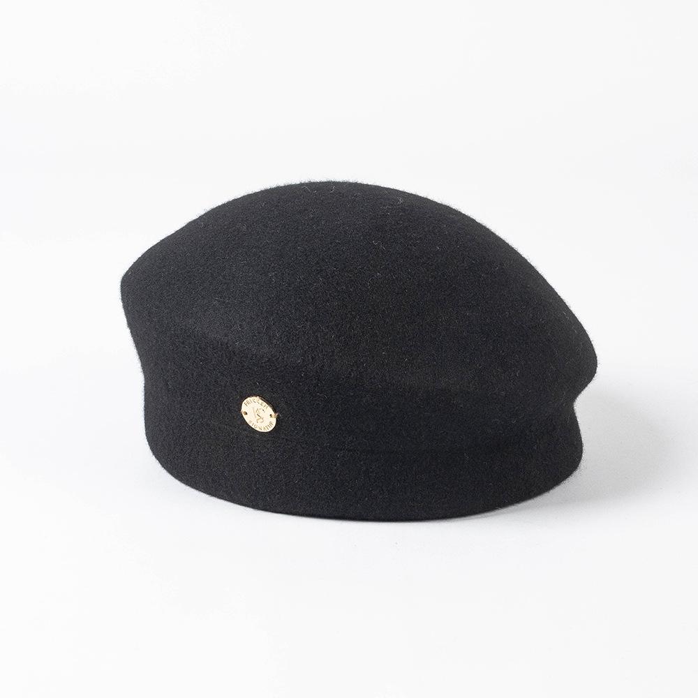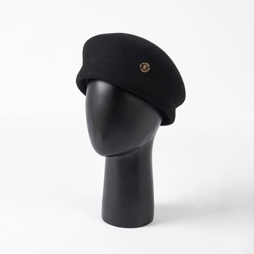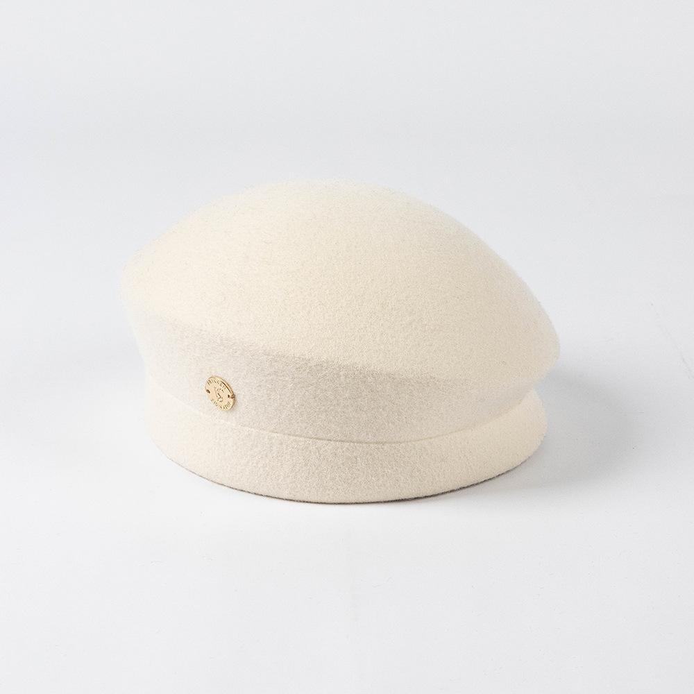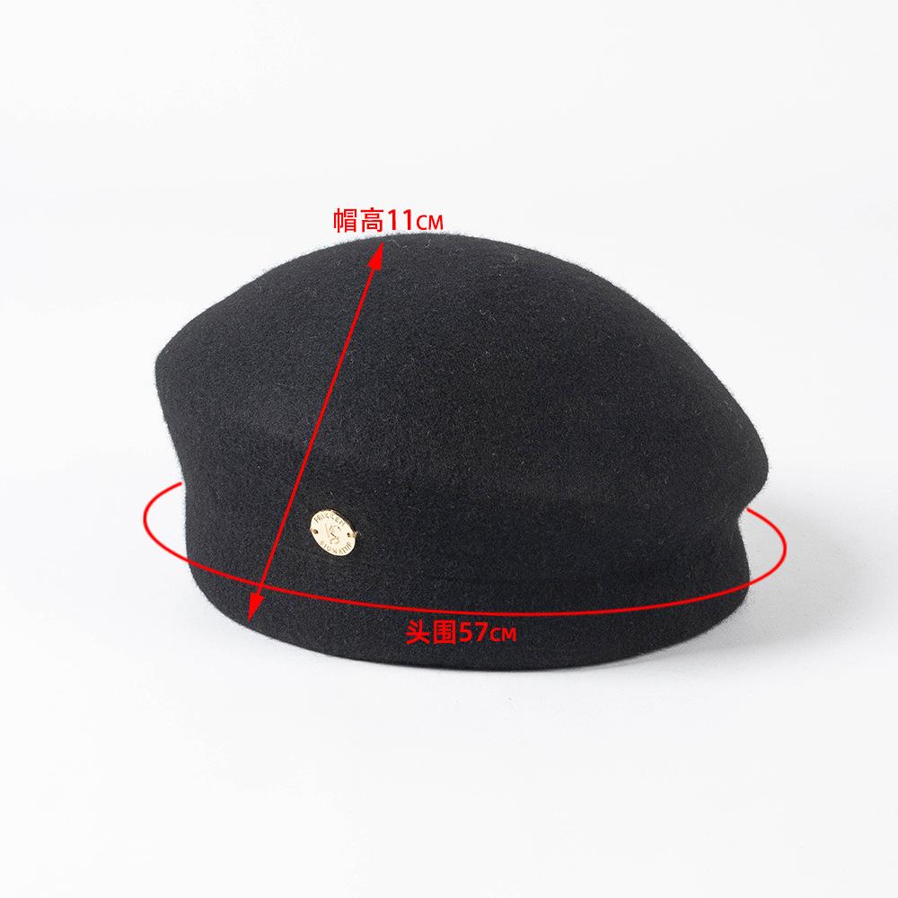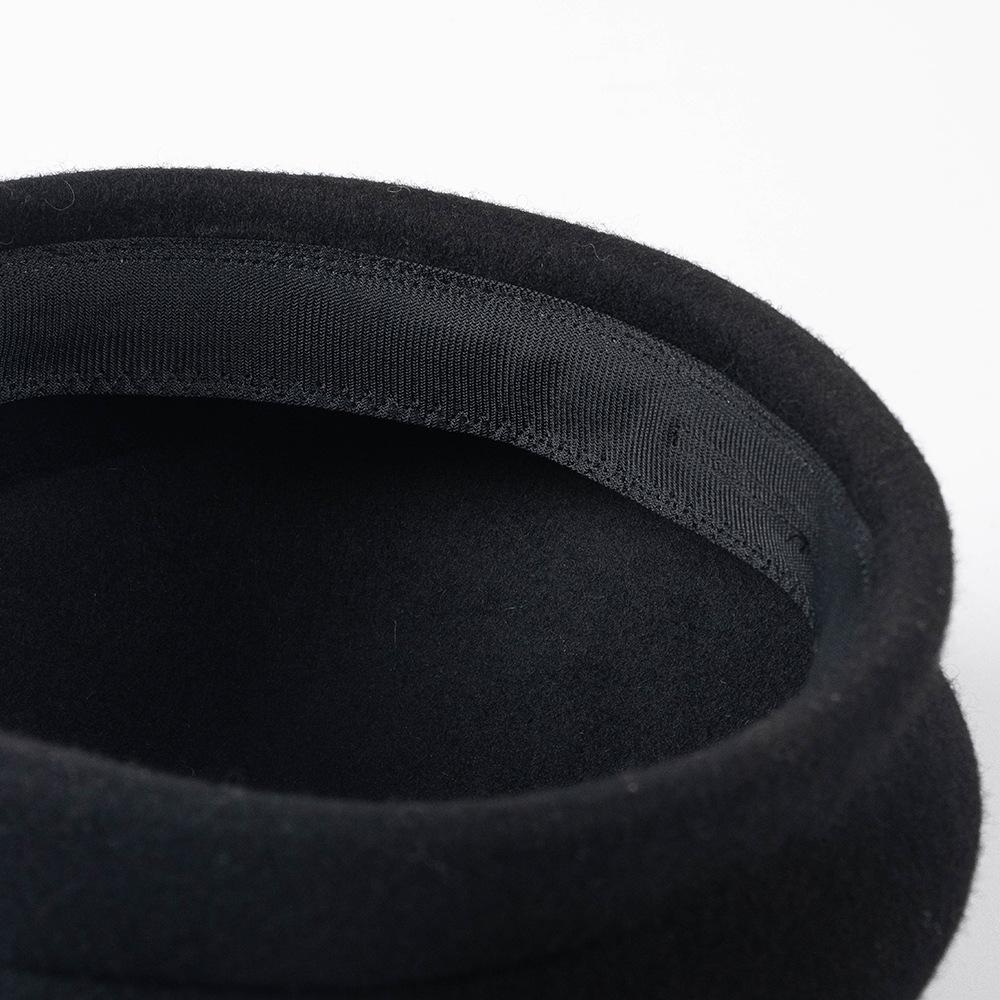 Otoño e Invierno Nueva Moda Retro Británico Fino Fieltro de Lana Sombrero de Copa Sombrero de Azafata con Etiqueta Metálica Sombrero Elegante de Lana para Mujer