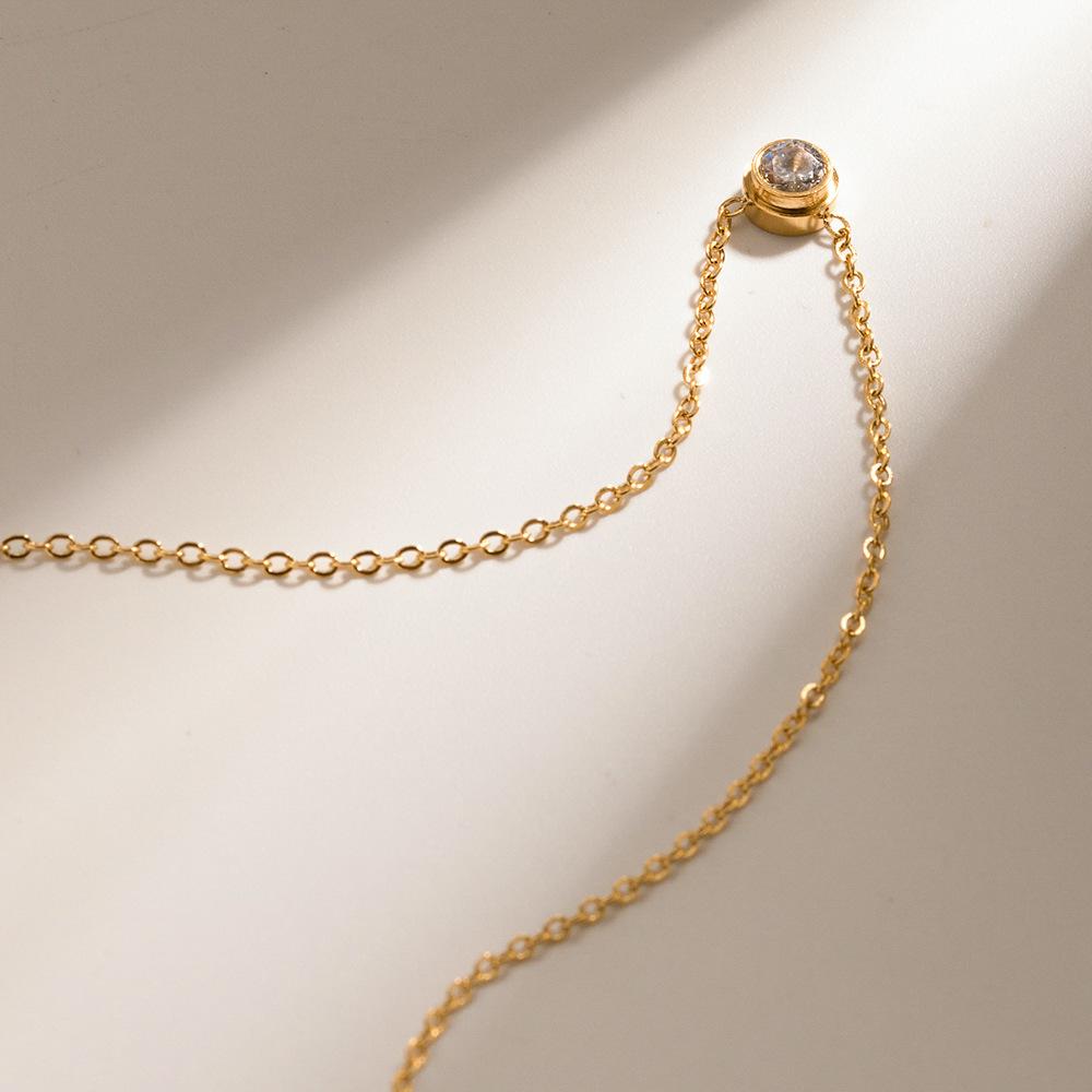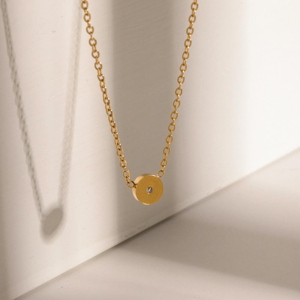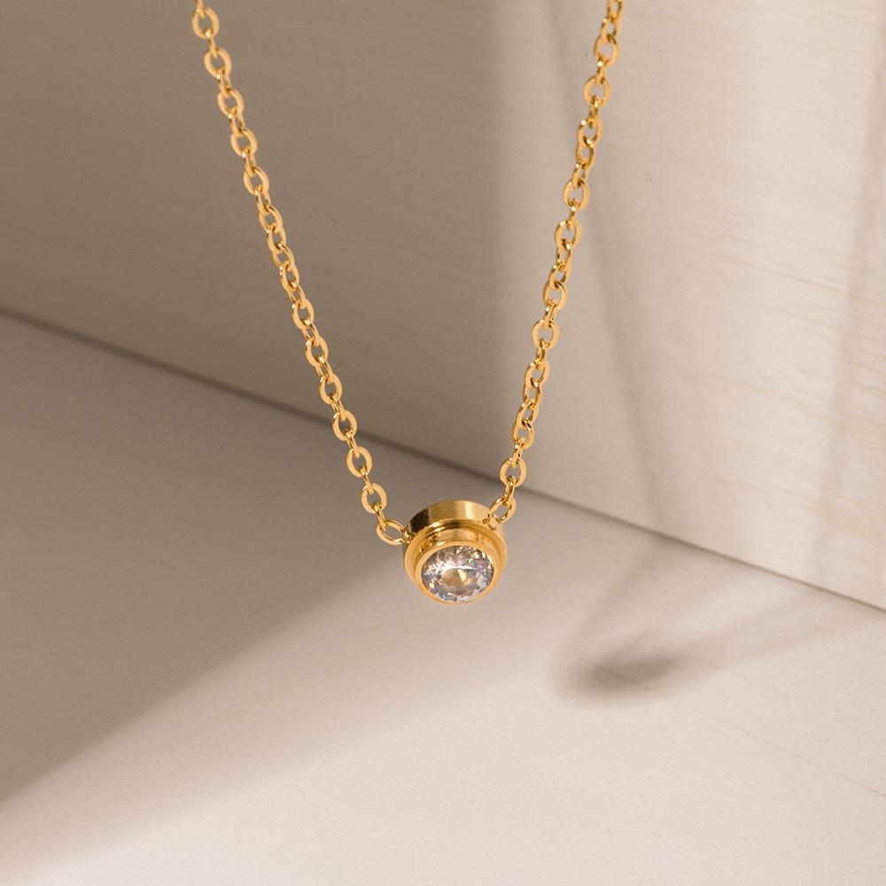 Collar minimalista transfronterizo europeo y americano de acero y titanio dorado con incrustaciones de circonitas, cadena de clavícula resistente a la decoloración, joyería al por mayor