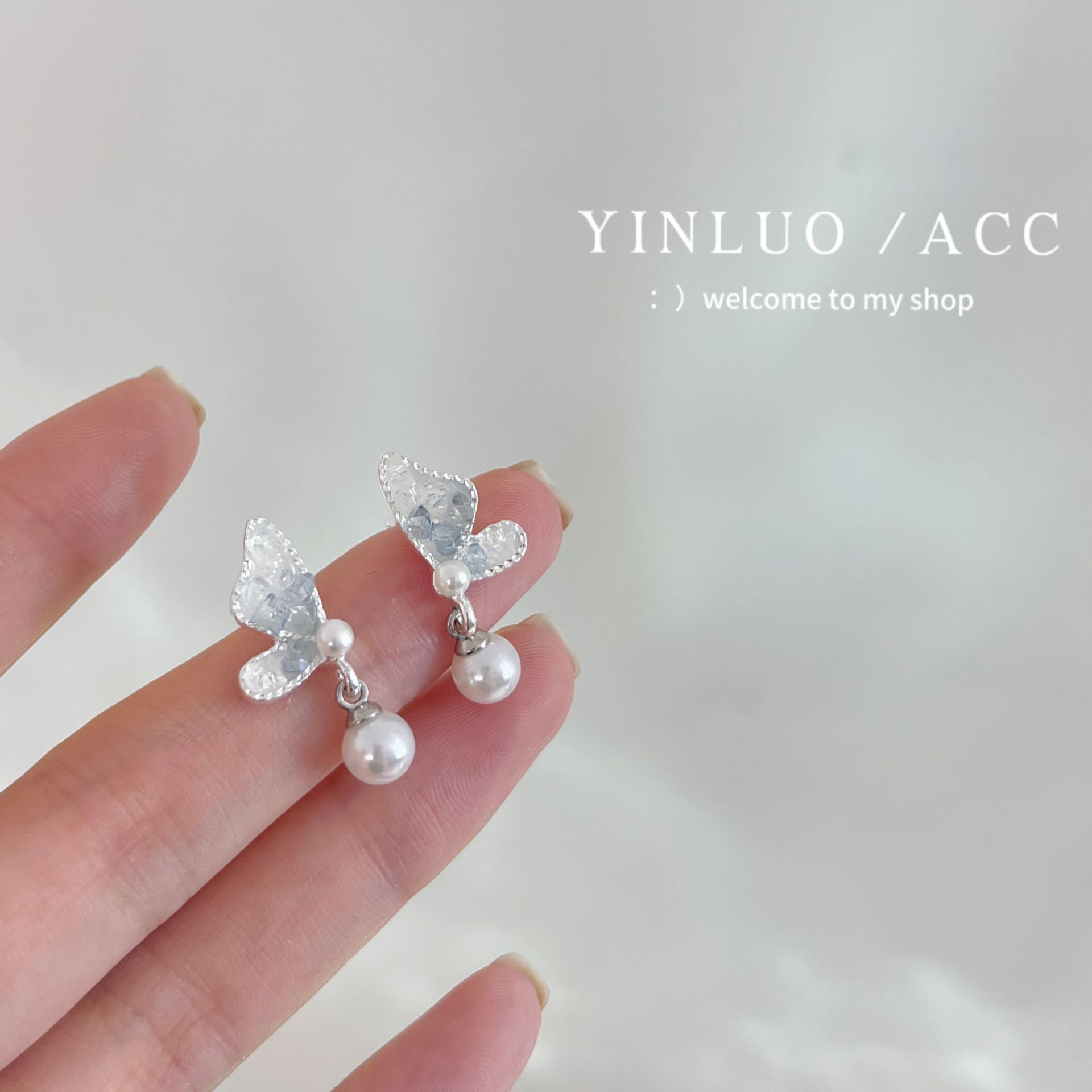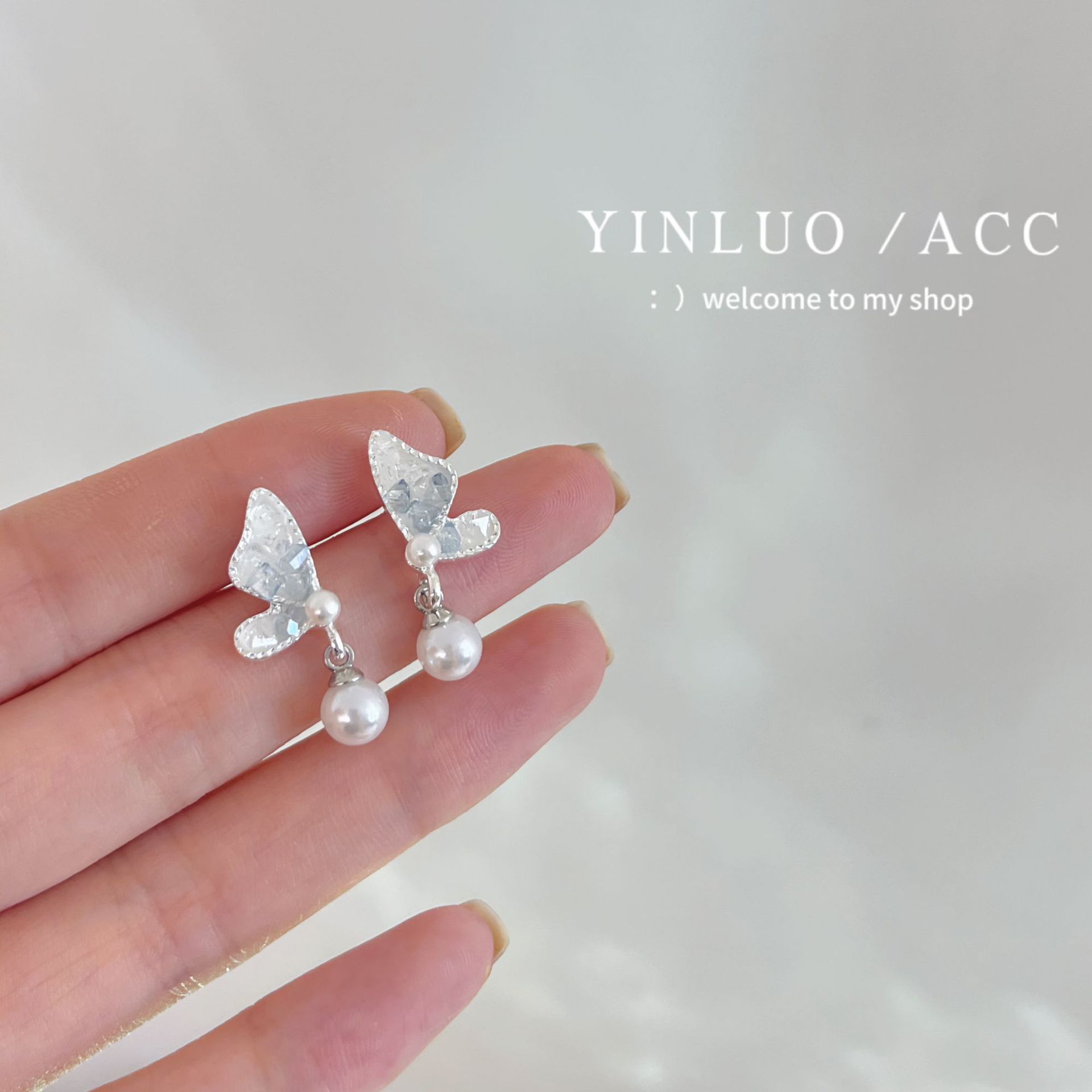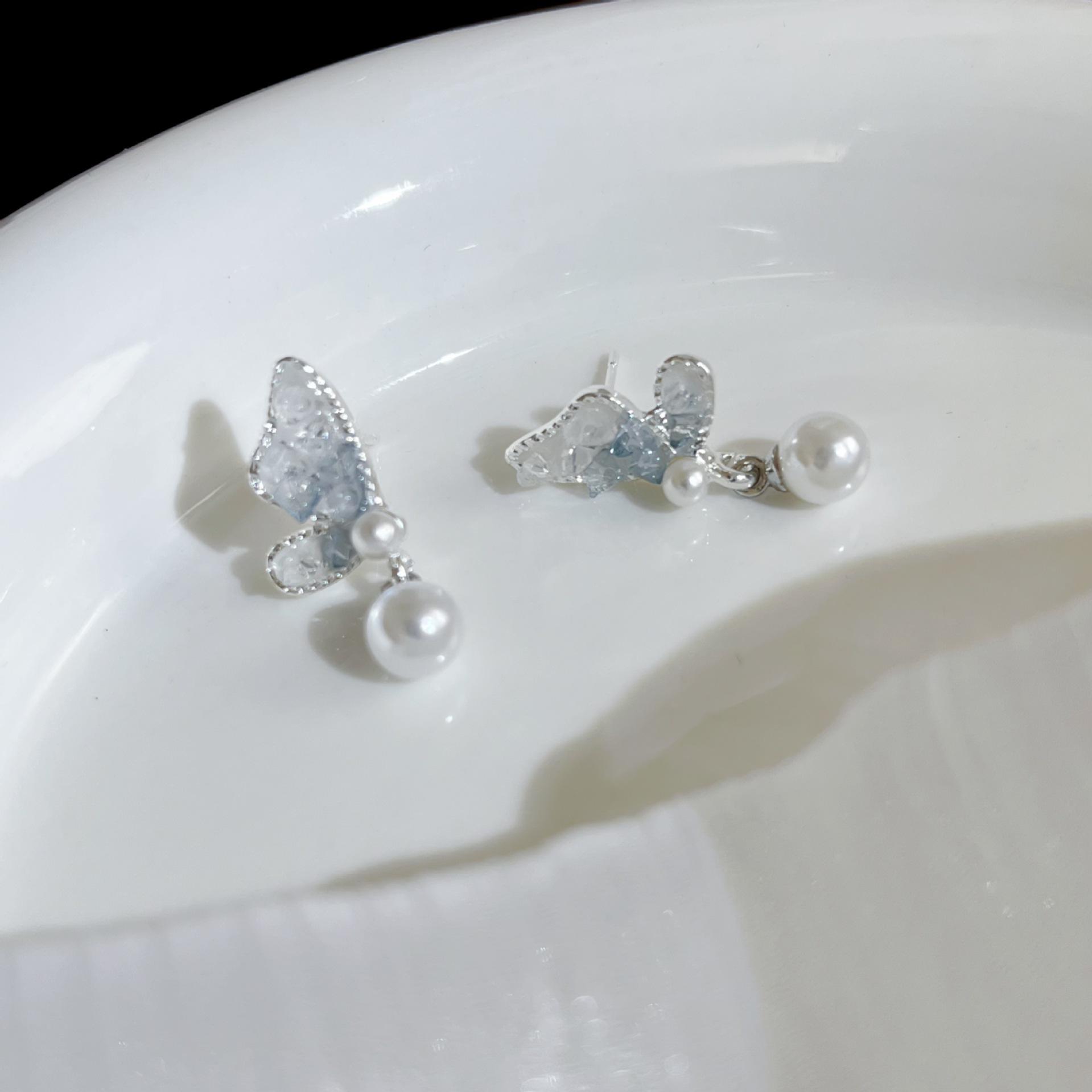 Pendientes de mariposa de cristal con forma de media mariposa, pendientes femeninos de temperamento suave, nuevos pendientes populares de nicho de alta sensación, joyería 2023