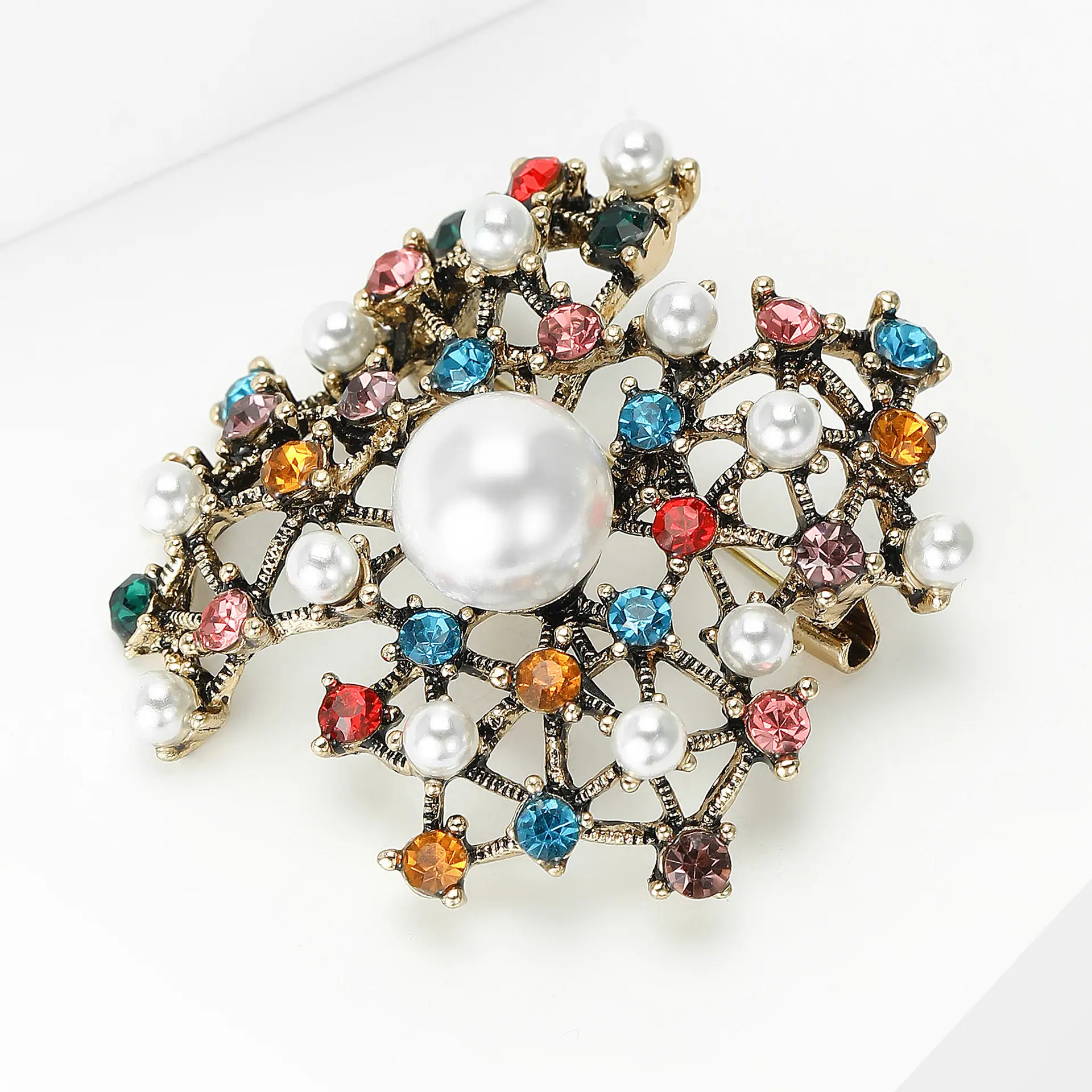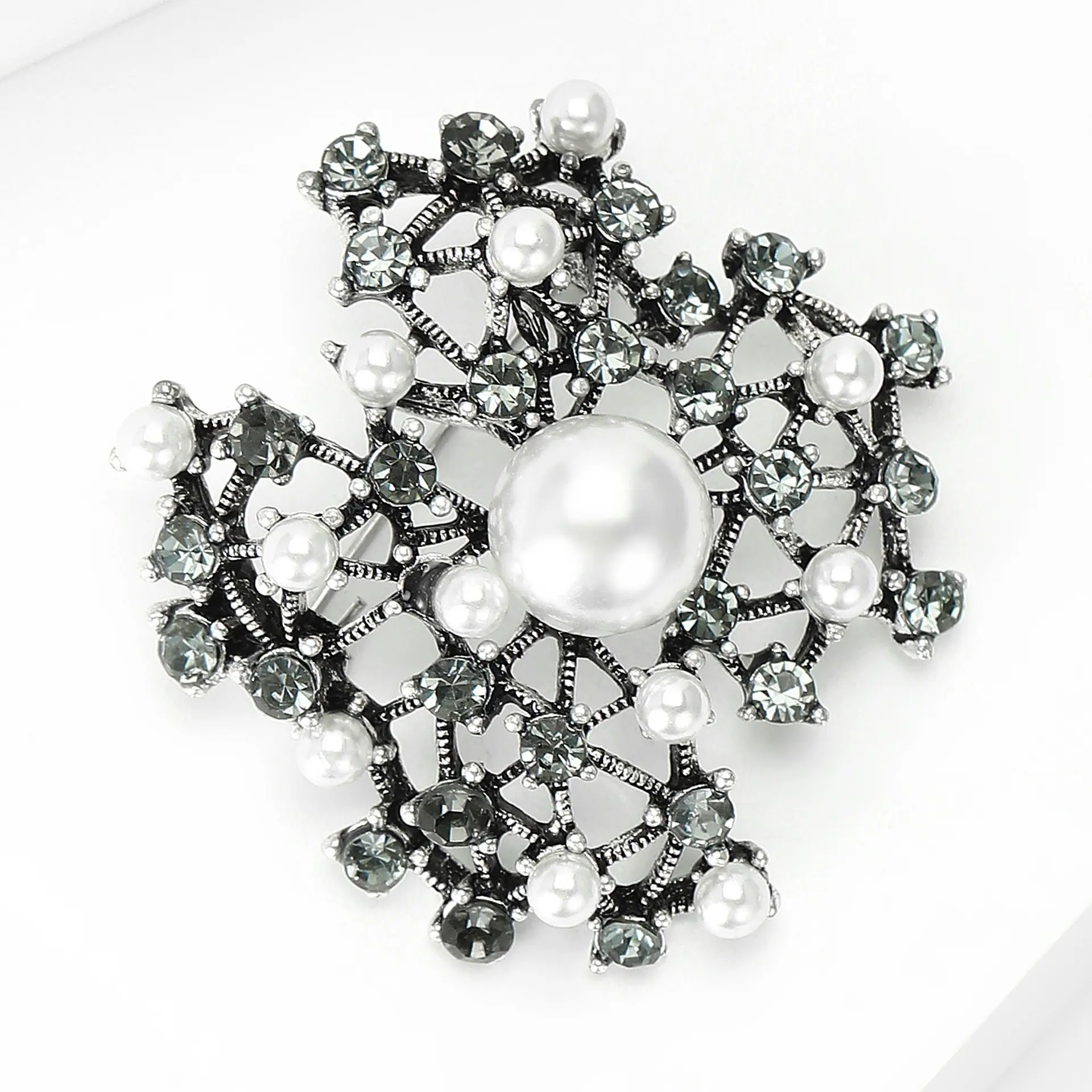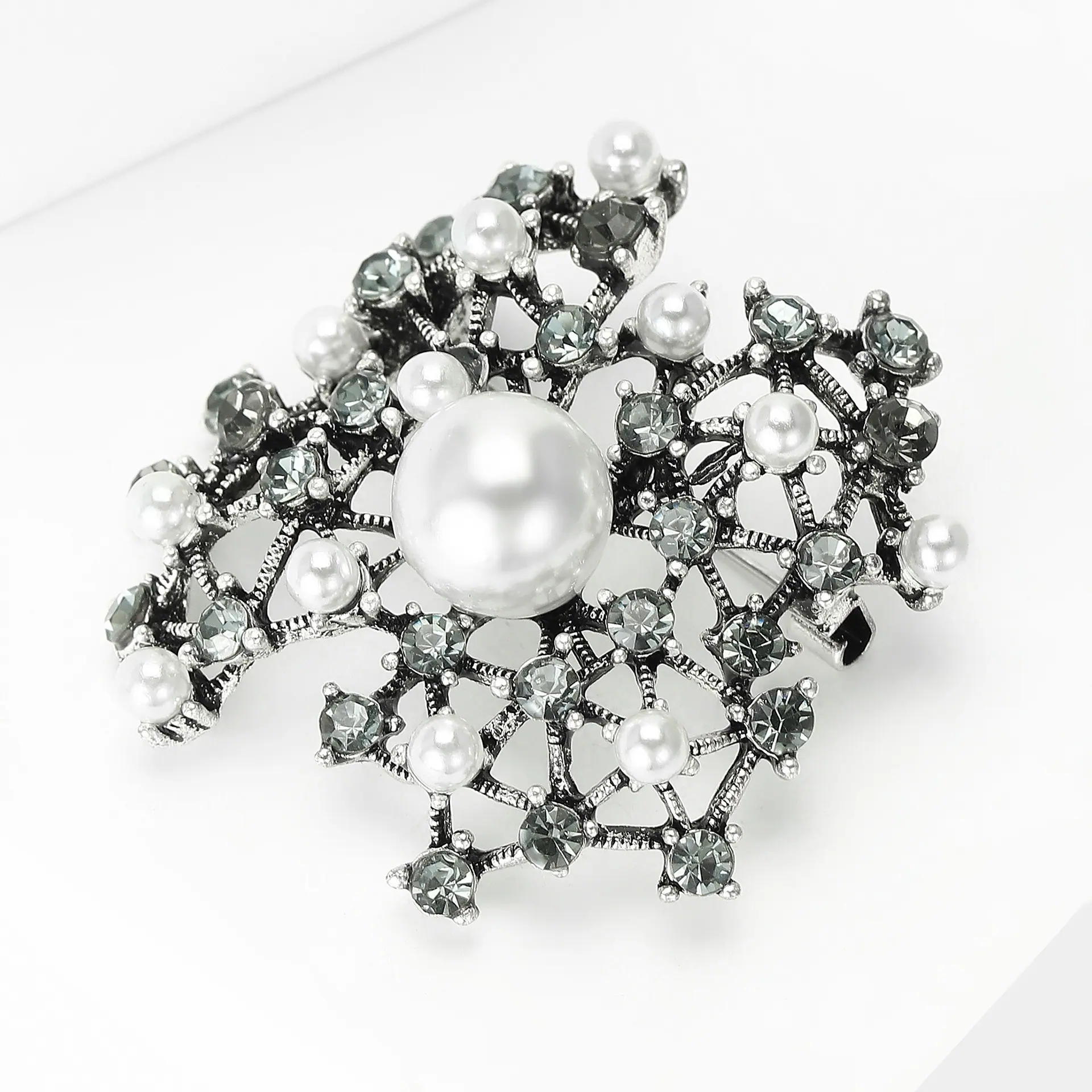 Broche de perlas con incrustaciones de diamantes de imitación, joyería retro europea y americana transfronteriza, accesorios para vestidos de celebridades con temperamento que combinan con todo.