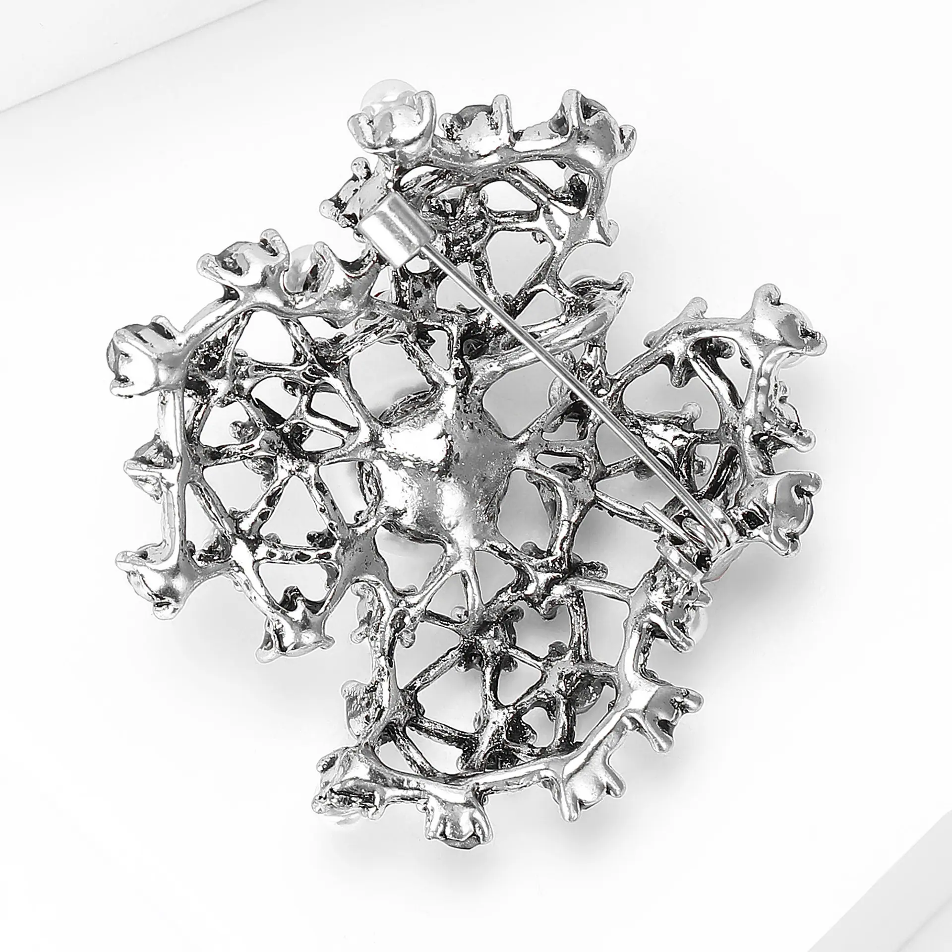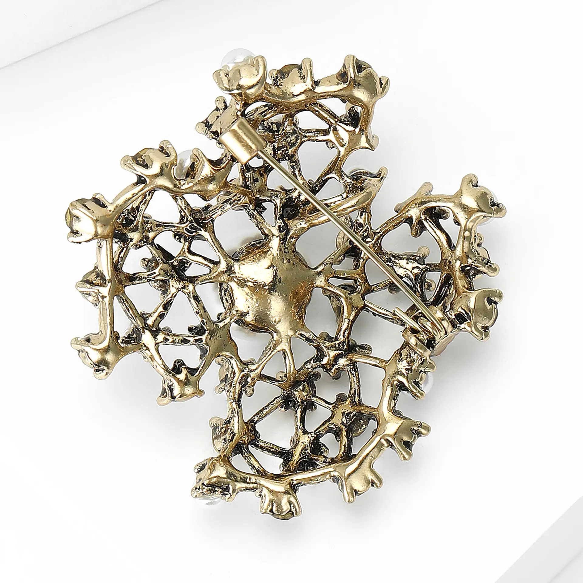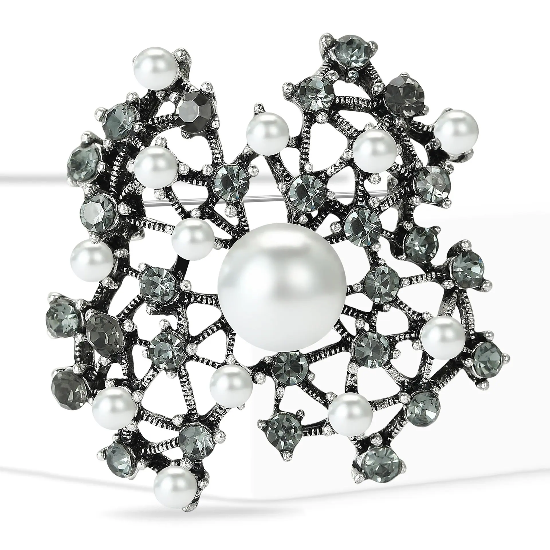 Broche de perlas con incrustaciones de diamantes de imitación, joyería retro europea y americana transfronteriza, accesorios para vestidos de celebridades con temperamento que combinan con todo.