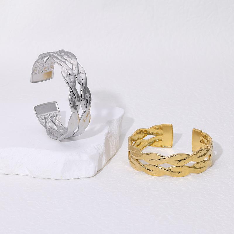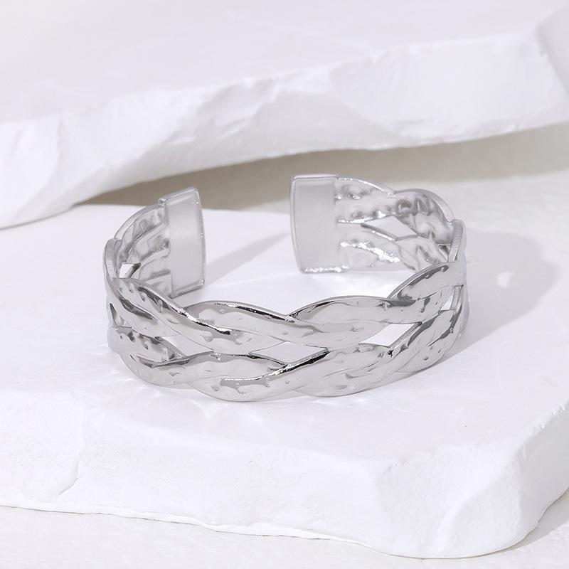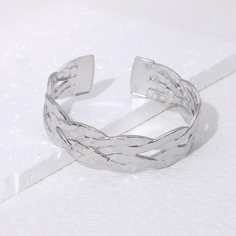 Pulsera de moda europea y americana retro francesa de acero de titanio que no se desvanece, patrón tejido, temperamento simple, estilo ins, pulsera de acero inoxidable