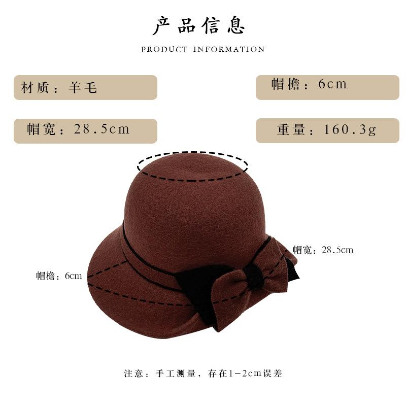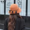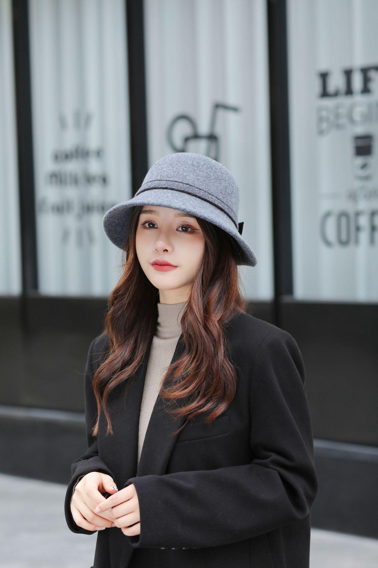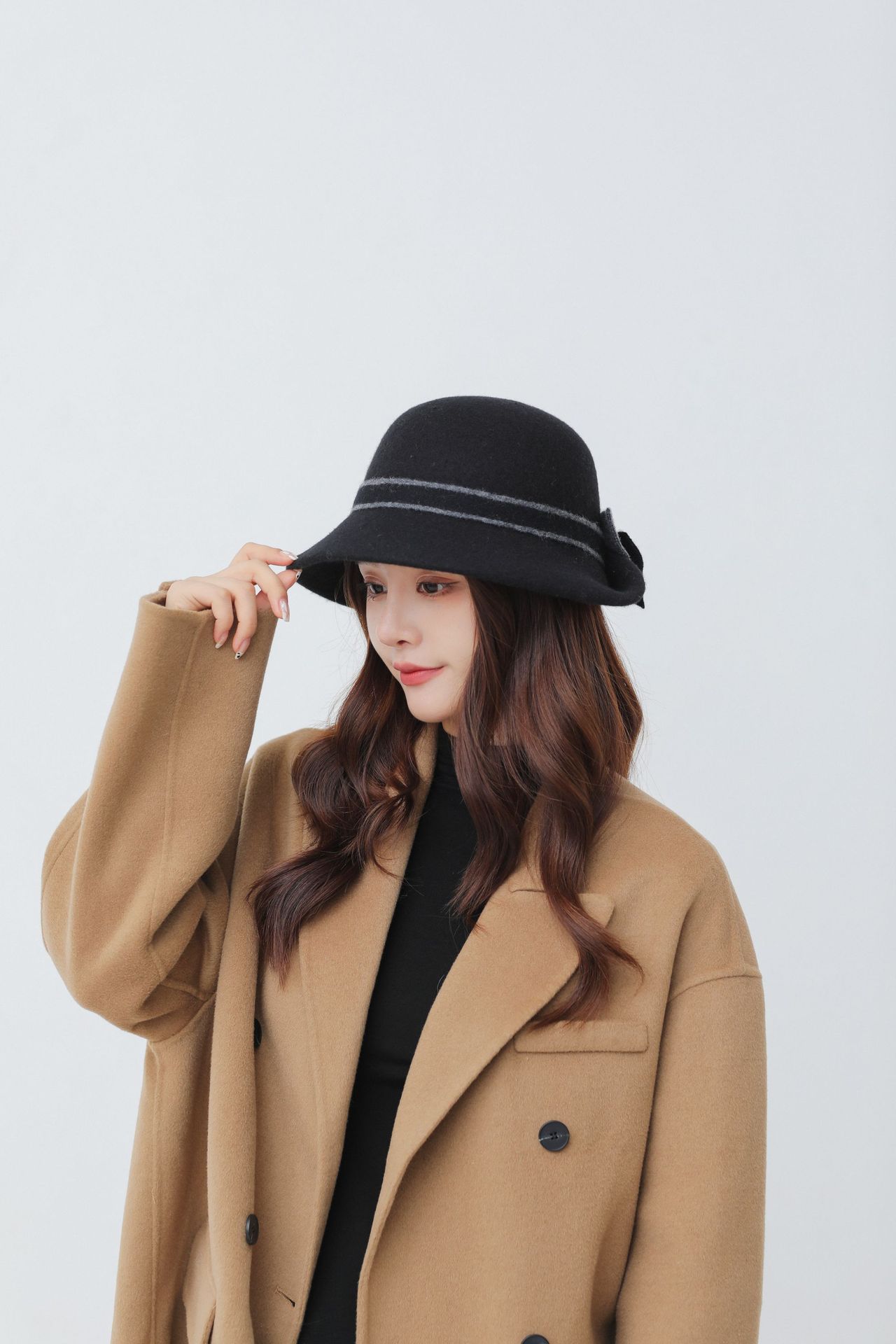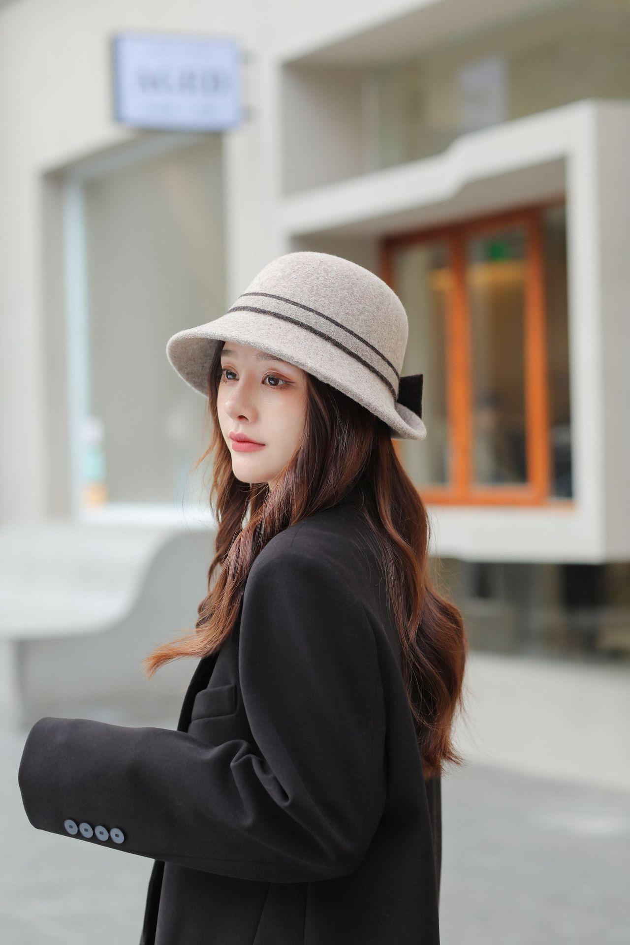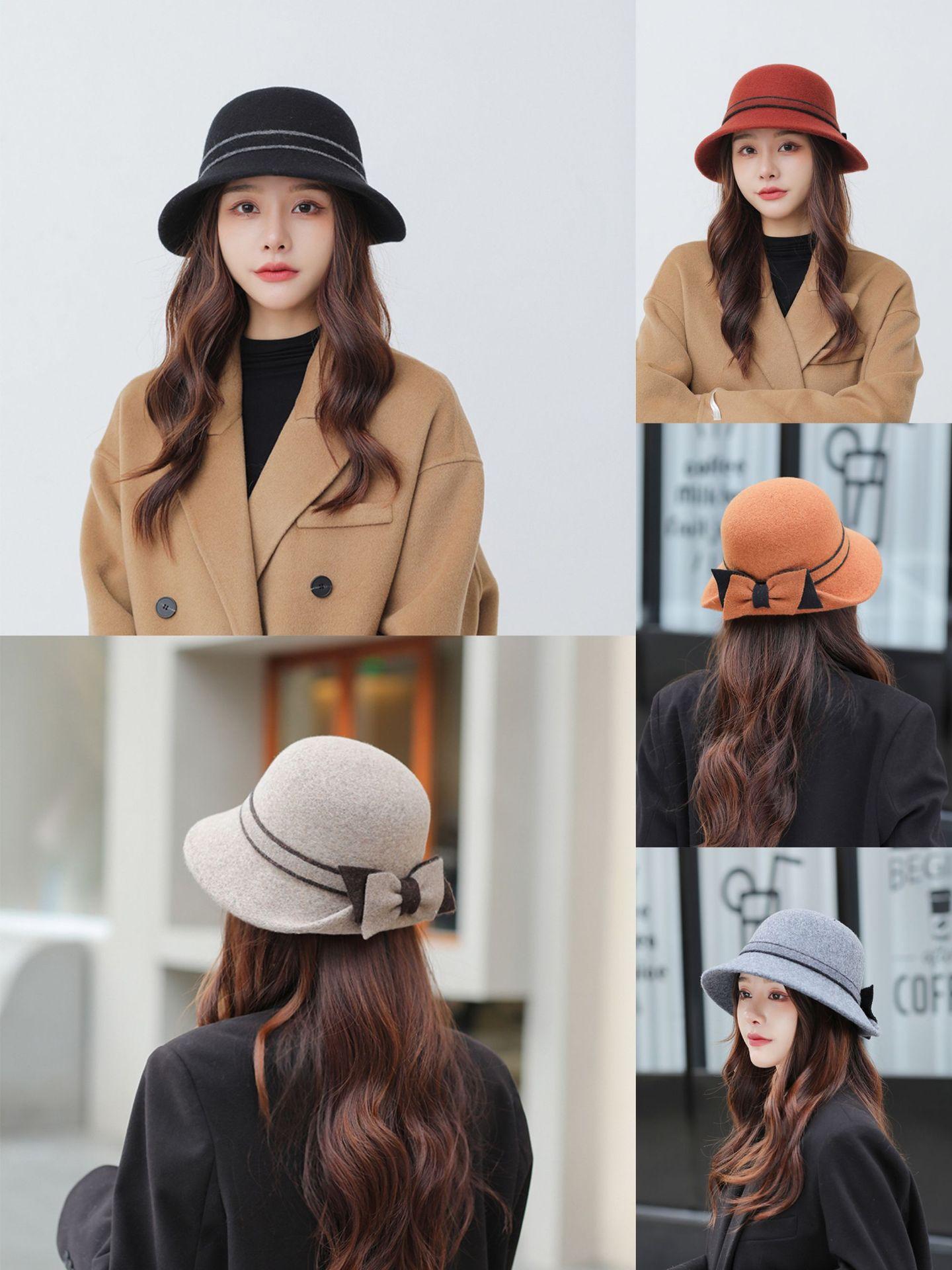 Sombrero de Pescador Coreano de Lana con Lazo, Sombrero Bucket Cálido y Elegante para Mujer, Sombrero de Otoño e Invierno para Mamá, Casual y Versátil