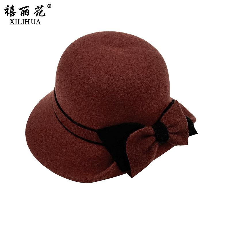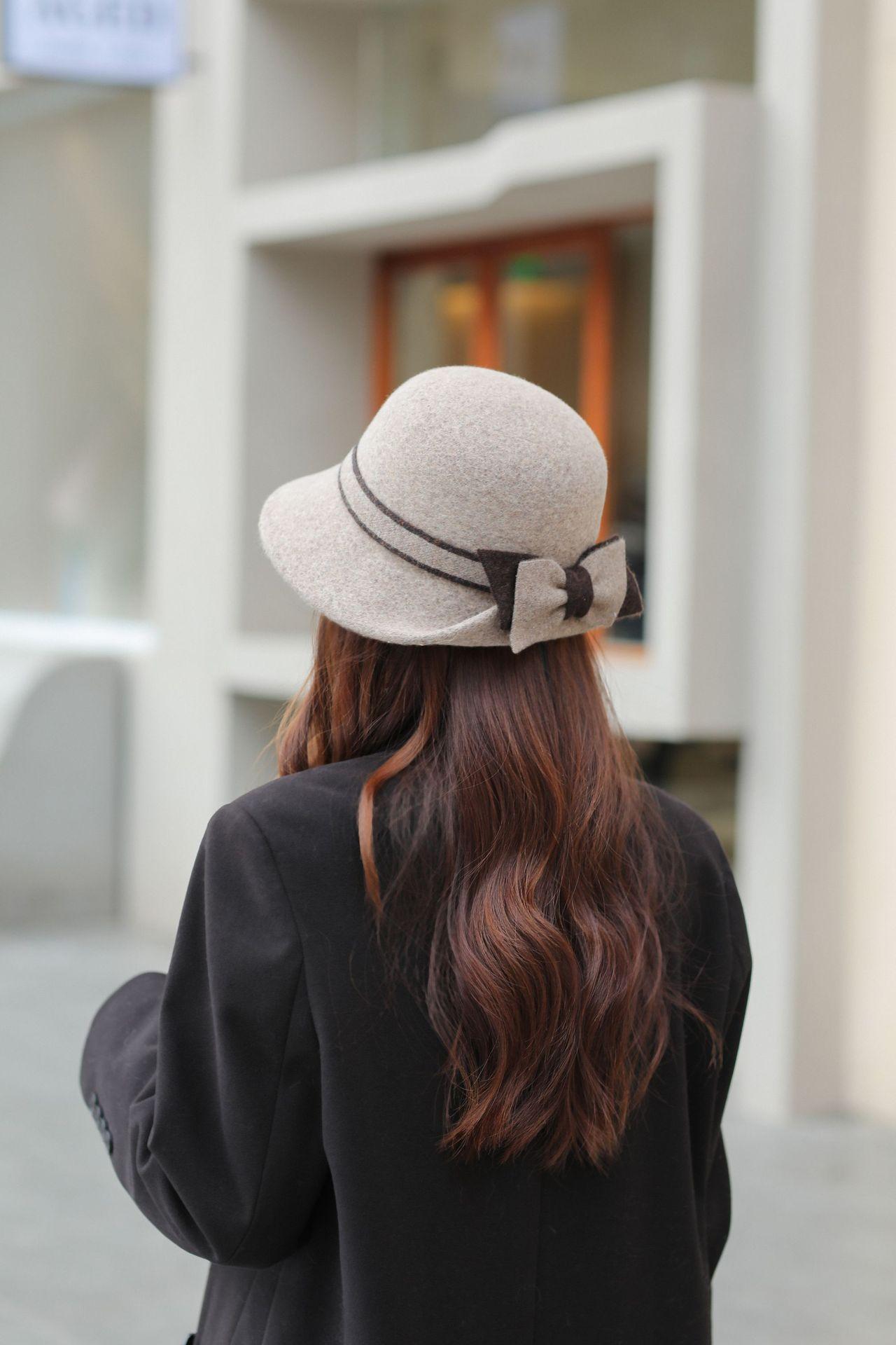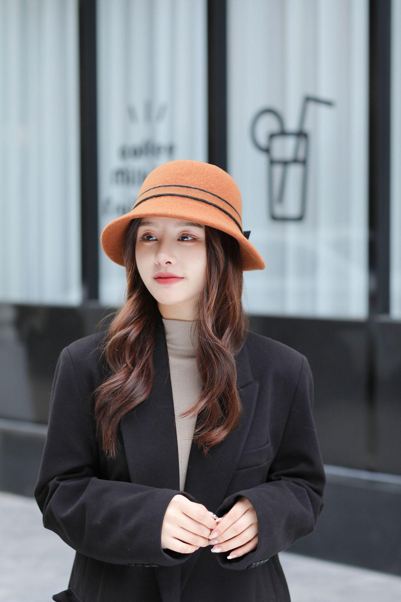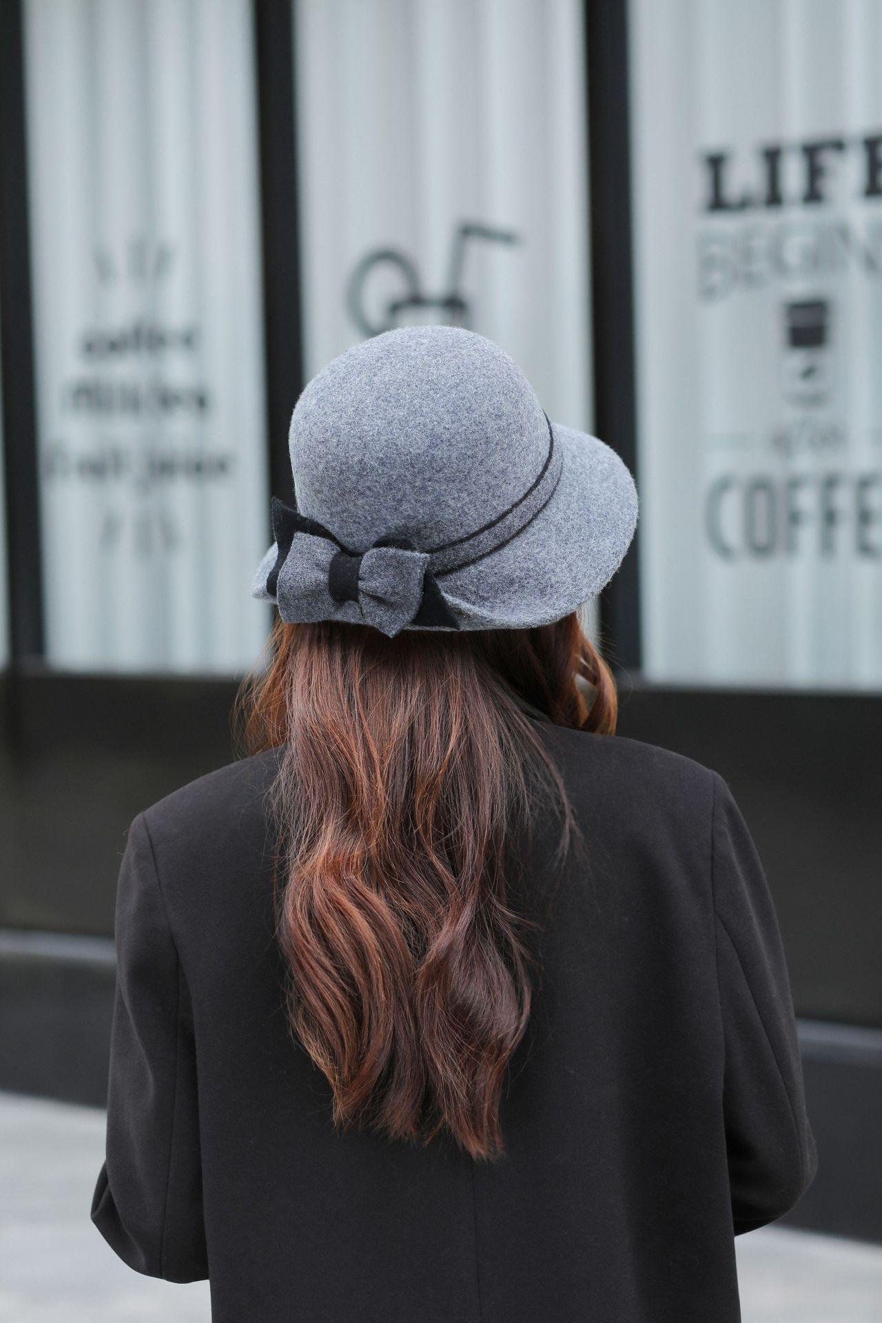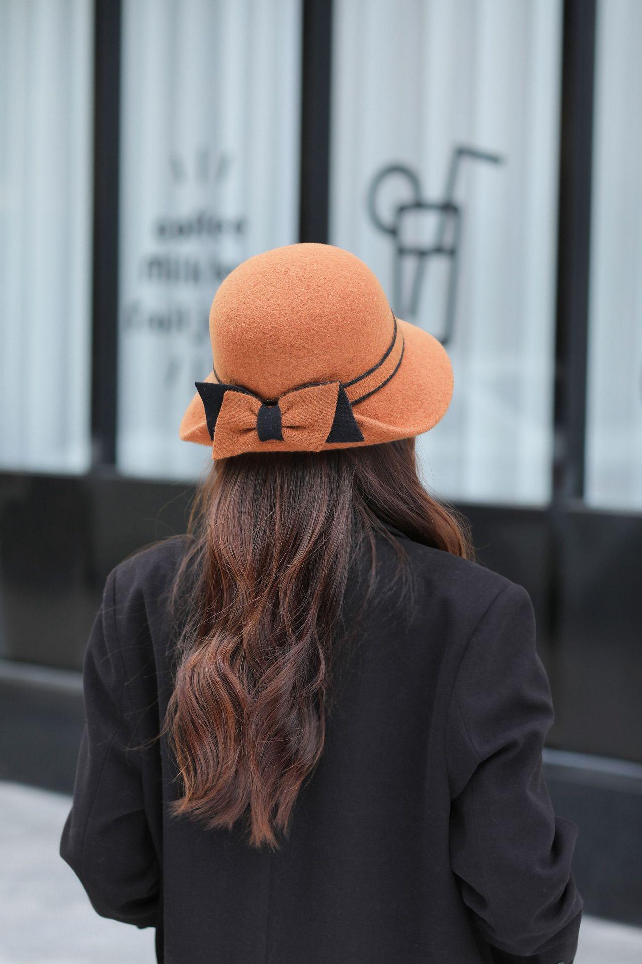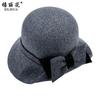 Sombrero de Pescador Coreano de Lana con Lazo, Sombrero Bucket Cálido y Elegante para Mujer, Sombrero de Otoño e Invierno para Mamá, Casual y Versátil