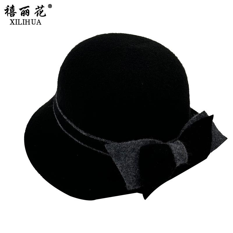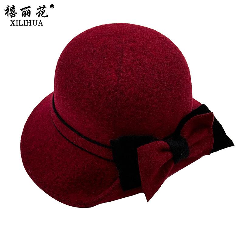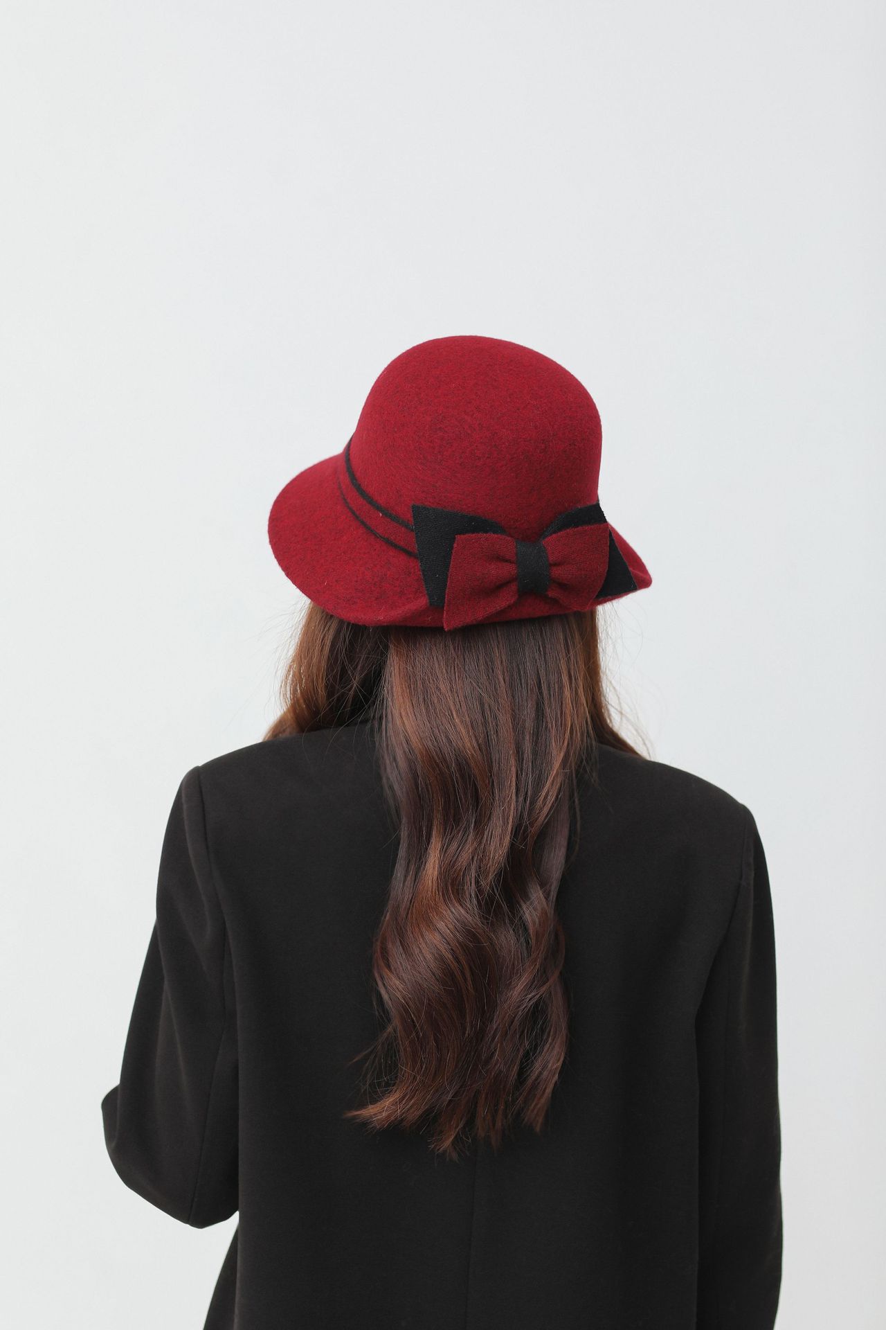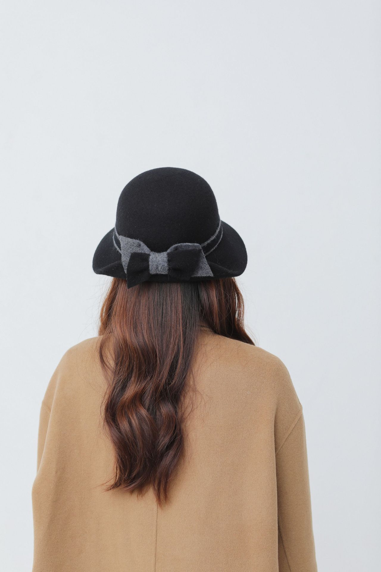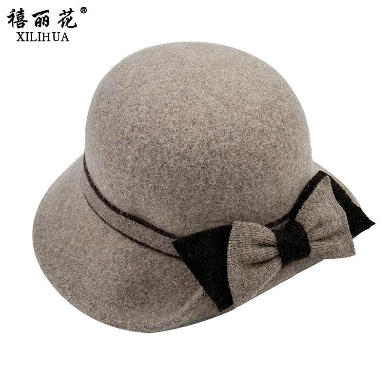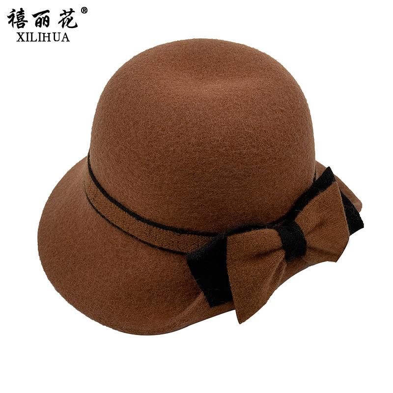 Sombrero de Pescador Coreano de Lana con Lazo, Sombrero Bucket Cálido y Elegante para Mujer, Sombrero de Otoño e Invierno para Mamá, Casual y Versátil