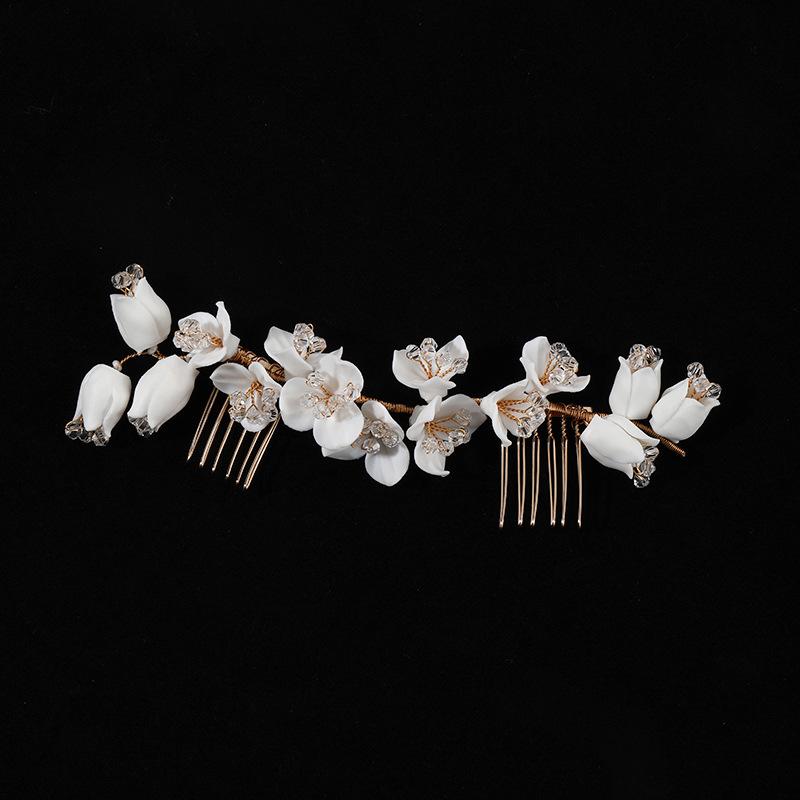 Peineta de flores de porcelana perlada para boda, tocado de novia hecho a mano, estilo antiguo, accesorios para el cabello Hanfu, venta al por mayor, novedad de 2023