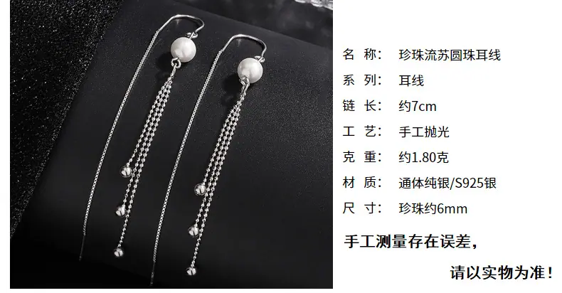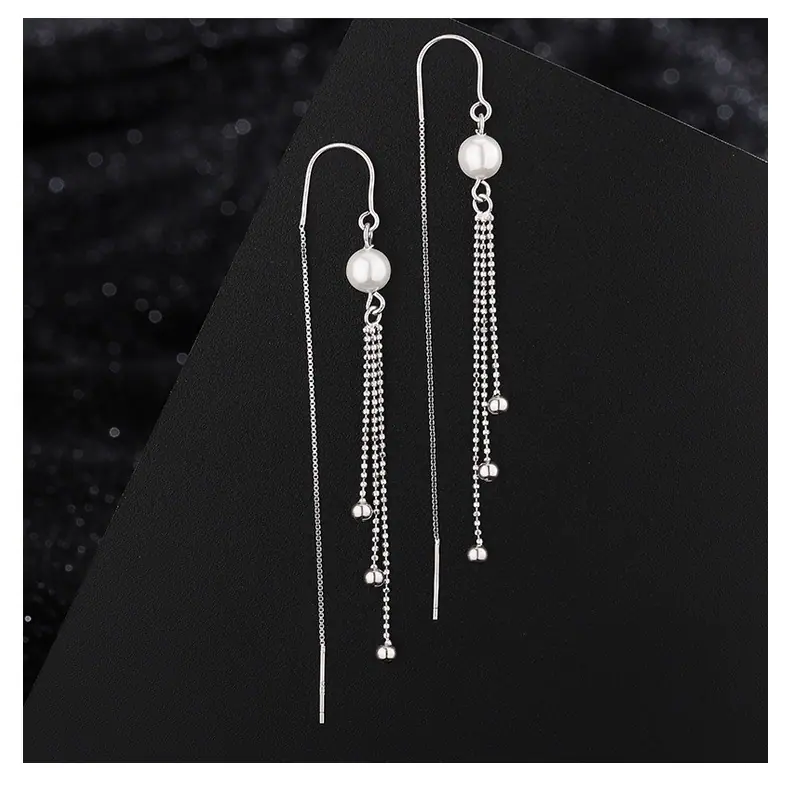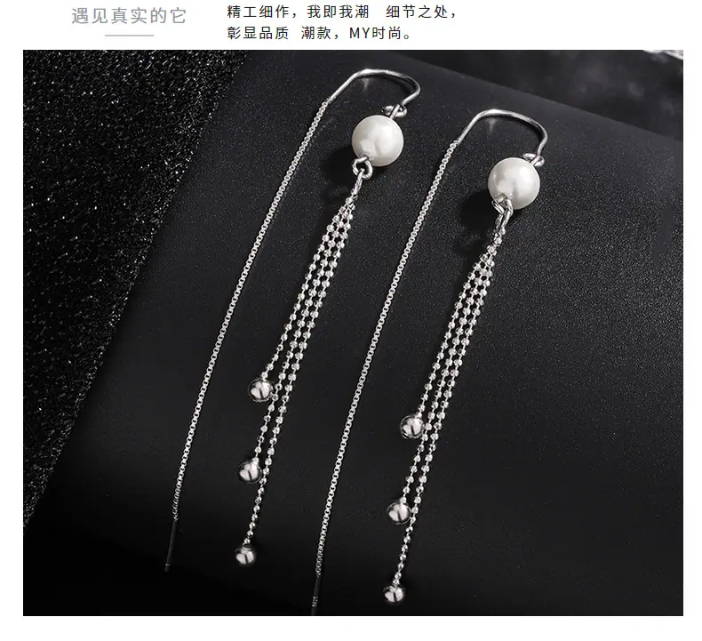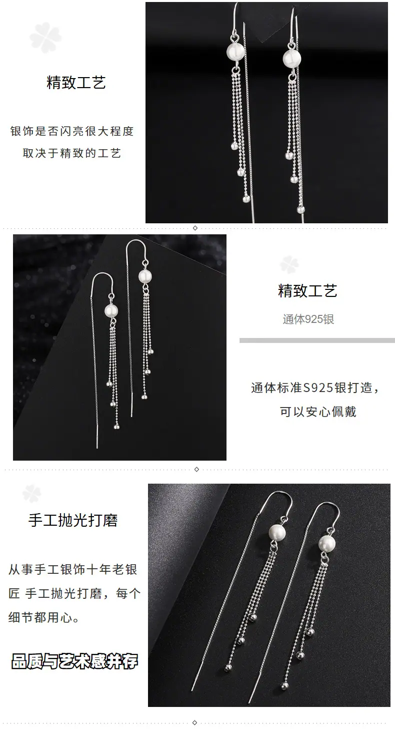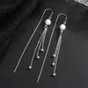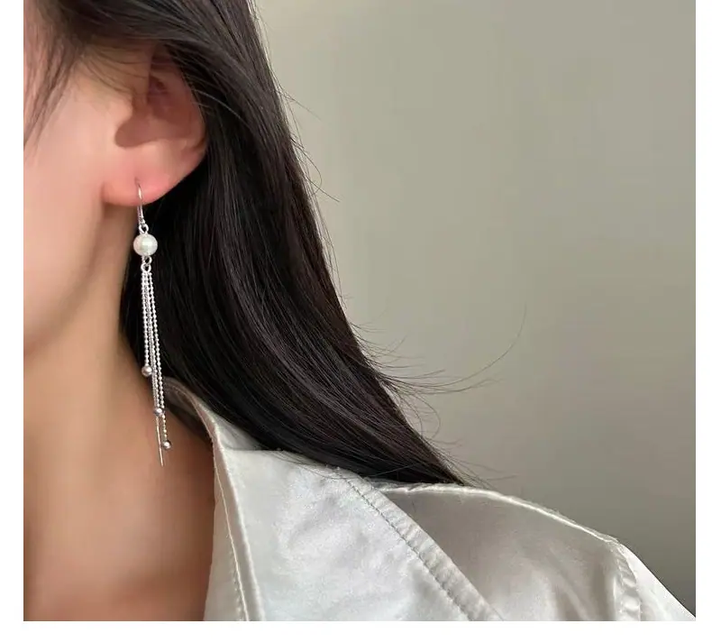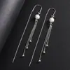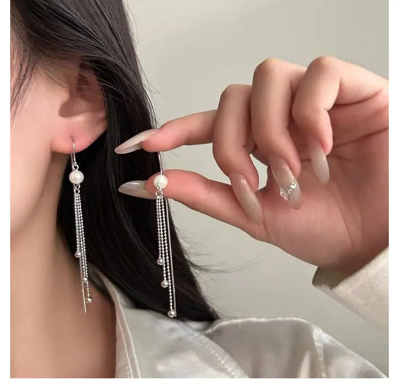 Aretes Largos de Borla de Perla de Plata Esterlina S925 Look Adelgazante Moda de Lujo Accesible Elegantes Aretes de Gancho para Mujer Estilo Nuevo 2025