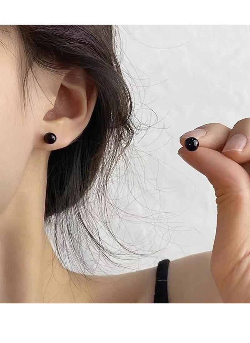 Pendientes de plata de ley S925 con ágata negra y personalidad sencilla, pendientes de estilo coreano para mujer, con bolitas pequeñas.